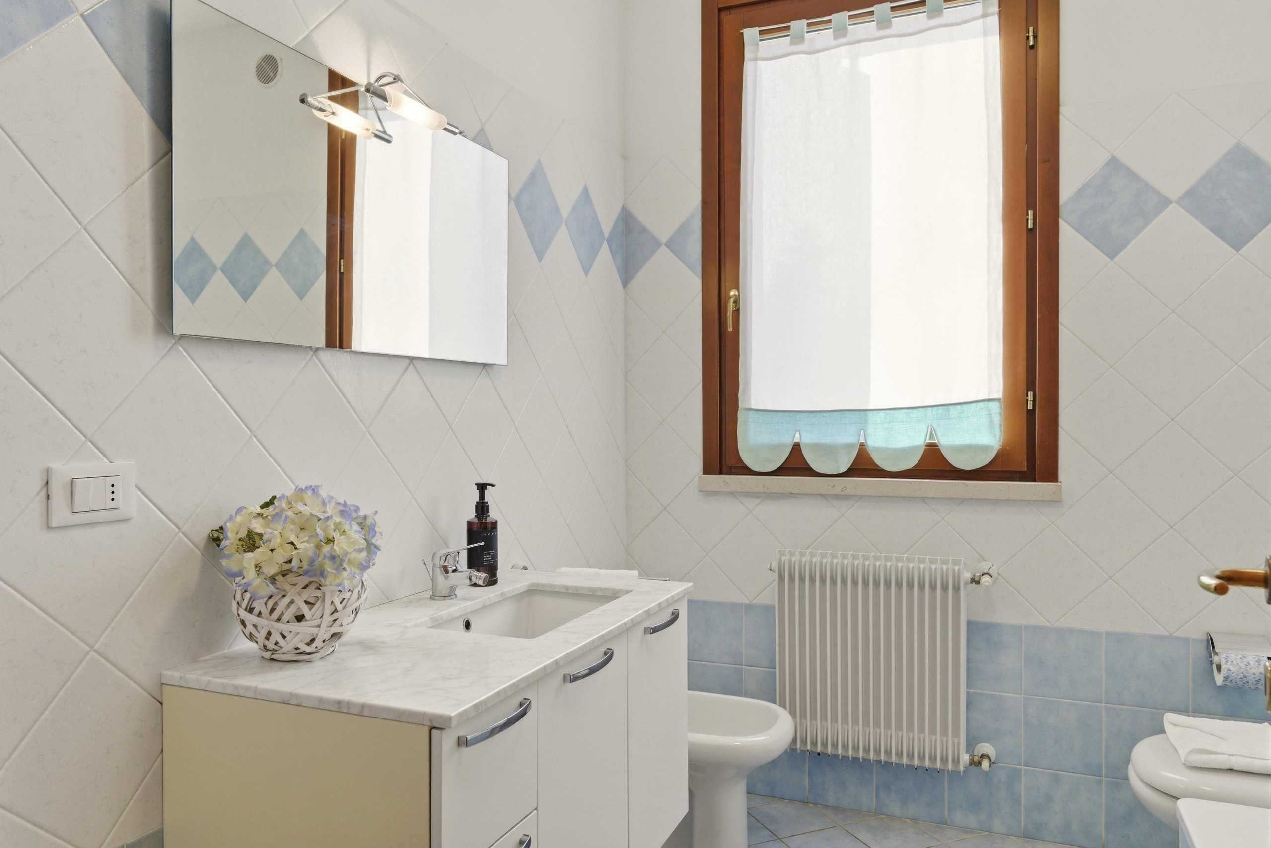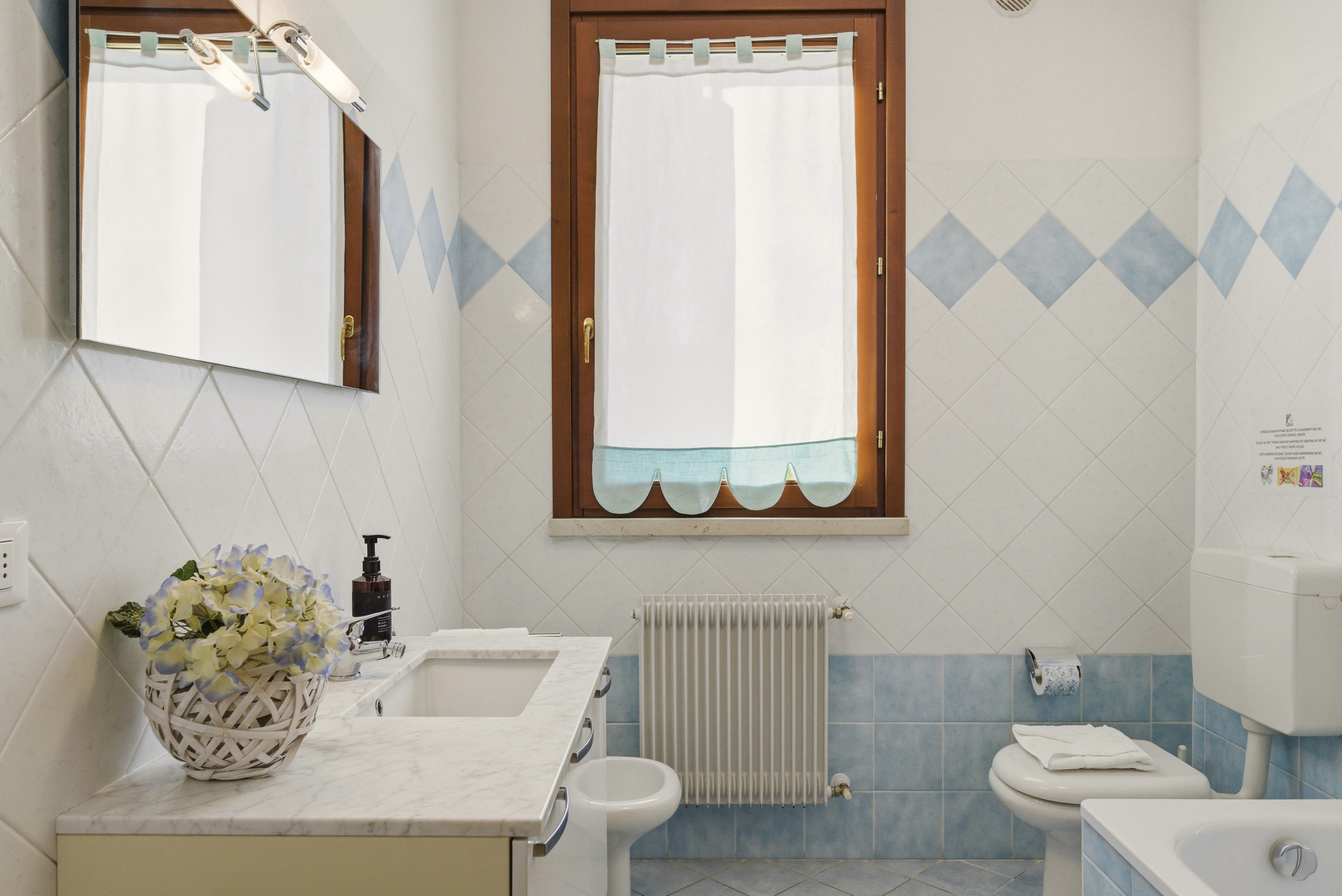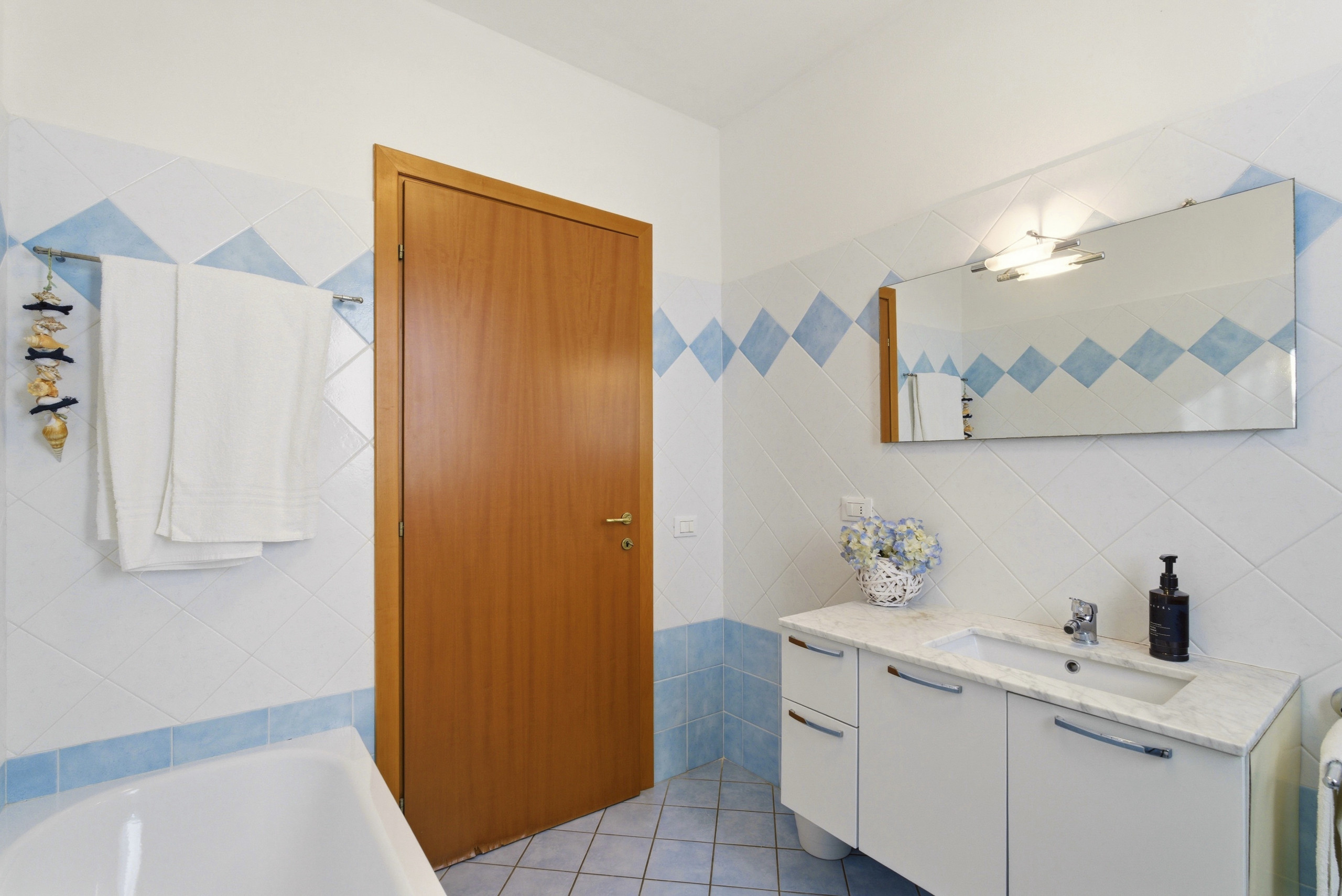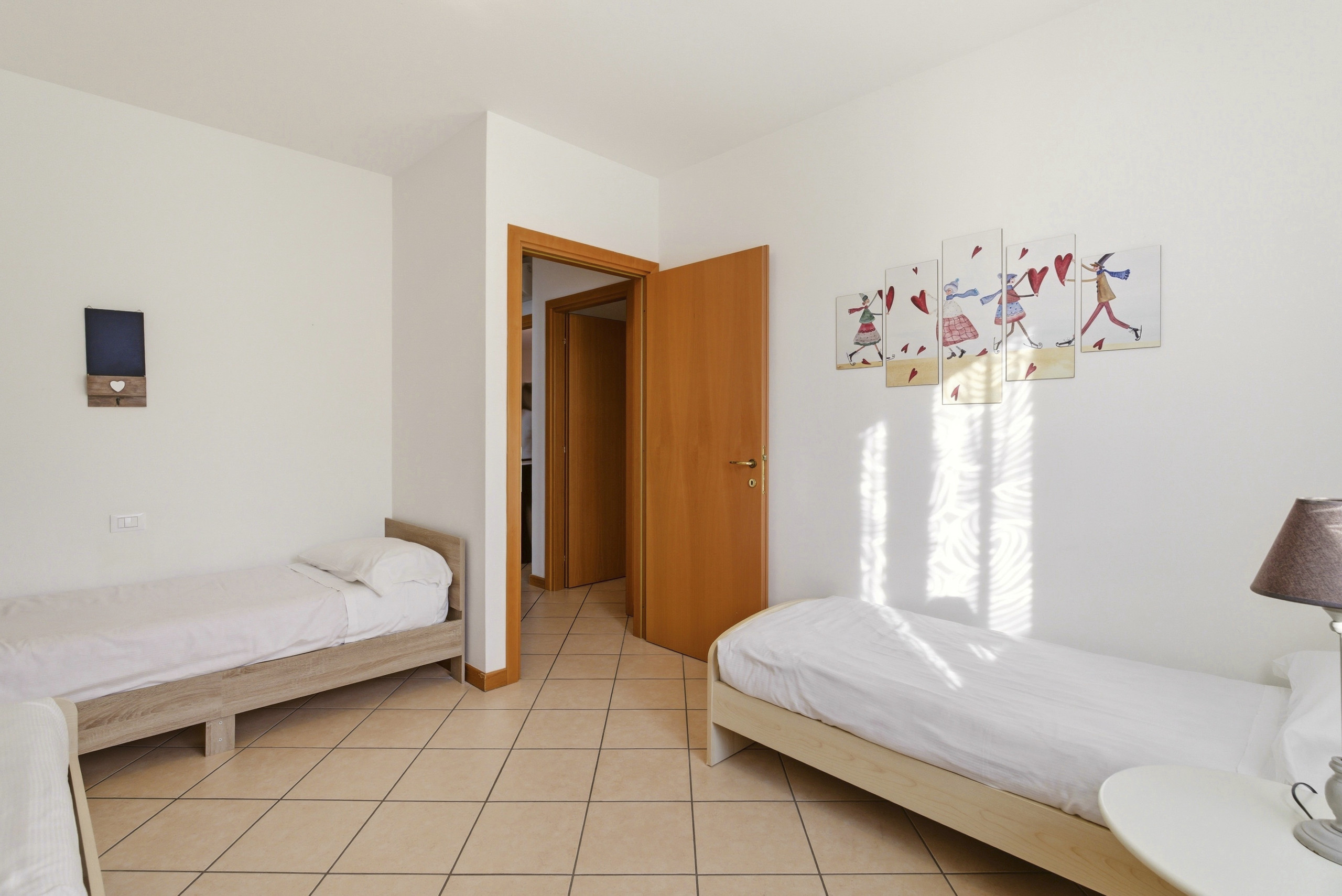 L’appartamento è situato al primo piano ed è composto da un’ampia zona giorno con moderna cucina, divano letto matrimoniale, spazioso tavolo da pranzo, Tv satellitare. La cucina è attrezzata con piatti e stoviglie e dispone di frigorifero, lavastoviglie, fornello con 4 fuochi, forno. Ampia terrazza abitabile con vista sul verde per piacevoli pranzi e cene all'aperto. La camera matrimoniale dispone di spazioso armadio con ante scorrevoli, la cameretta dispone di tre letti singoli e armadio a ponte. A disposizione degli ospiti un bagno finestrato con vasca da bagno ed un secondo bagno con doccia e lavatrice. L’appartamento dispone inoltre di aria condizionata. Parcheggio pubblico gratuito antistante l’abitazione. Garage privato 2x2.30 mt