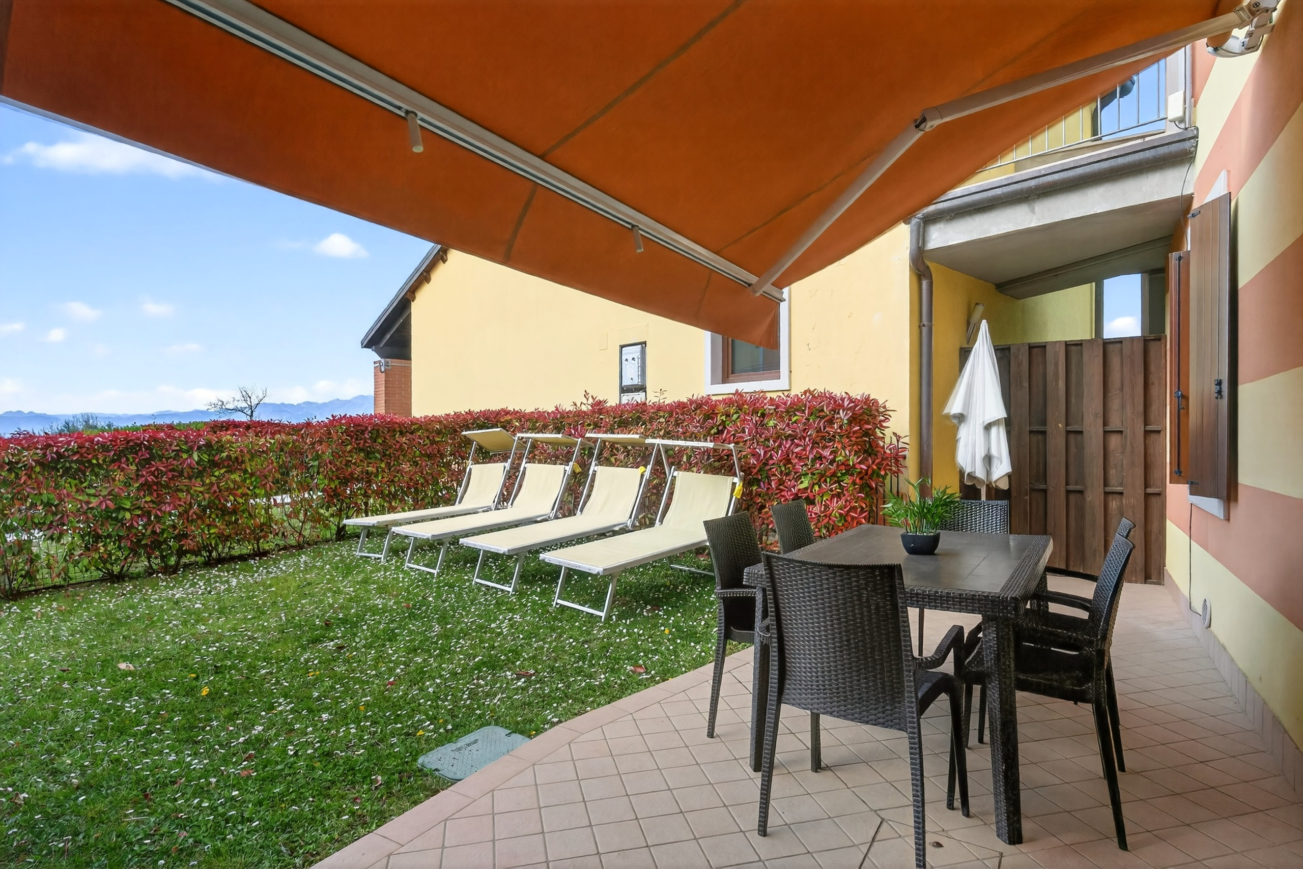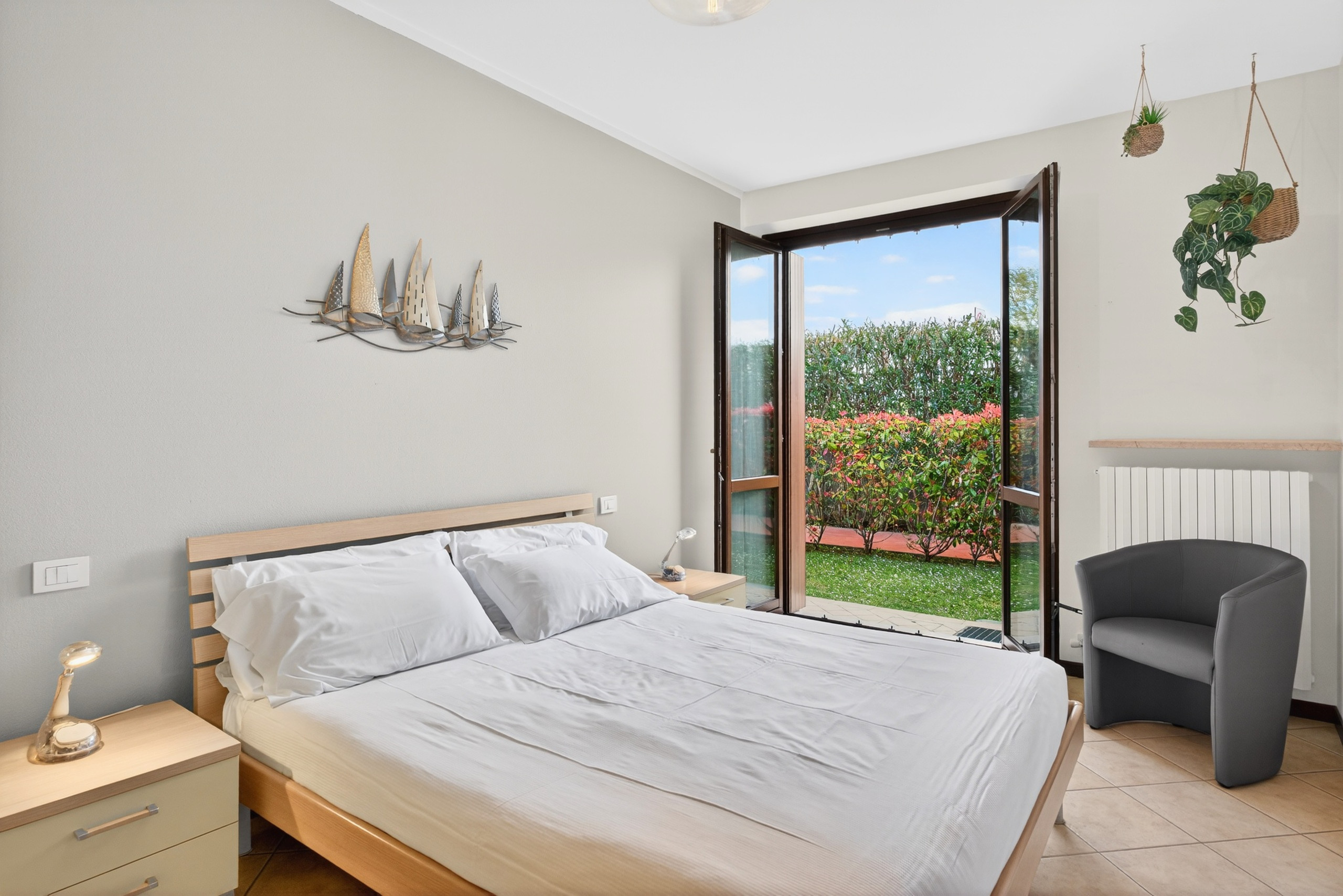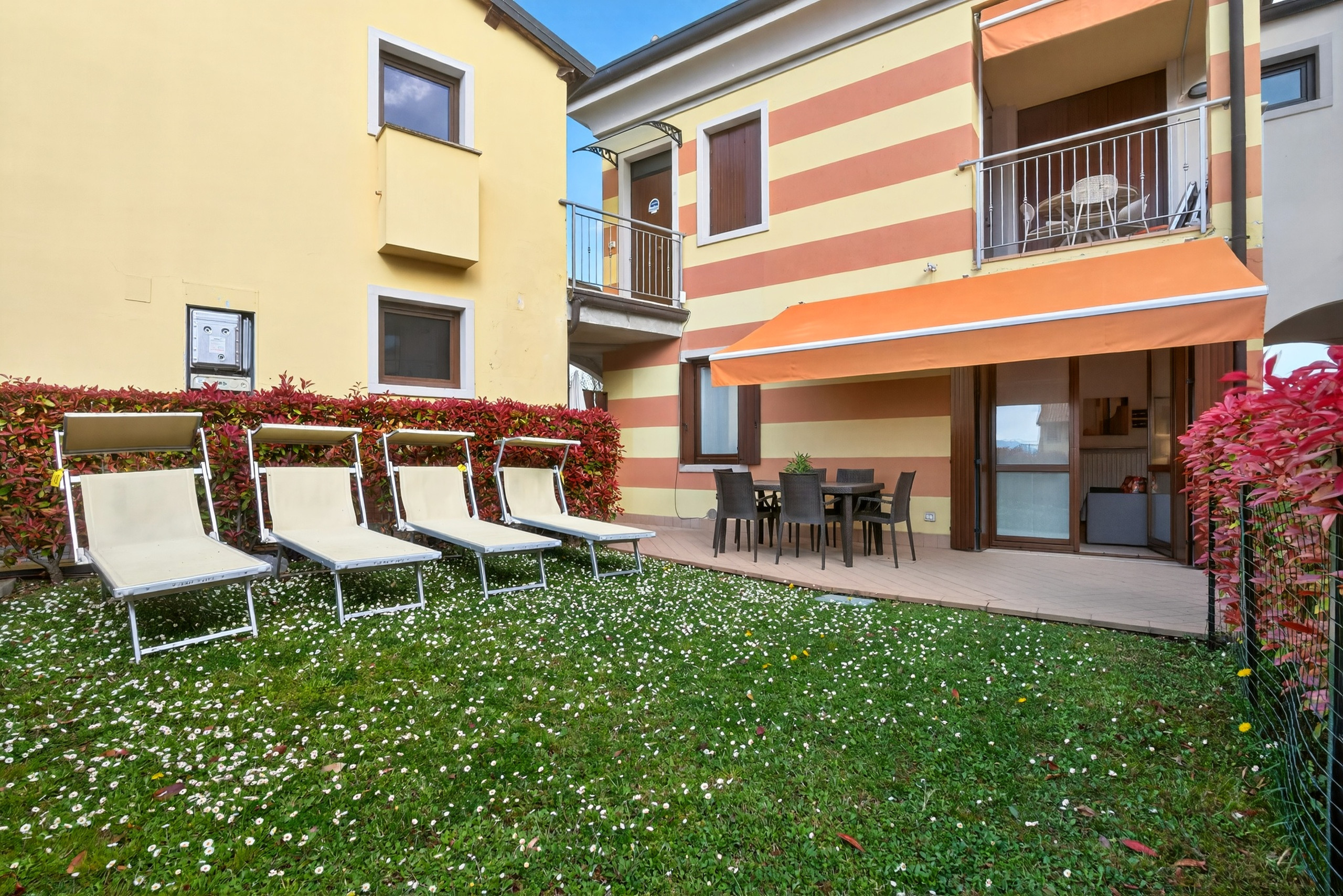 Tranquillo trilocale situato a Lazise, a pochi passi dal centro del paese, dalla spiaggia e dal lungolago raggiungibili a piedi, in complesso residenziale dotato di piscina e bagno/spogliatoio esterno (periodo di apertura garantito 15/05-30/09).