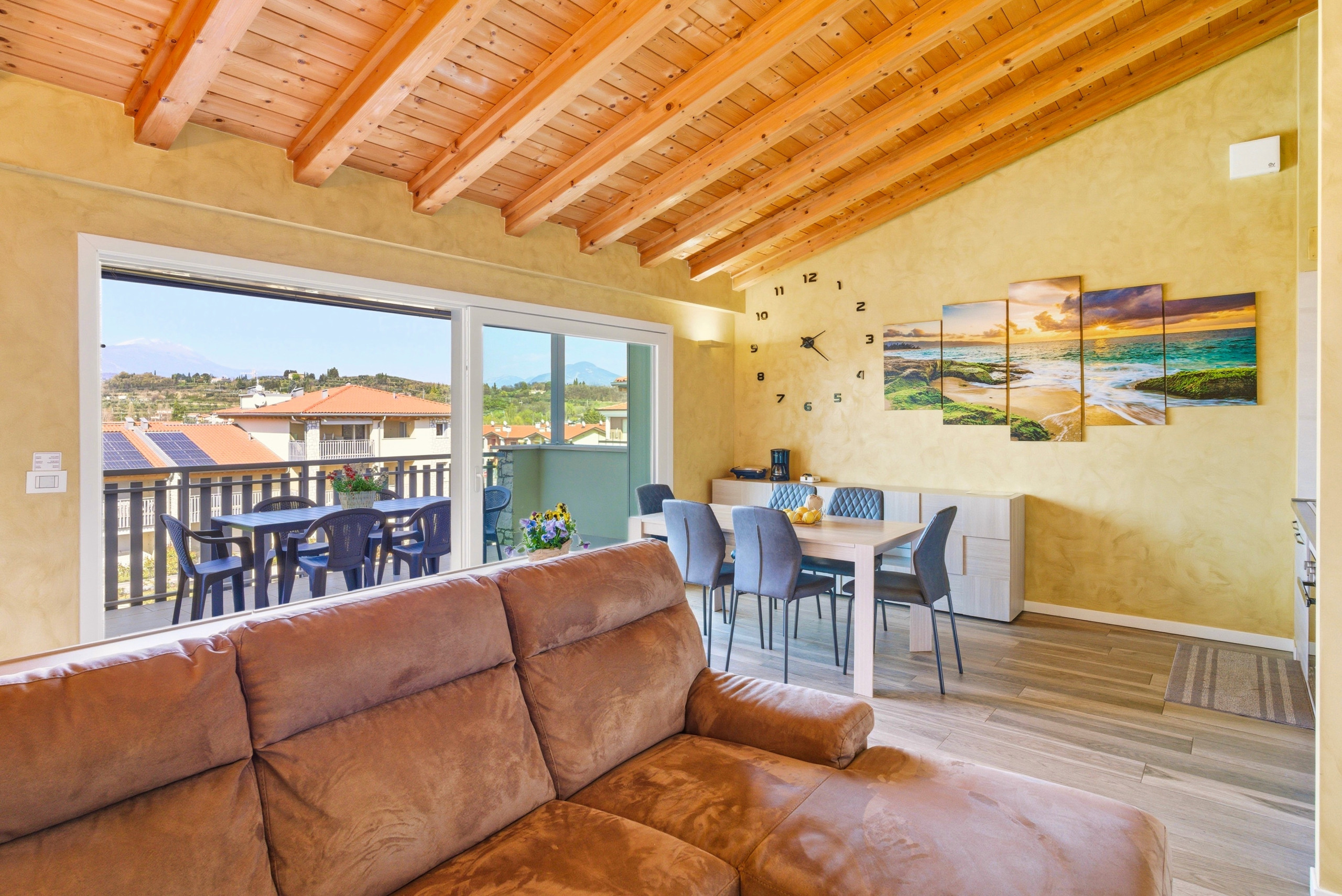Endroit très calme et facile d'accès avec garage privé sur la propriété, piscine (non chauffée), ascenseur, tout était parfait et l'équipement était suffisant pour les vacances et même mieux. La vue sur les montagnes d'un côté et les vignes de l'autrvedi di più