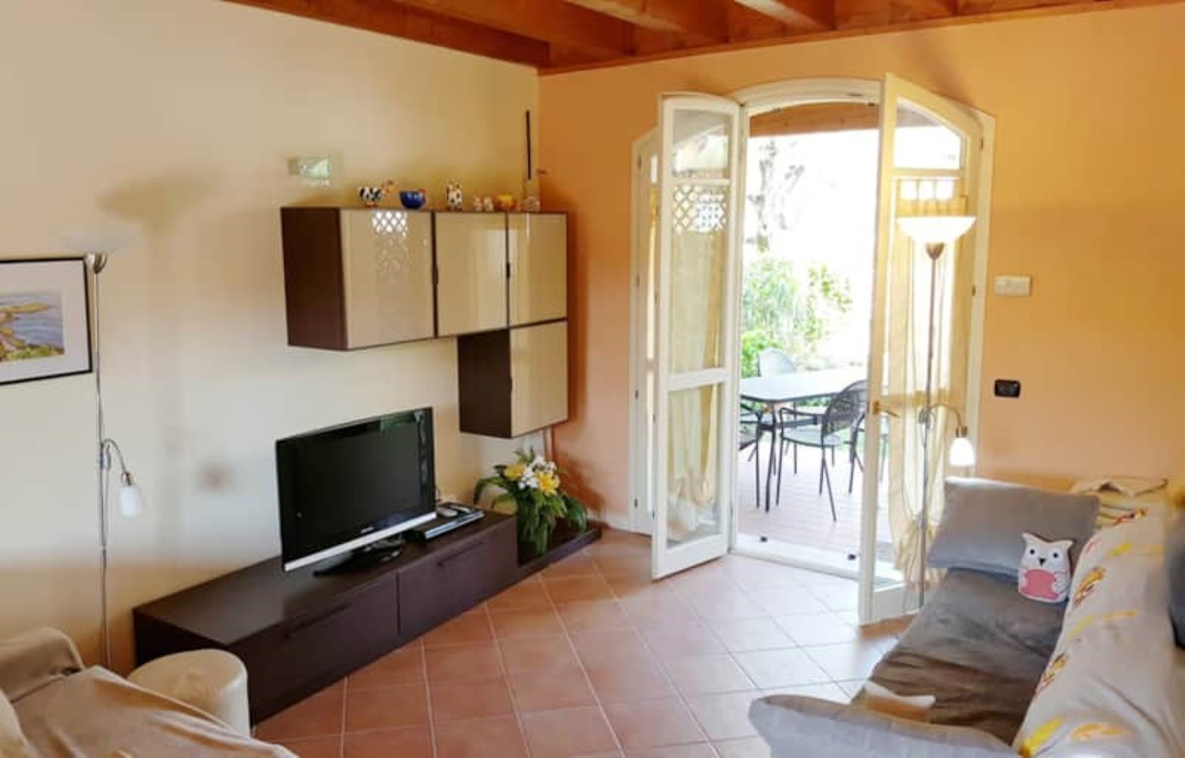 E’ composto da una luminosa zona giorno con angolo cottura completamente accessoriato e divano letto, una camera matrimoniale, una seconda camera matrimoniale ed un bagno moderno con doccia e lavatrice.