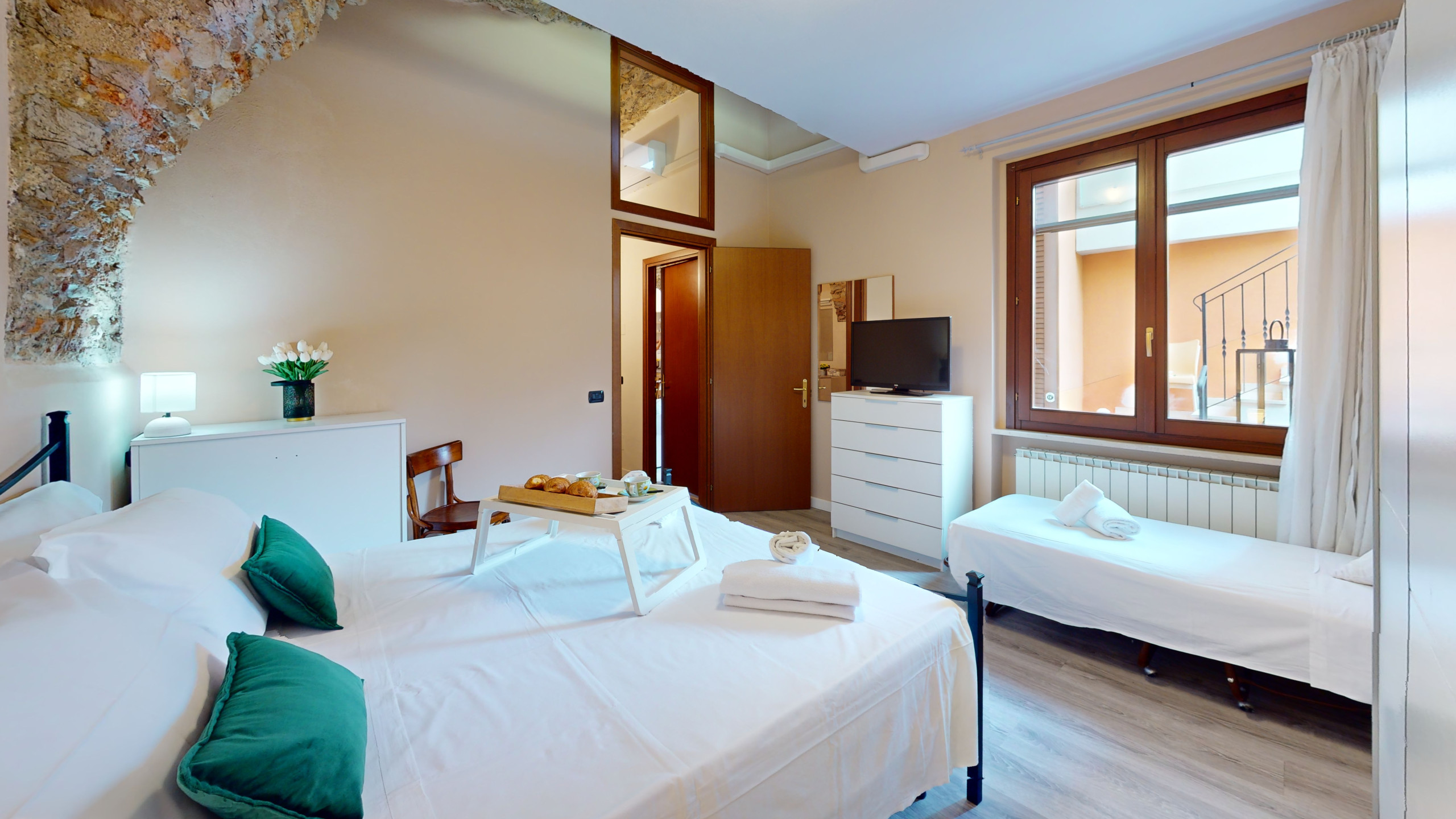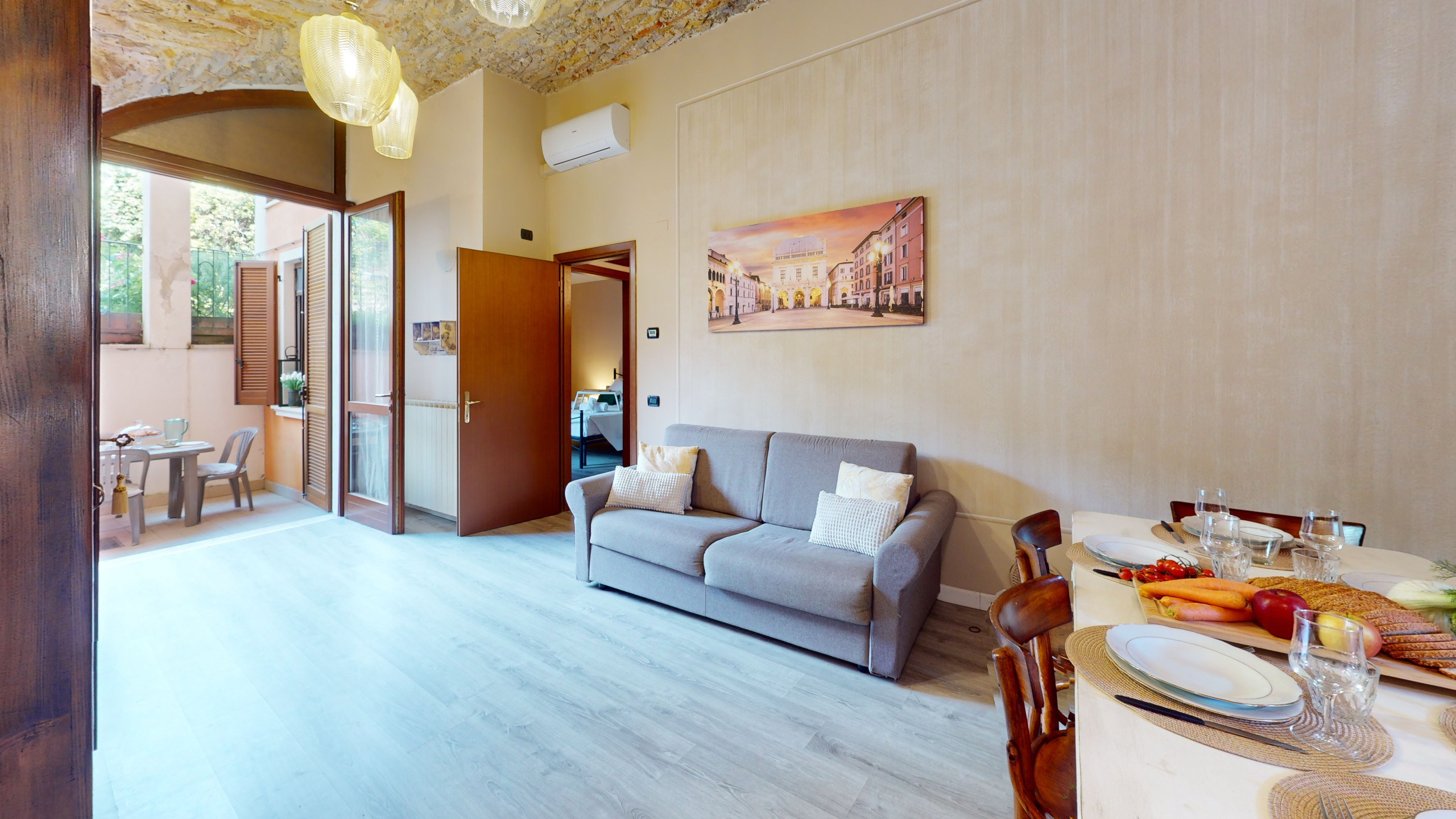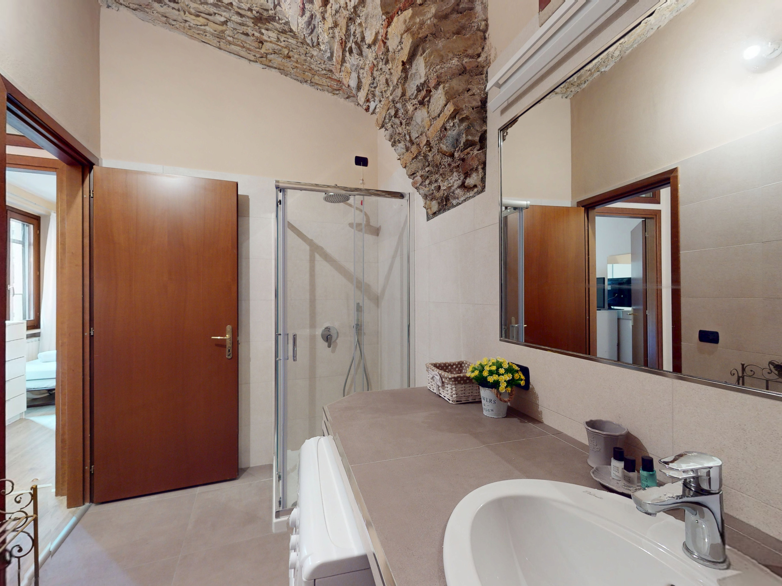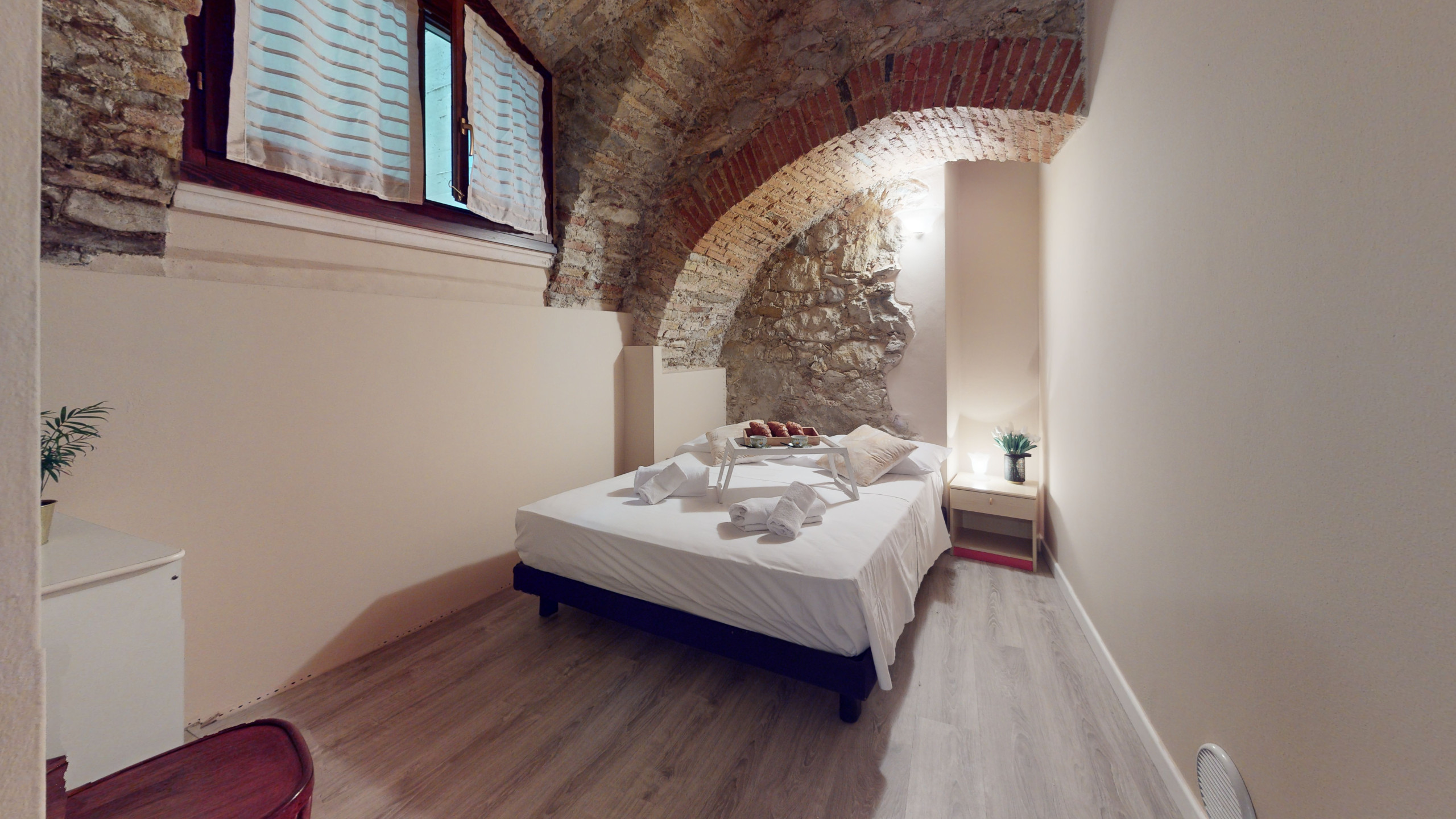 L'appartamento, situato al piano terra, colpisce per la sua atmosfera unica: tutti gli ambienti sono caratterizzati da suggestive volte e soffitti in pietra, che raccontano la storia del luogo e offrono un'accoglienza calda e senza tempo.