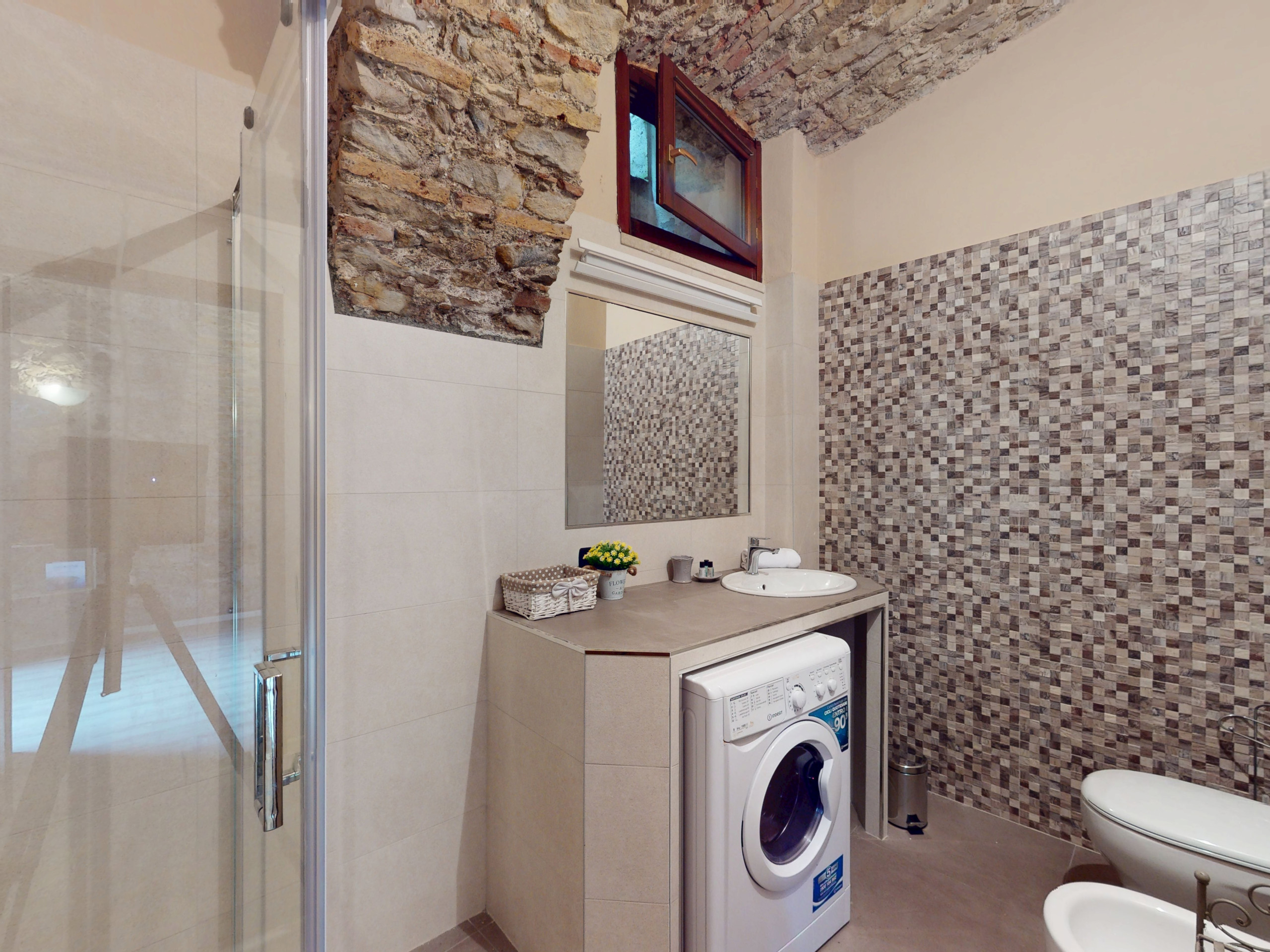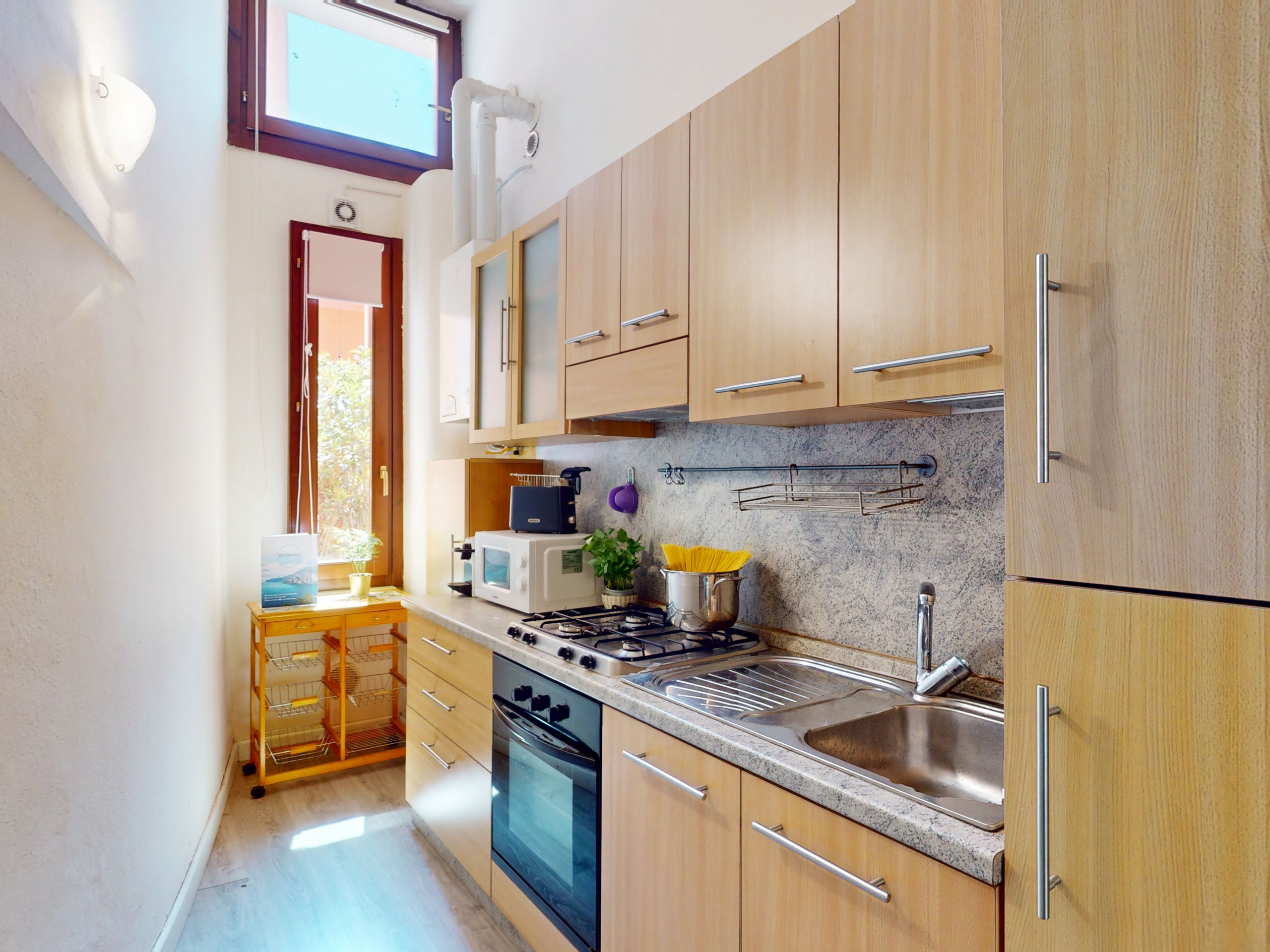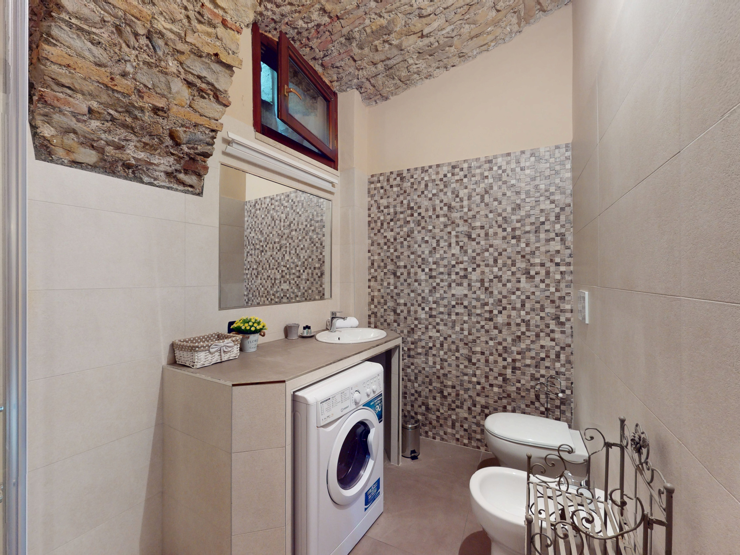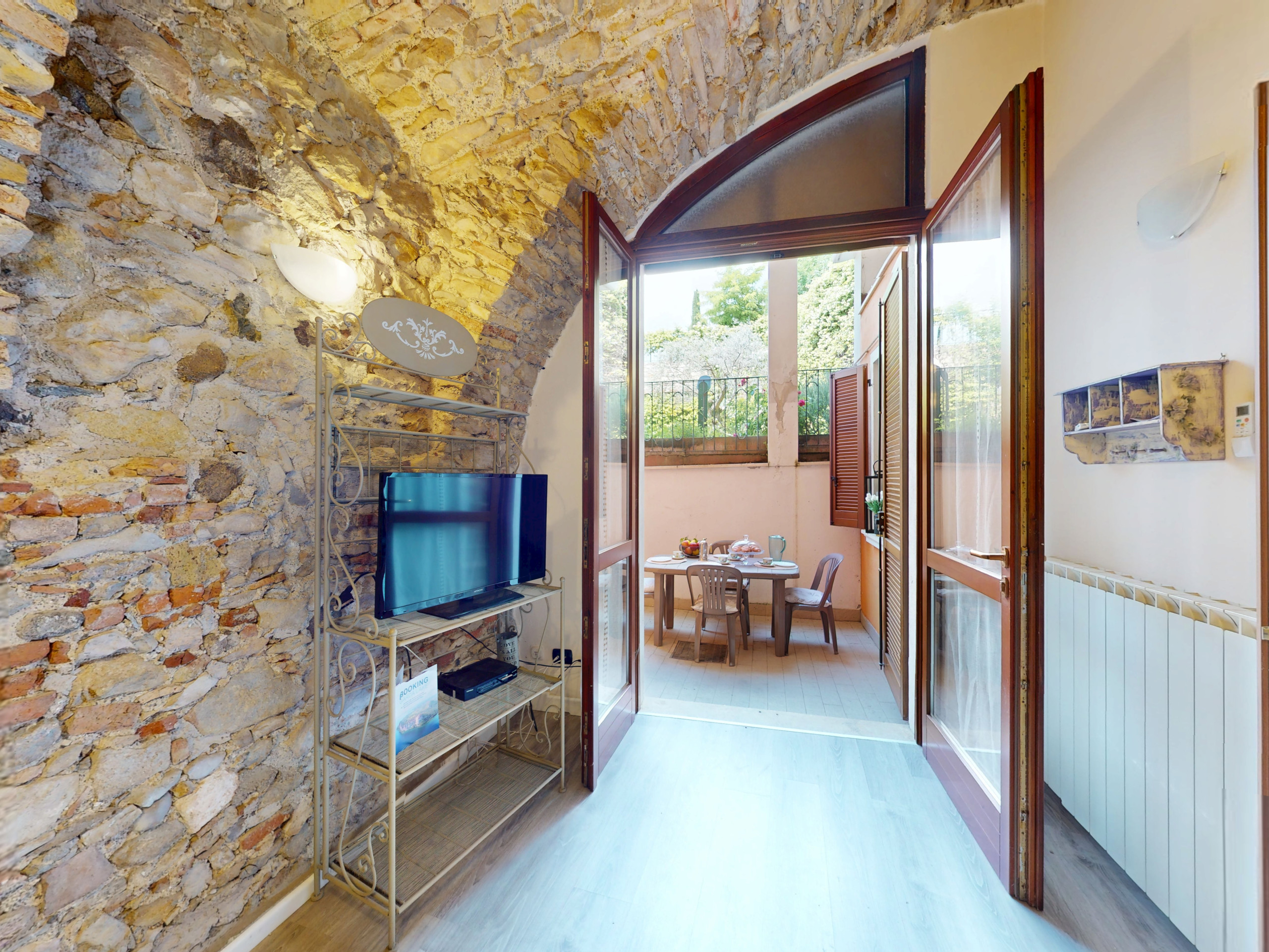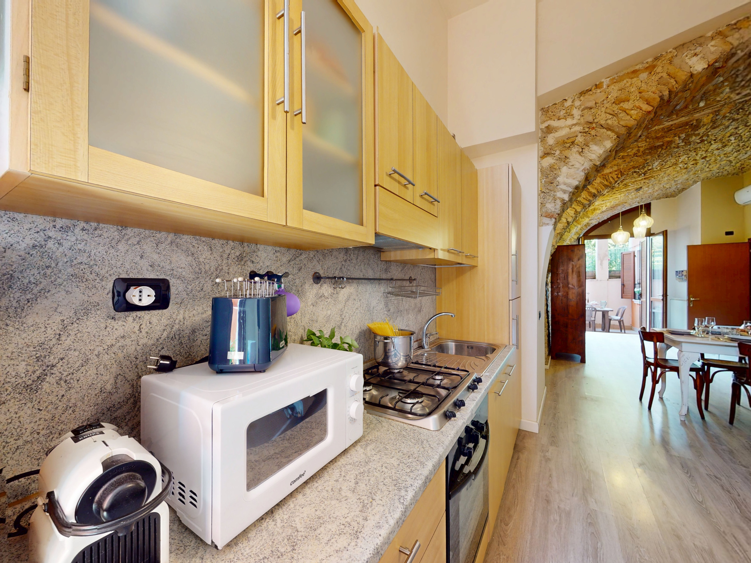 Questo accogliente appartamento al piano terra conquista con i suoi affascinanti soffitti in pietra a volta, che regalano un’atmosfera unica e suggestiva.
