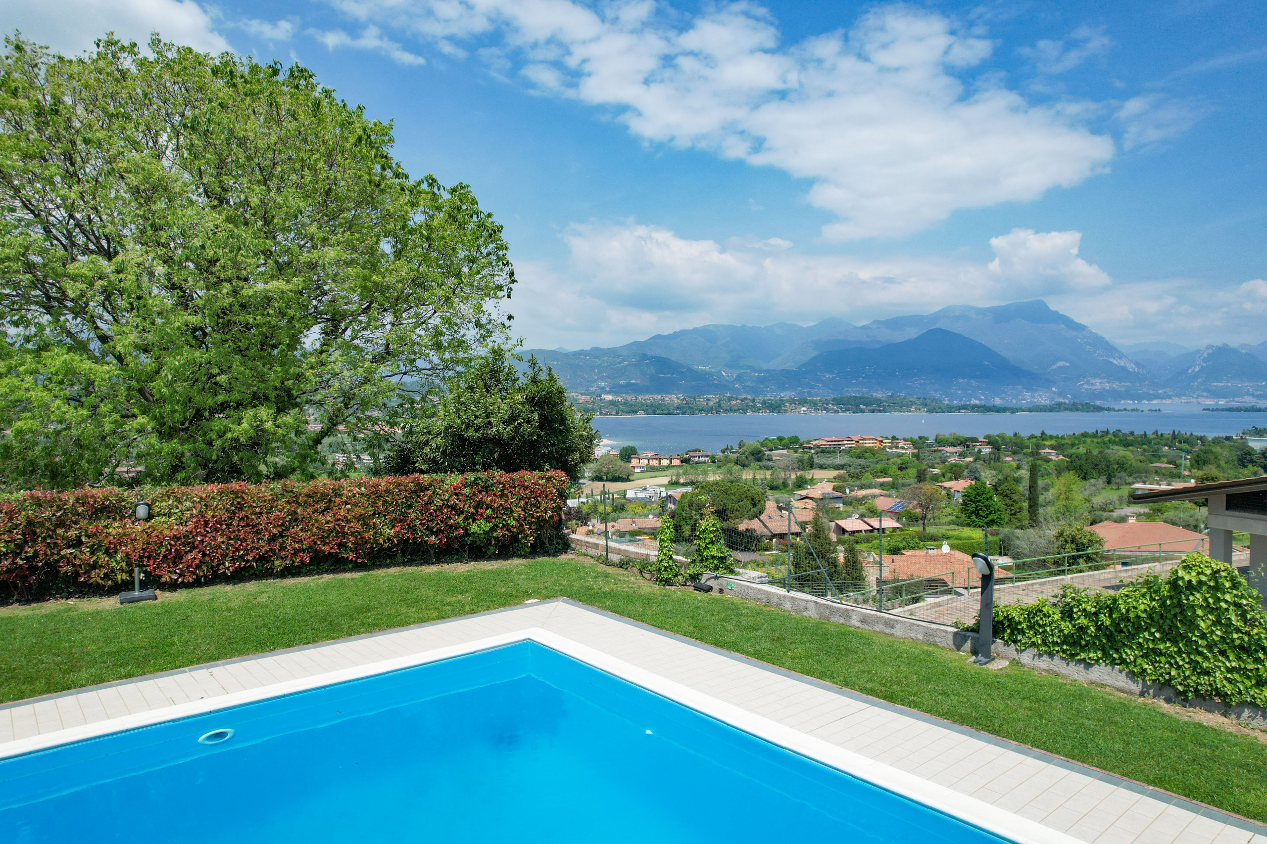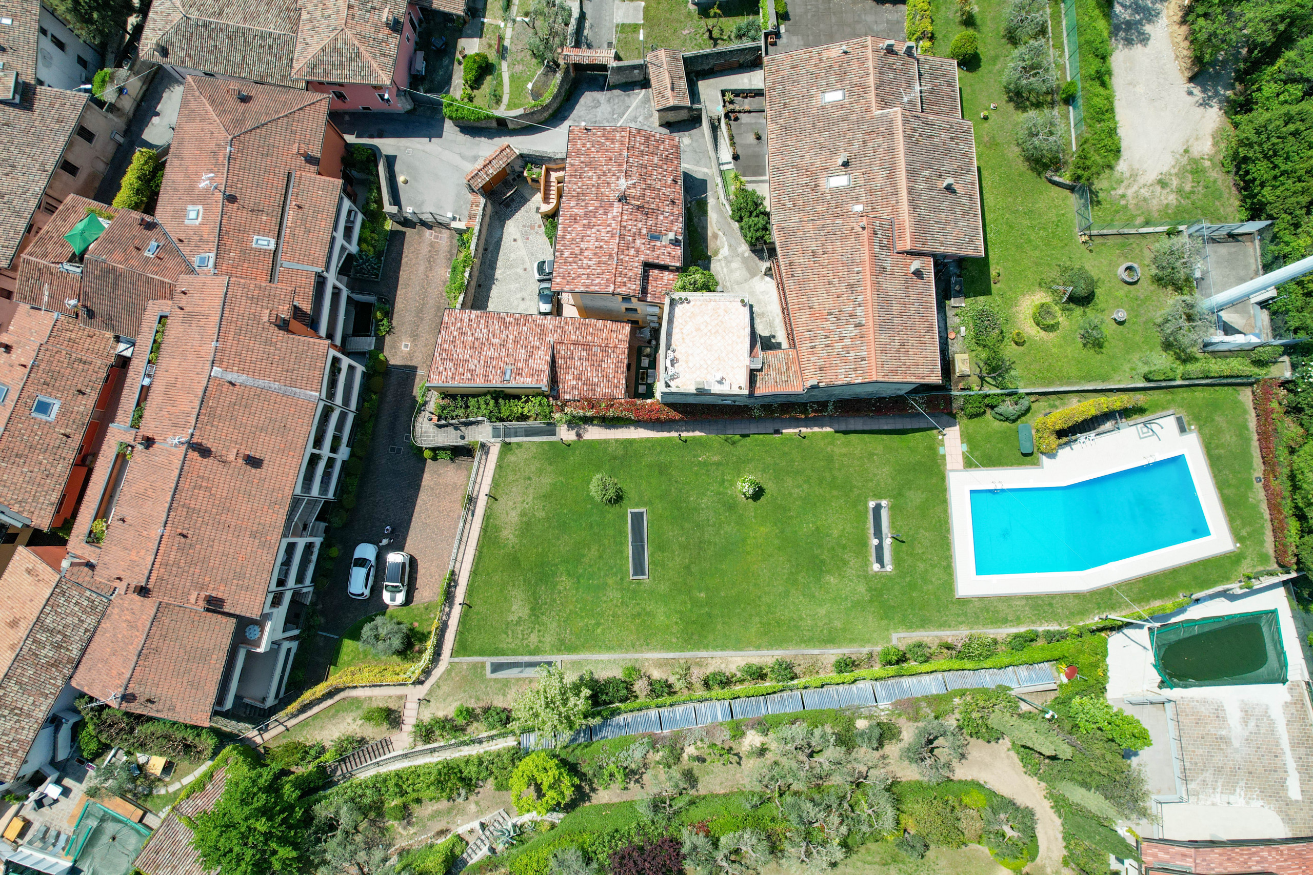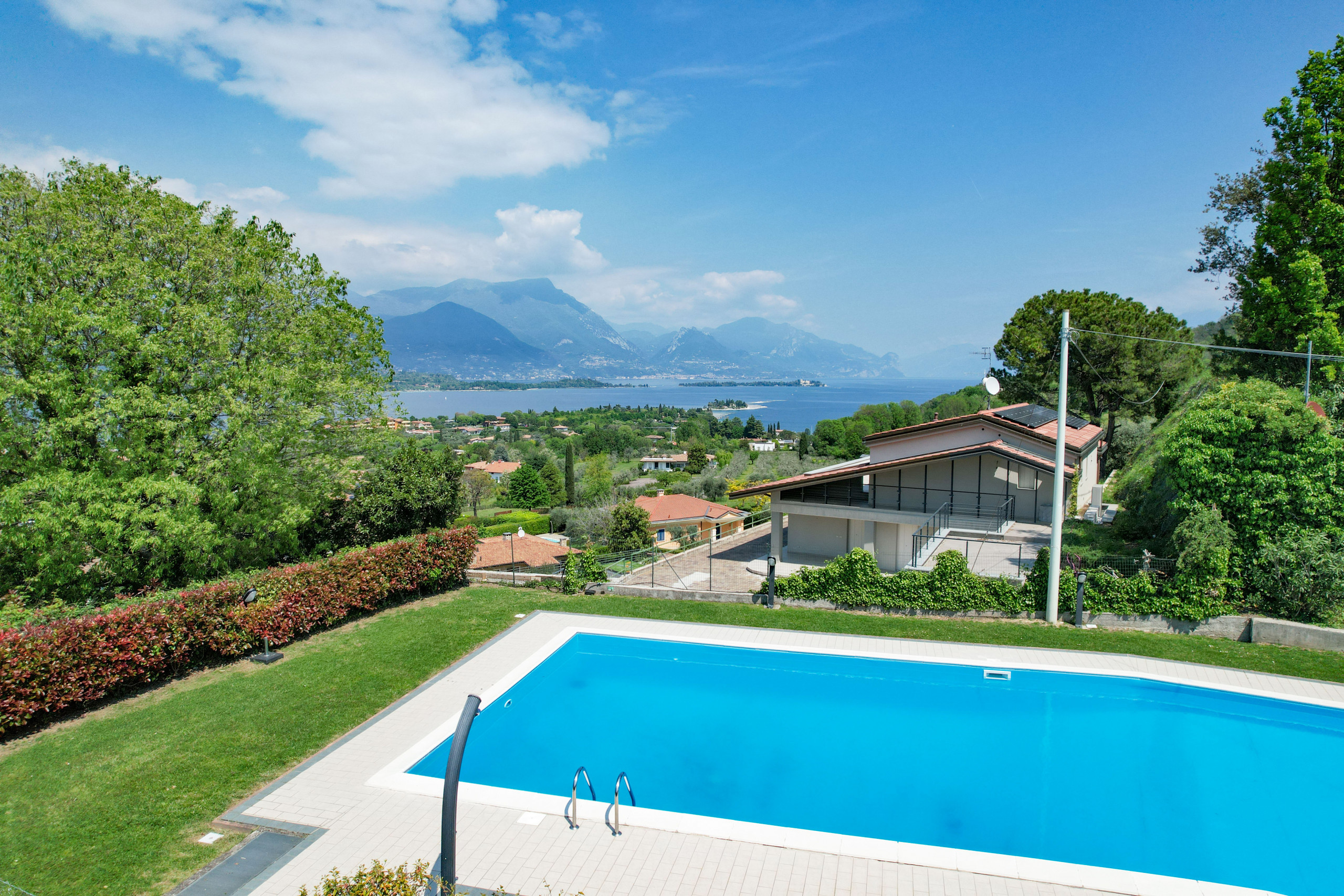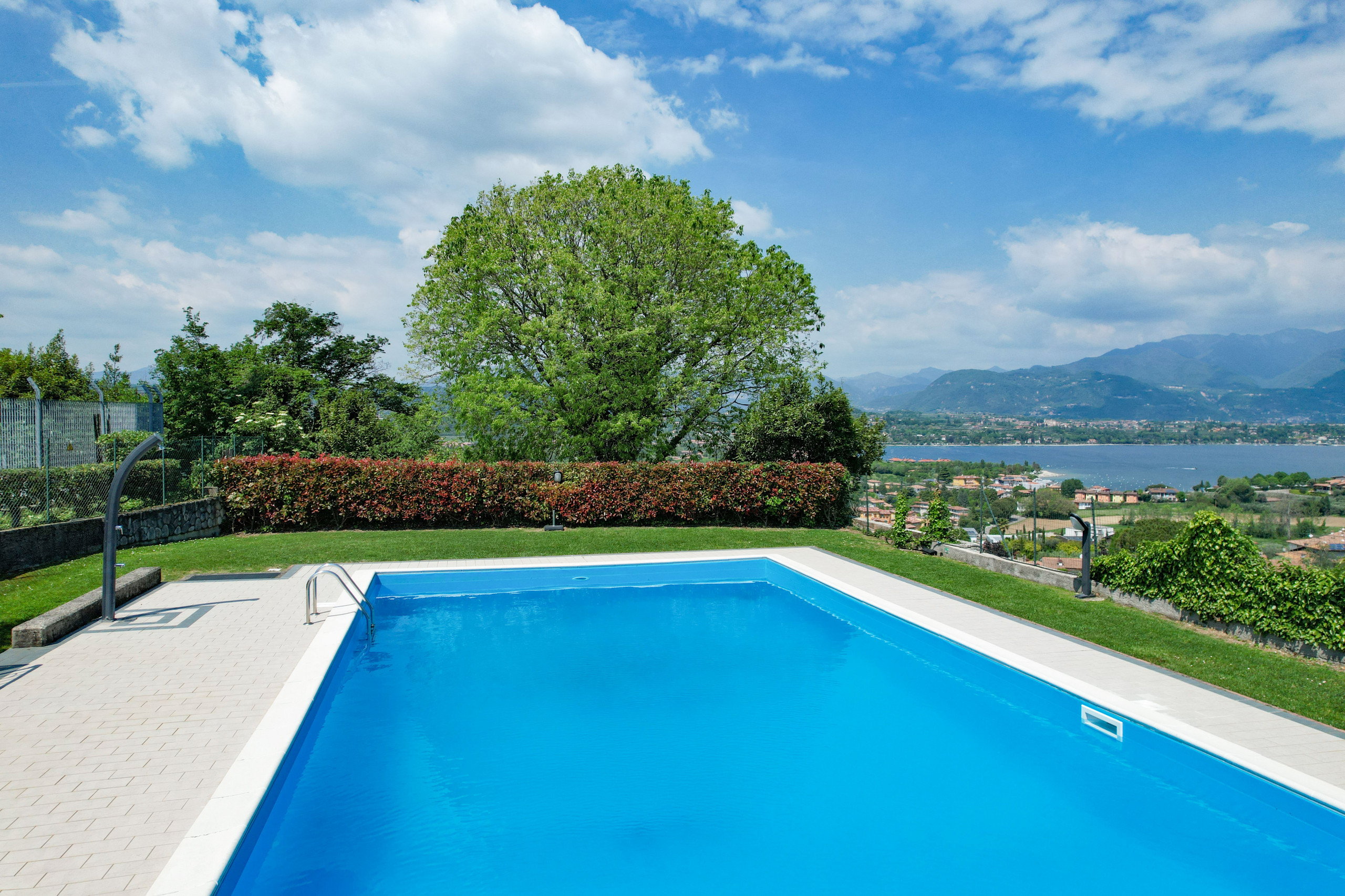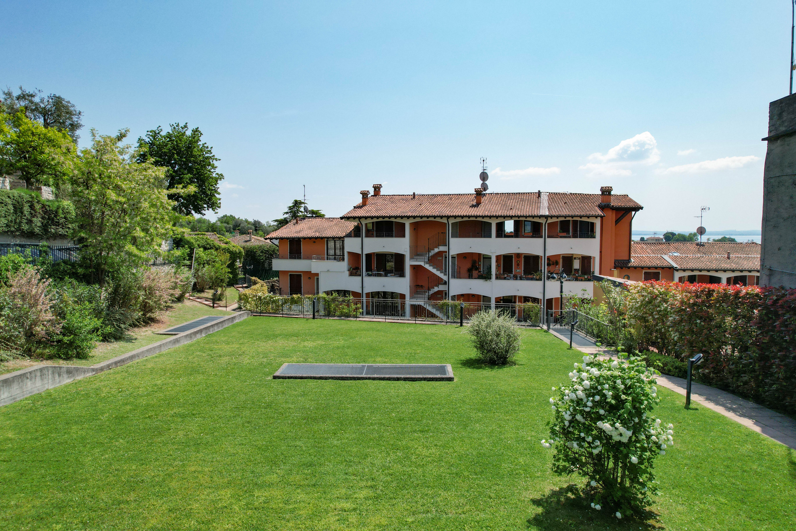 Completa la proprietà un comodo posto auto coperto e l’accesso a una splendida piscina circondata da un ampio giardino verde, con vista mozzafiato sul Lago.