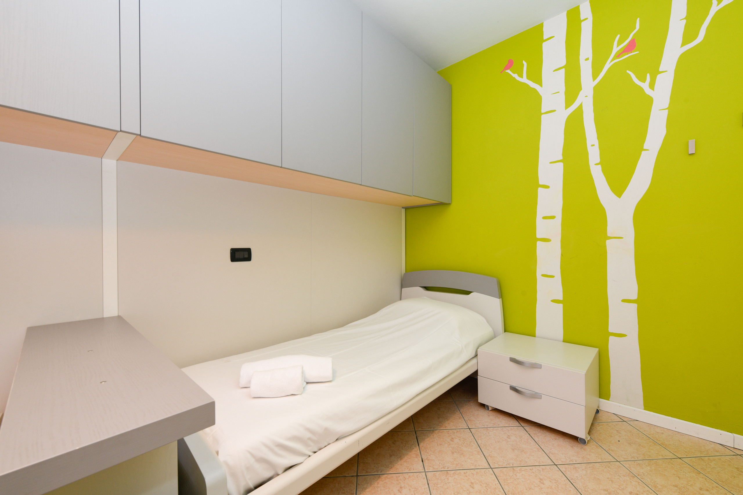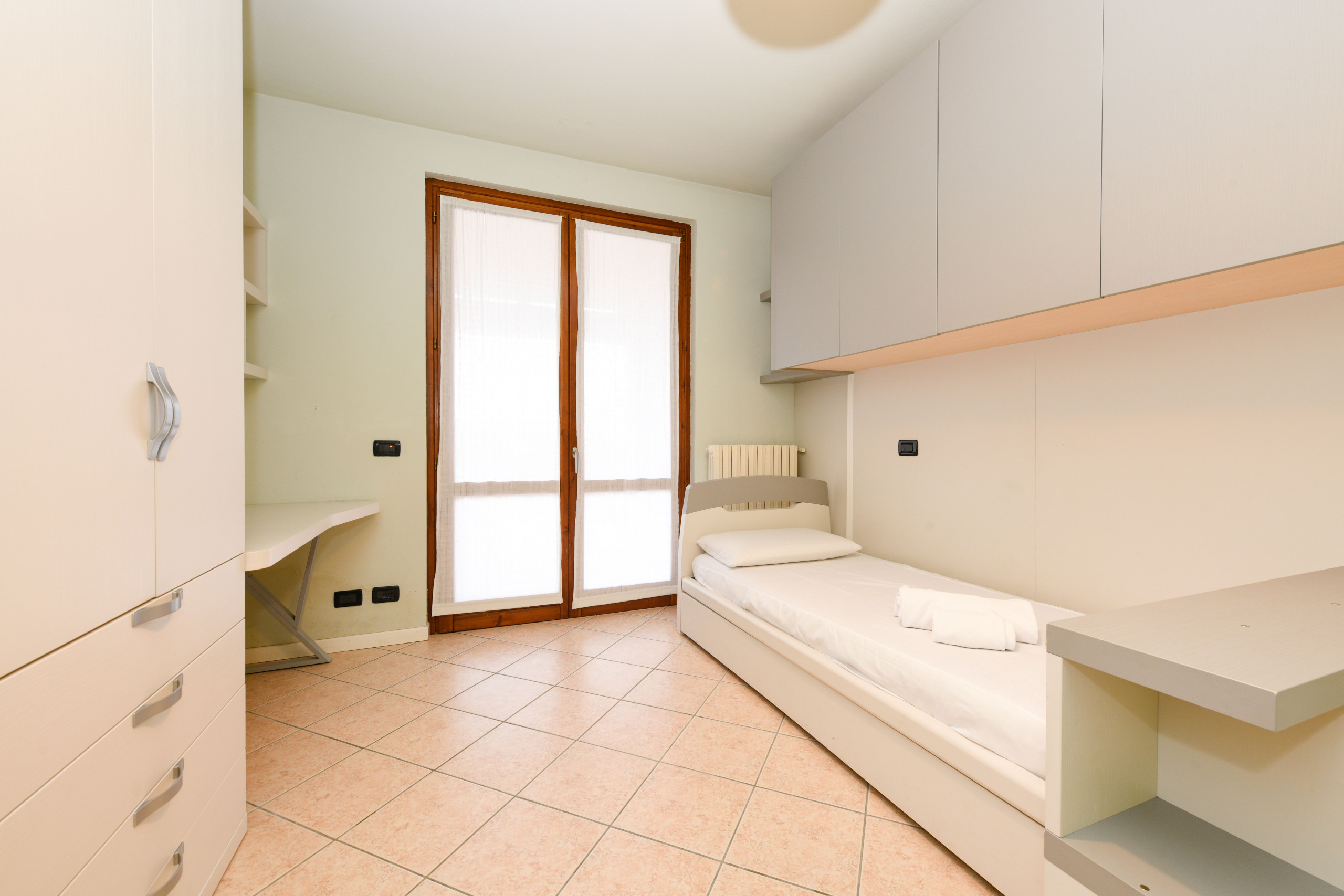 E’ composto da una luminosa zona giorno con angolo cottura completamente accessoriato e divano letto, una camera matrimoniale, una seconda camera matrimoniale ed un bagno moderno con doccia e lavatrice.