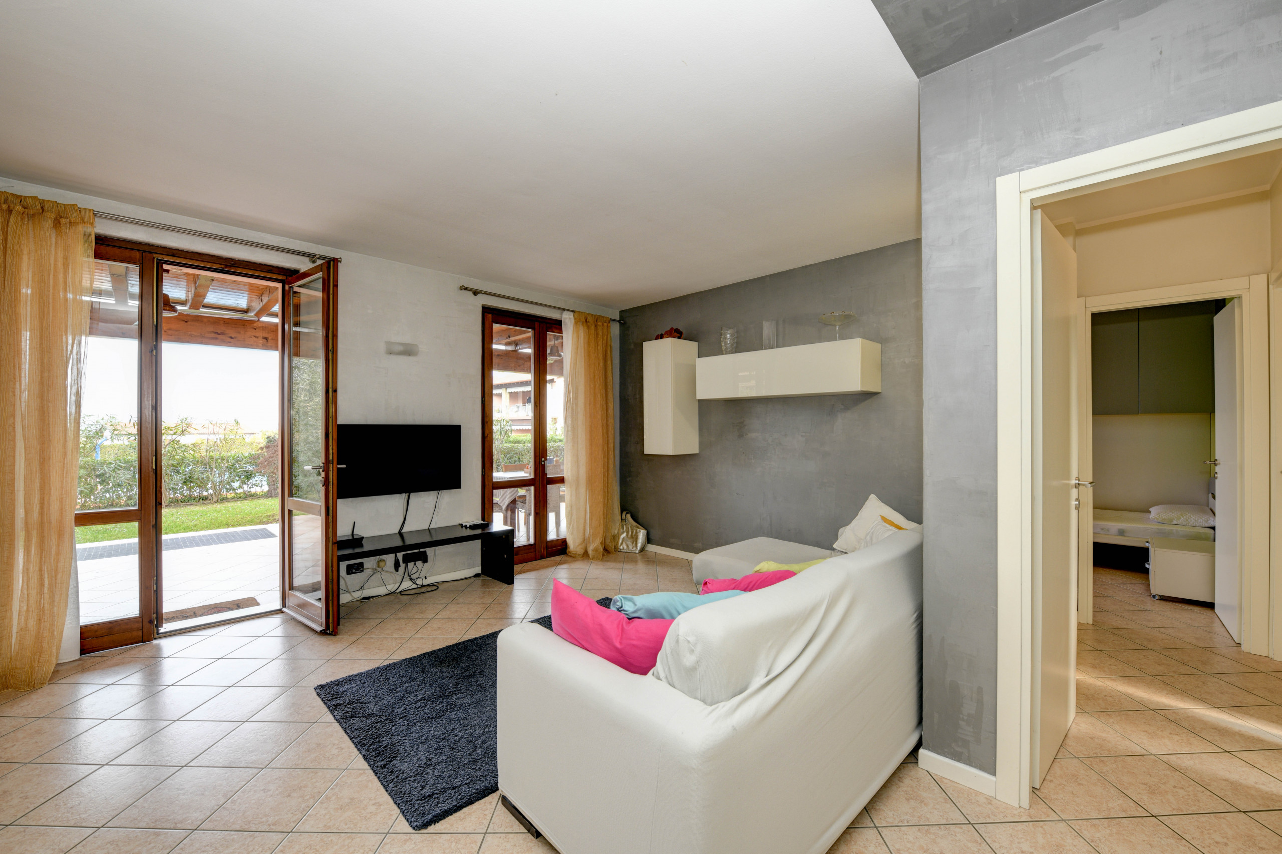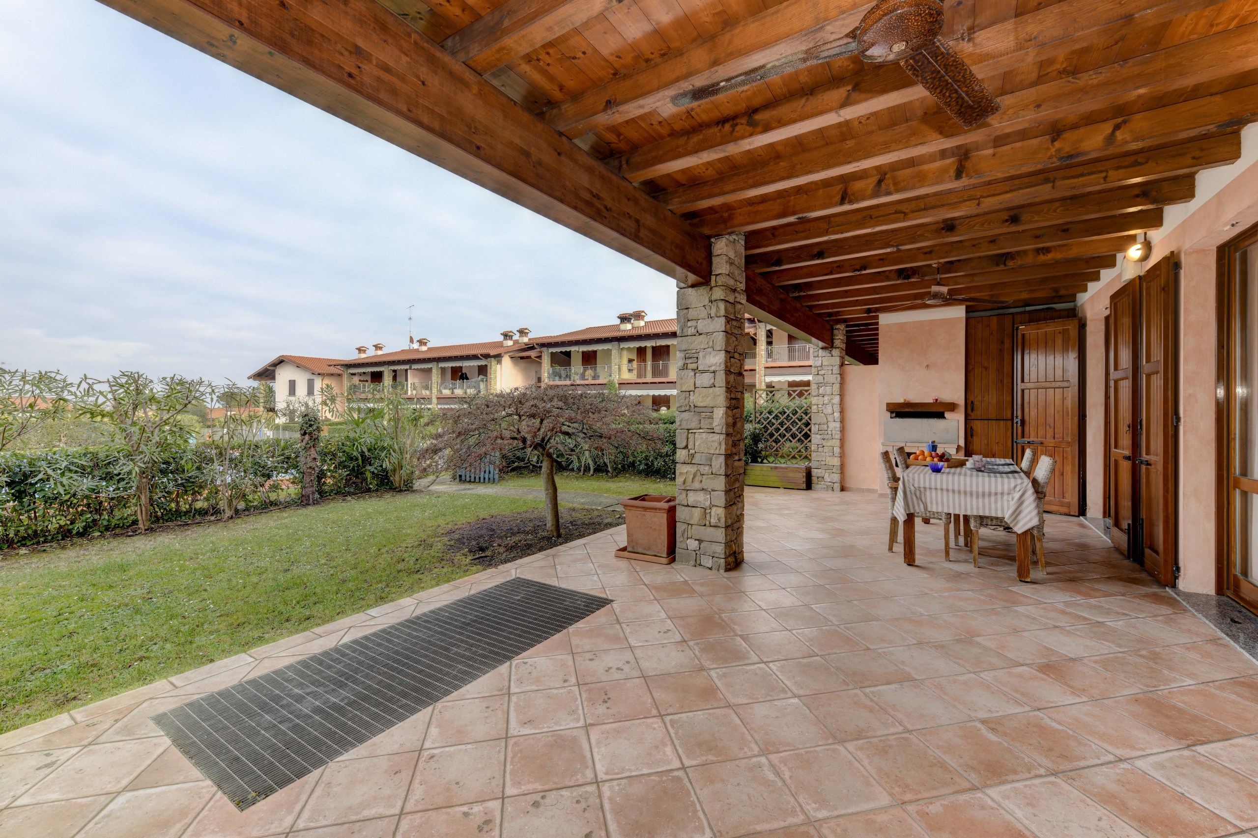 La casa si trova al piano terra in un residence con piscina di poche unità e ospita fino a 6 persone: dall'ampio portico attrezzato di camino bbq si accede alla luminosa giorno openspace con smart tv e divano letto, cucina americana totalmente attrezzata, un piccolo bagno di servizio con zona lavanderia, camera matrimoniale con accesso al giardino sul retro, secondo bagno con doccia e seconda camera con due letti singoli con affaccio sul portico con giardino privato.