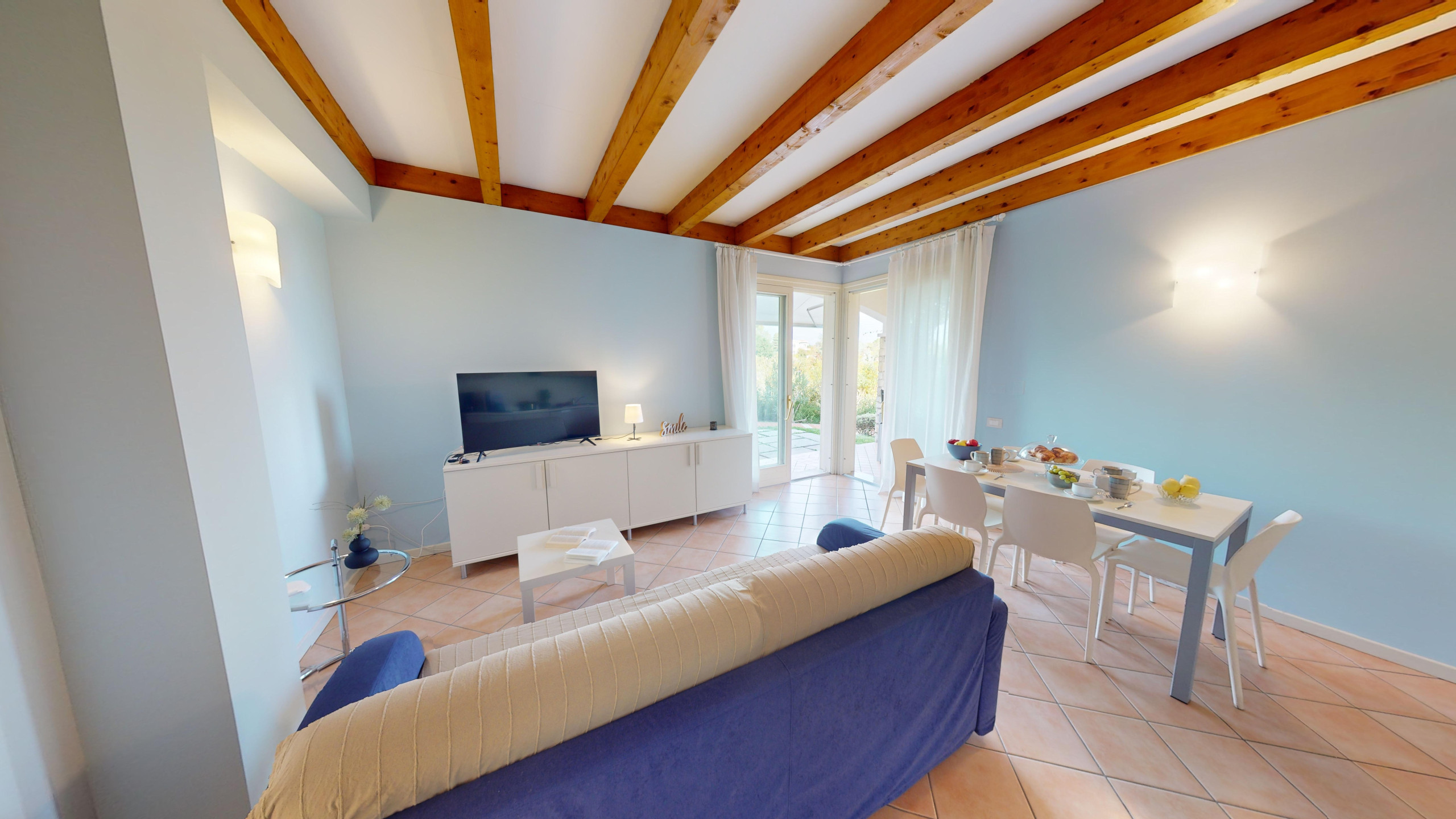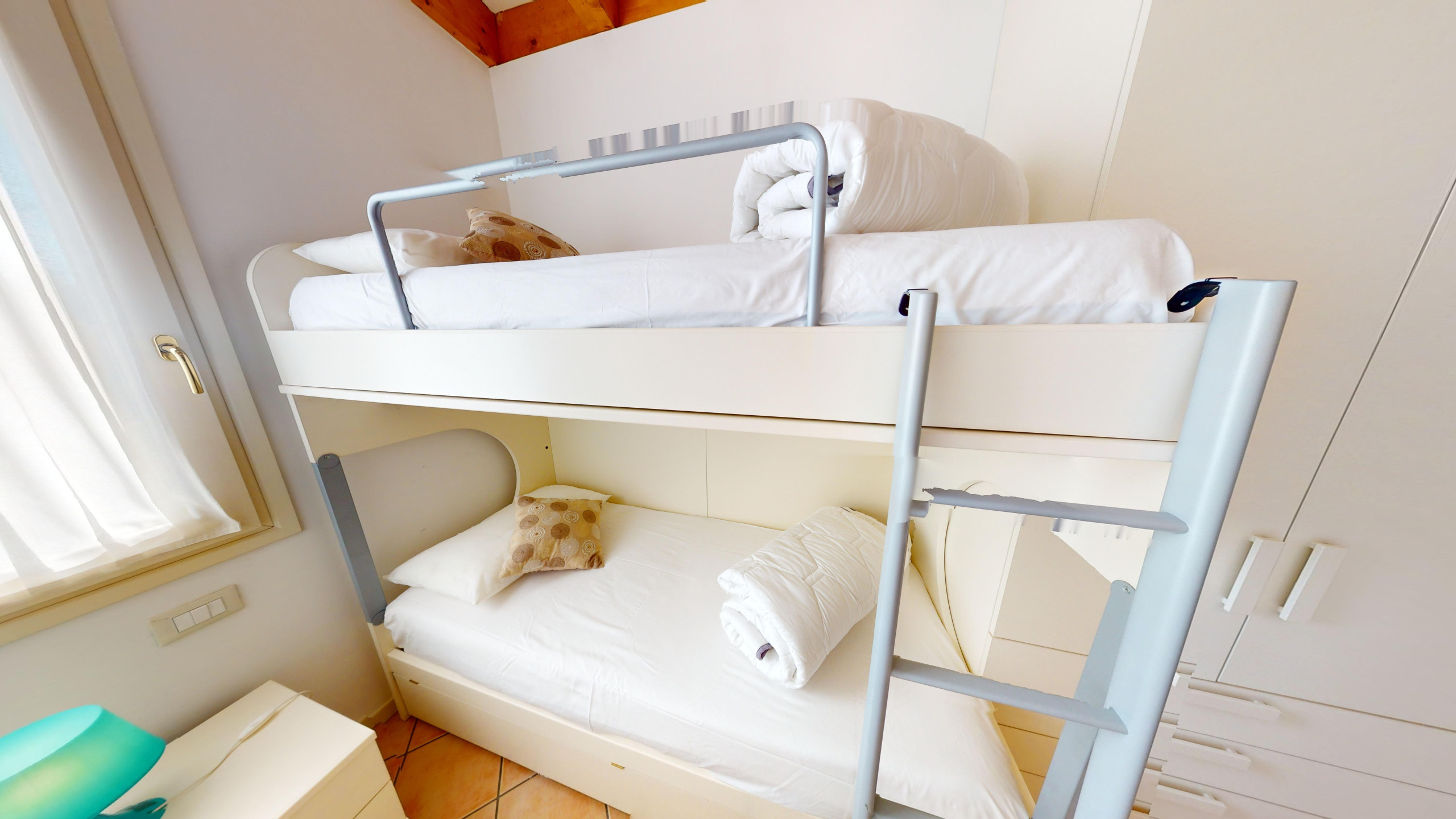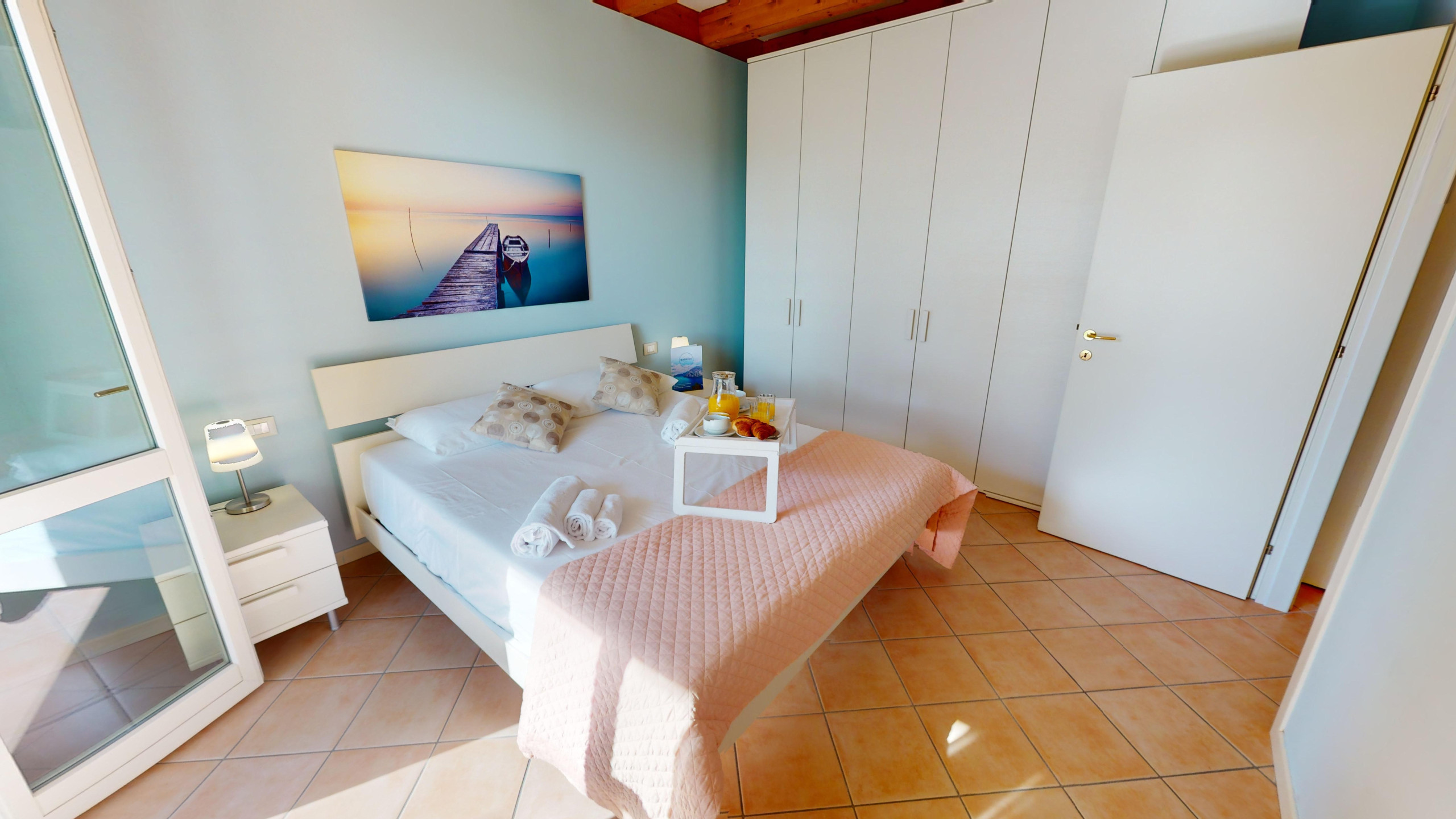 E’ composto da una luminosa zona giorno con angolo cottura completamente accessoriato e divano letto, una camera matrimoniale, una seconda camera matrimoniale ed un bagno moderno con doccia e lavatrice.