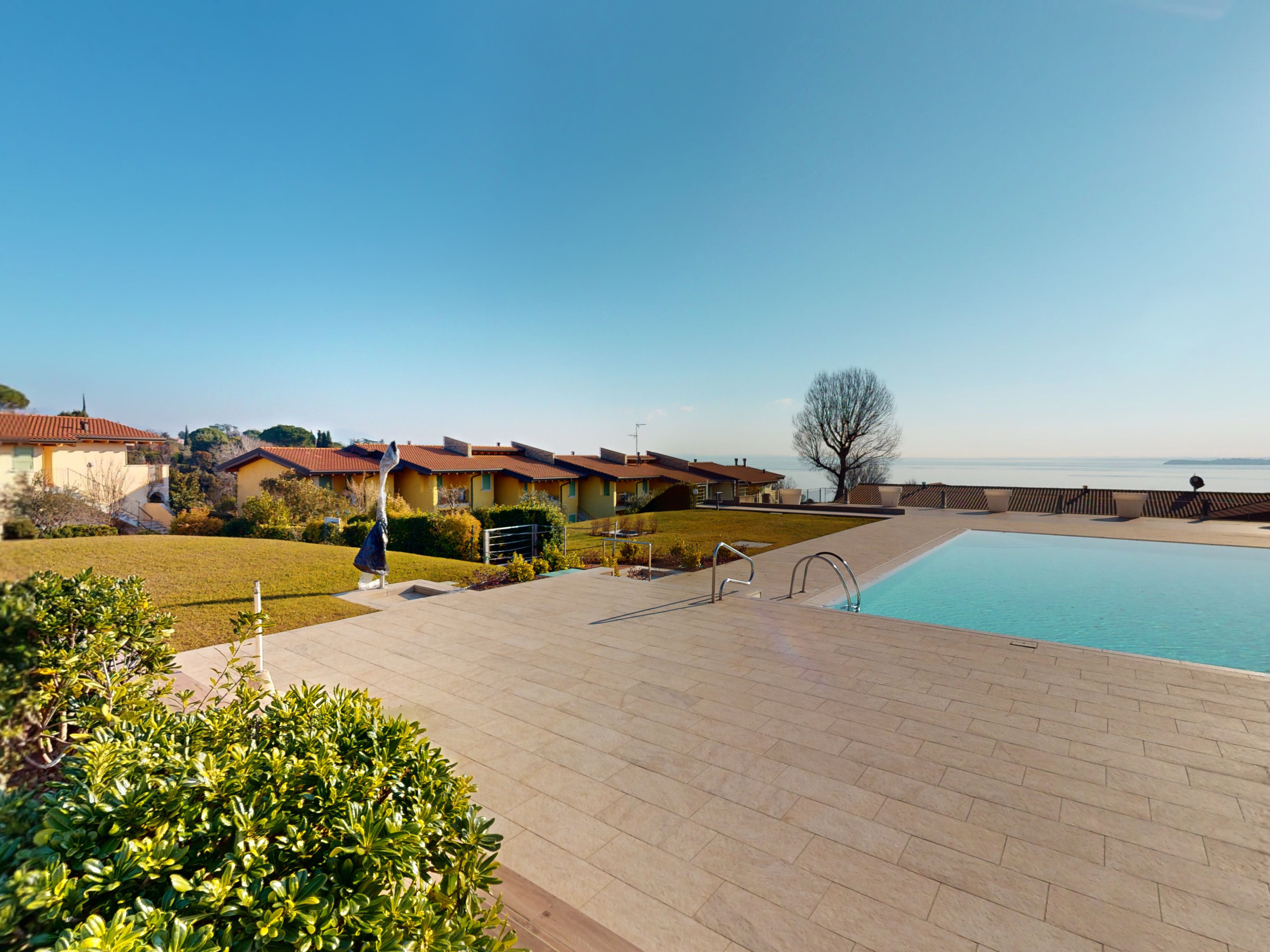 Completa la proprietà un comodo posto auto coperto e l’accesso a una splendida piscina circondata da un ampio giardino verde, con vista mozzafiato sul Lago.
