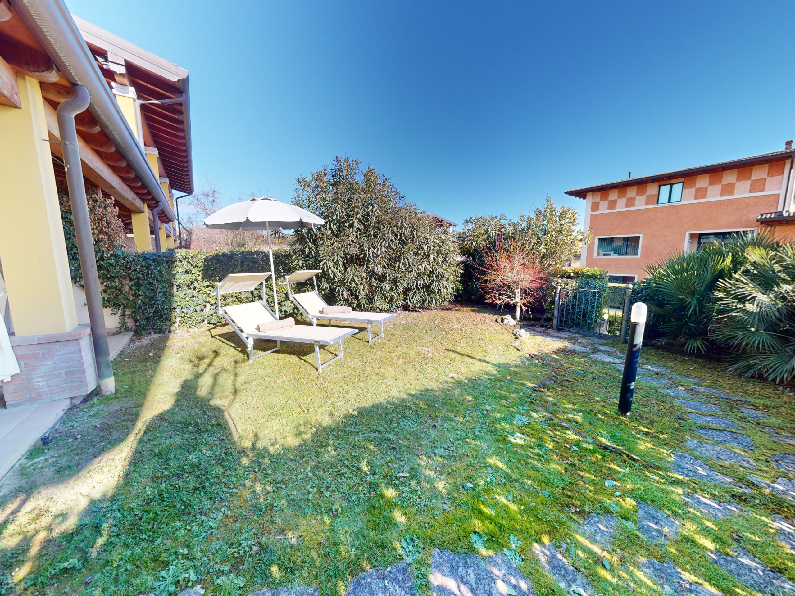 Garda Pleasure può ospitare fino a 5 persone grazie a due camere da letto arredate con cura: una con letto matrimoniale e l’altra con letto a castello, un terzo letto singolo e angolo studio per postazione pc, ideali per garantire spazi funzionali e riservati per ogni ospite con accesso al giardino sul retro.