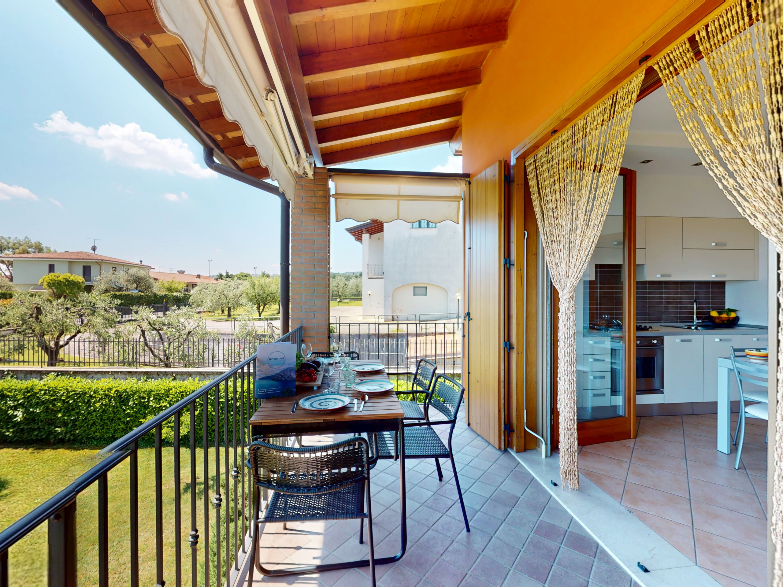 Goditi una vacanza indimenticabile in questo appartamento al primo piano, all’interno di un piccolo residence con piscina, a pochi minuti dalle splendide rive del Lago di Garda.