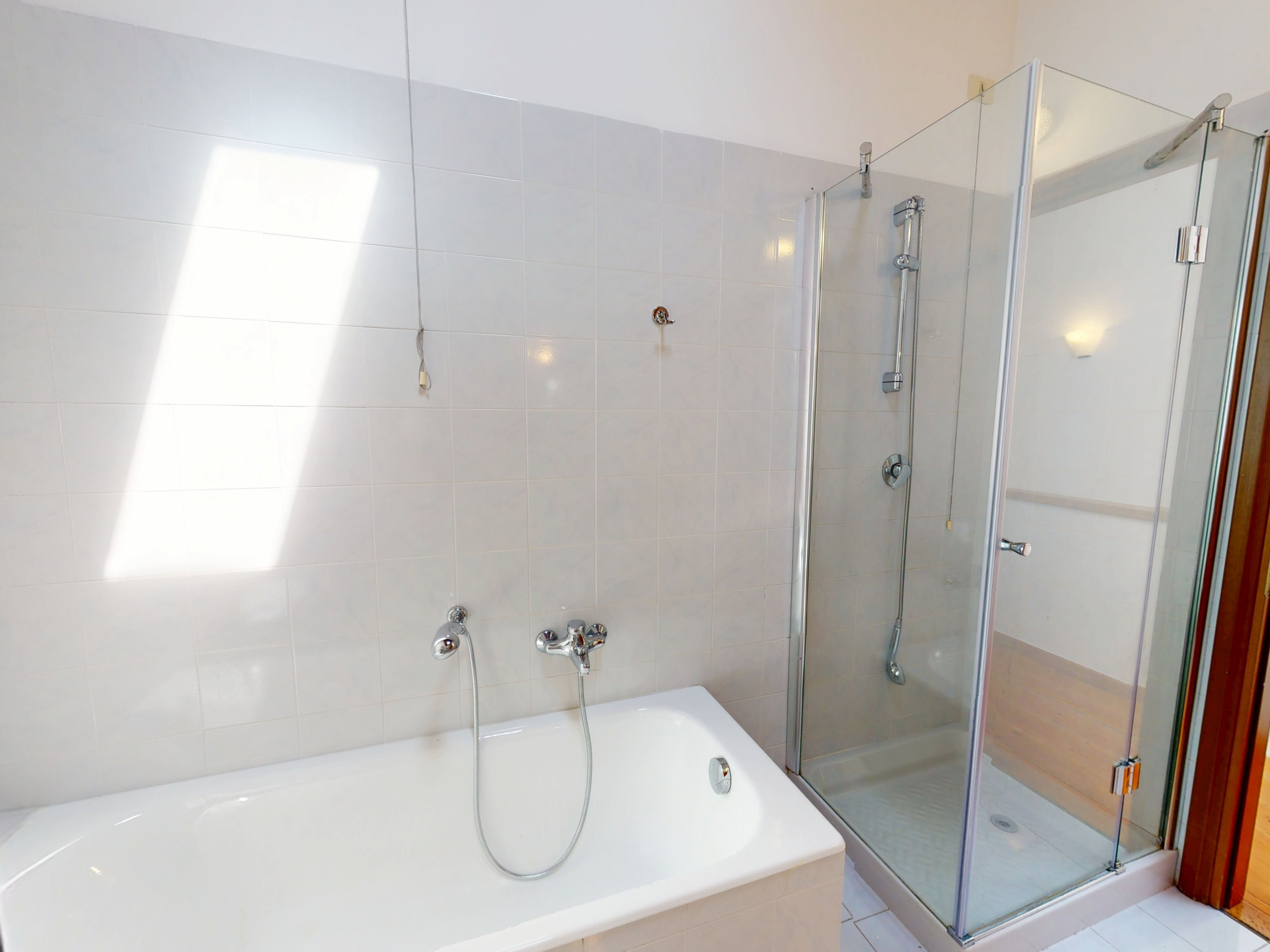 Il bagno del piano superiore, elegante e ben rifinito, dispone sia di una vasca che di una doccia, per concedersi una pausa rigenerante.