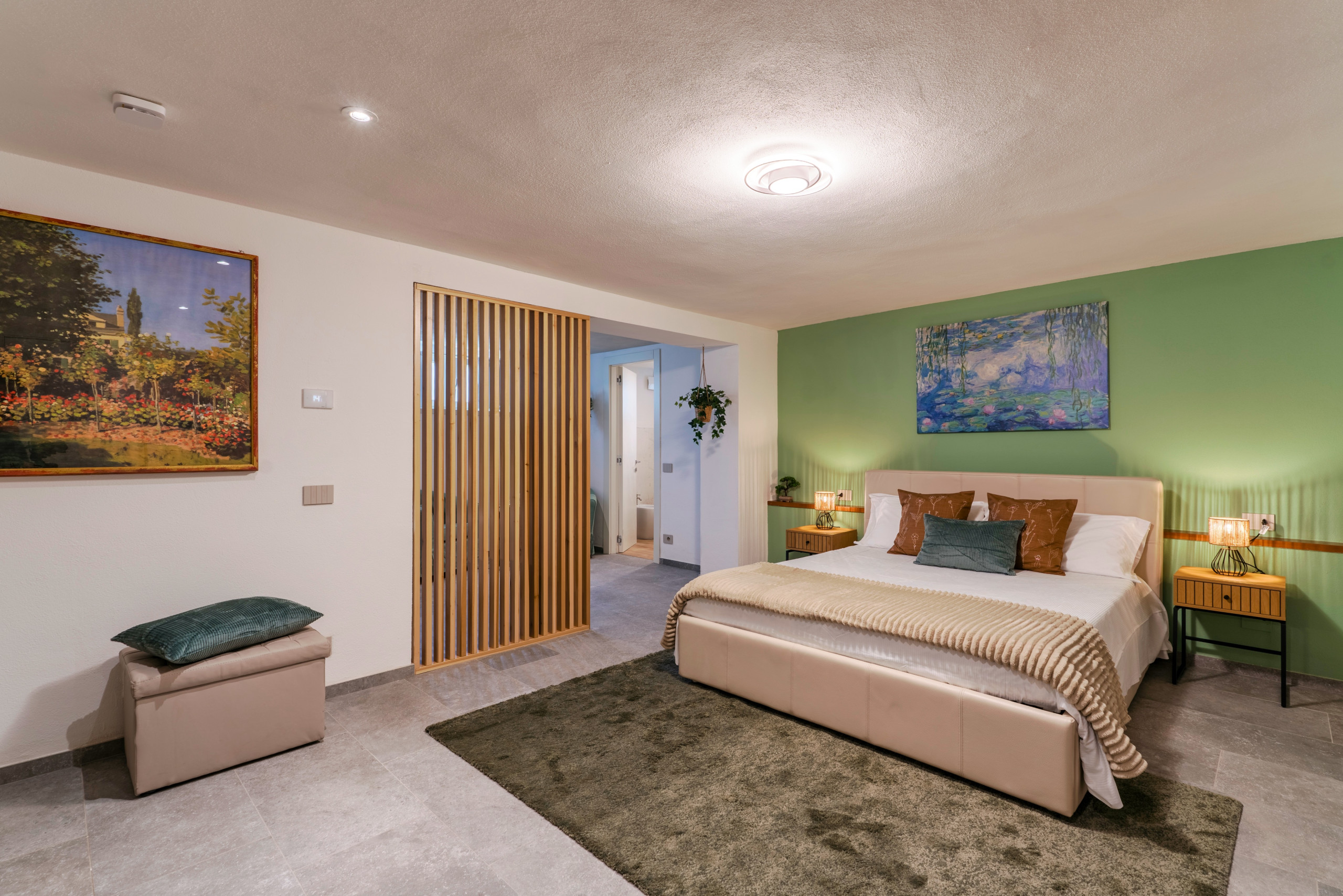 Al piano terra sono presenti anche due camere da letto con bagno privato. La camera padronale, di generose dimensioni, dispone di una spaziosa cabina armadio. La seconda stanza da letto offre uno spazioso guardaroba.