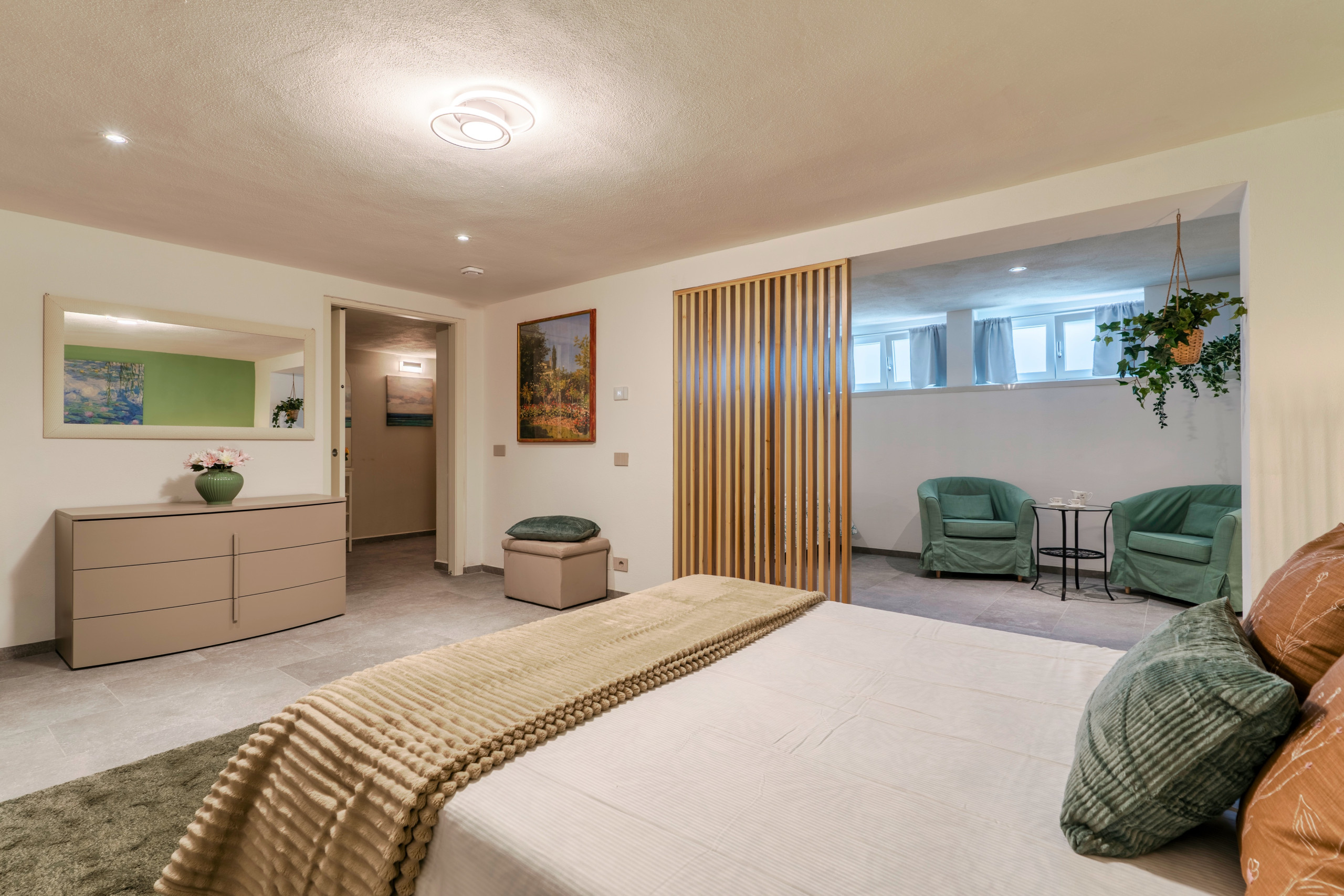 Im Keller fehlt eine Klimaanlage und Feuchtigkeit vorhanden. Wir empfehlen die Bewässerung des Rasens auf einen späteren Zeitpunkt zu legen. Die Anlage geht schon um 20:30 Uhr und wir wurden ein paar mal davon überrascht. |