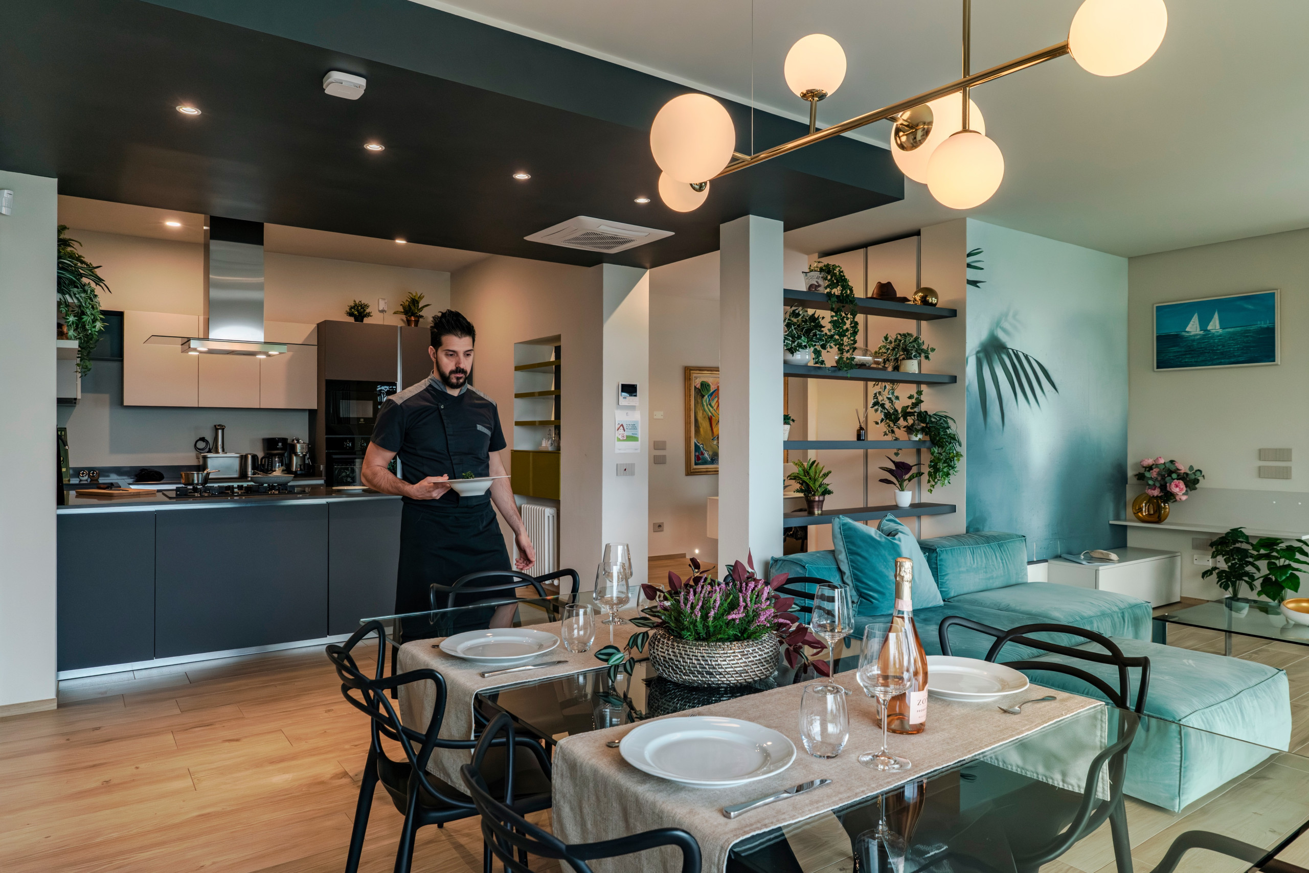 Il piano terra di Villa Orizzonti accoglie l’area living, oltre che una cucina completamente attrezzata dotata di piano cottura ad induzione, forno, forno a microonde, frigorifero con congelatore, lavastoviglie, macchina del caffè e tostapane. Il salotto con veduta panoramica sulla zona piscina, sul giardino di 600 mq e sul lago è arredato con un grande divano ed una smart TV (no satellite). La zona pranzo con libreria e tavolo in cristallo può ospitare fino ad 8 persone. All’esterno si trovano un giardino mediterraneo ed una terrazza coperta per cene e pranzi all'aperto. La piscina privata è ideale per rilassarsi e rigenerarsi dallo stress, è presente anche un'area solarium dotata di lettini ed ombrellone (periodo di apertura garantito 15/05-30/09).
