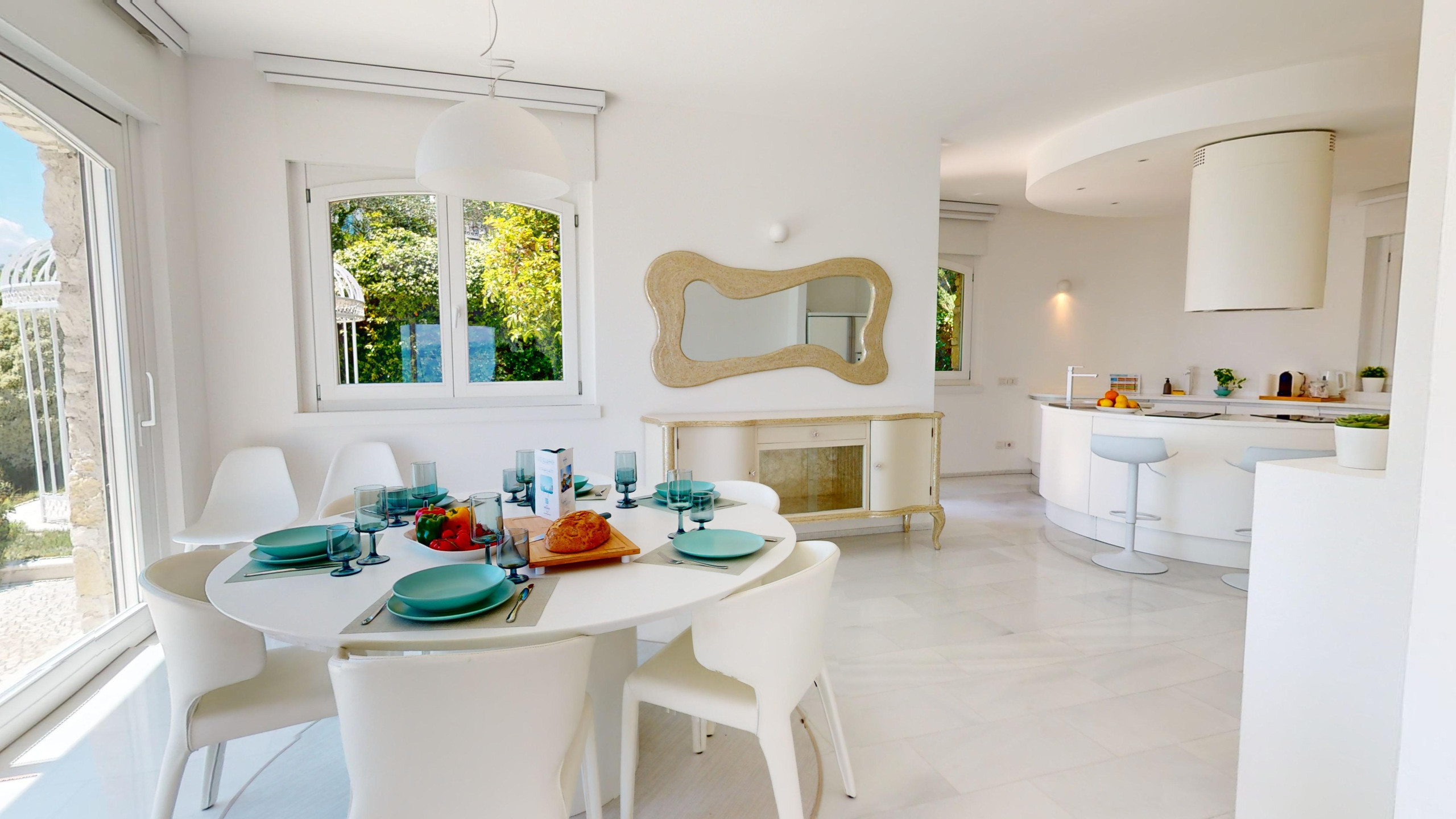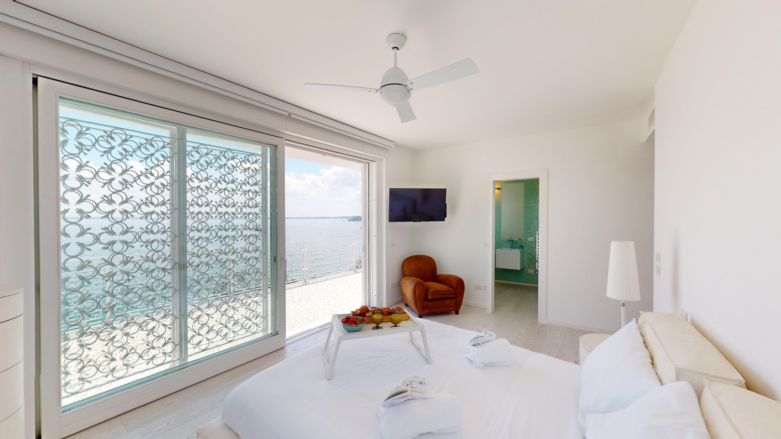 Nella splendida cornice di Manerba del Garda, appena sopra al porto di Dusano sorge Villa Flora. Entrando ci si trova in un luminoso soggiorno, da cui si gode di una vista lago totale. Le ampie porte finestre, i colori chiari delle finiture e dell'arredo e l'orientamento della casa mettono ancora più in risalto le sfumature di azzurro e di verde che il cielo e il lago regalano agli ospiti di questa dimora. Il soggiorno è diviso in una zona salotto ed una zona lettura, dalla quale si accede alla zona pranzo ed alla cucina a vista, il tutto con vista lago da ogni punto. Accedendo alla zona notte si trovano sul lato sinistro il bagno principale e un guardaroba, gli unici locali senza vista, e una camera matrimoniale con terrazzino, sul lato destro del corridoio invece troviamo una camera doppia e la master room con bagno privato e cabina armadio. L'immobile è dotato di schermi