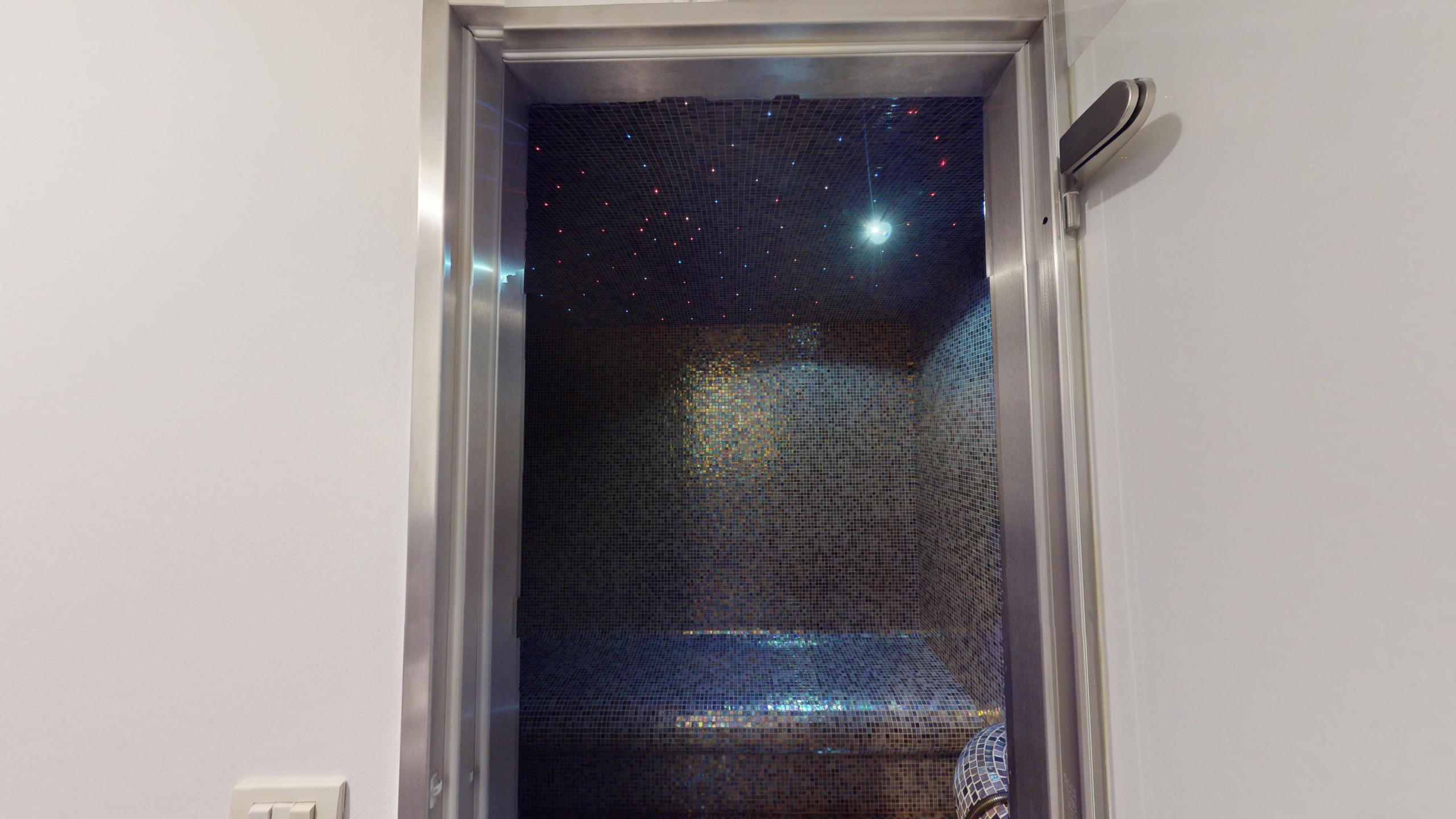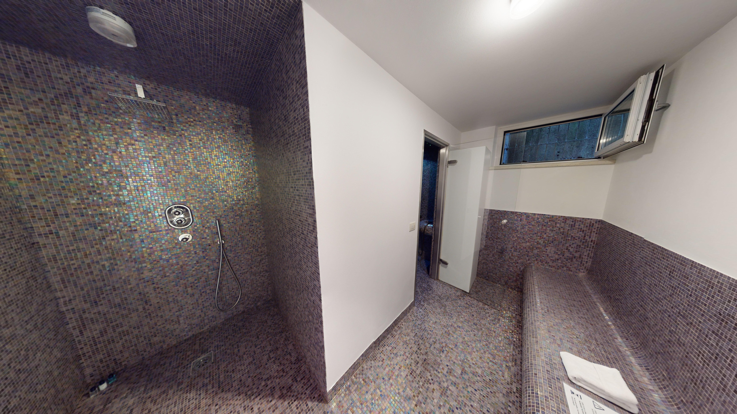 Sempre nel seminterrato, con accesso dal garage, si trovano altri due locali: una home spa con bagno turco, doccia e relax e uno studio o camera matrimoniale, anch'essa vista lago.