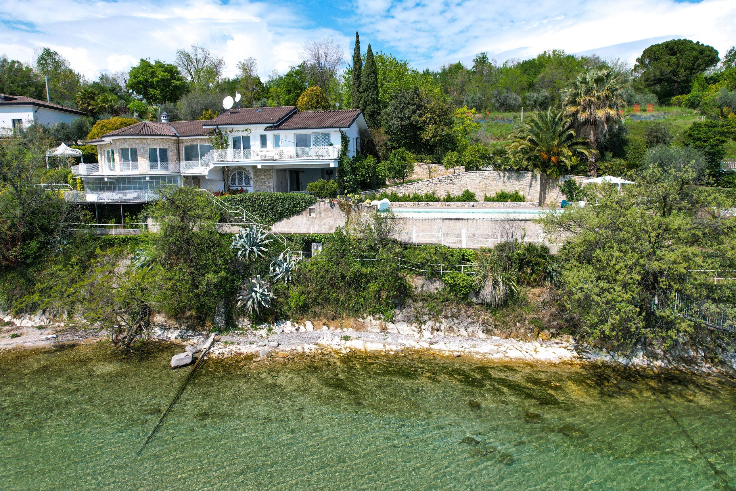 La villa dagli esterni moderni e accattivanti, è circondata da un giardino curato, con gazebo e sedute per rilassarsi e ricco di sentieri che scendono al lago, fino a delle spiaggette inaccessibili ad altri.