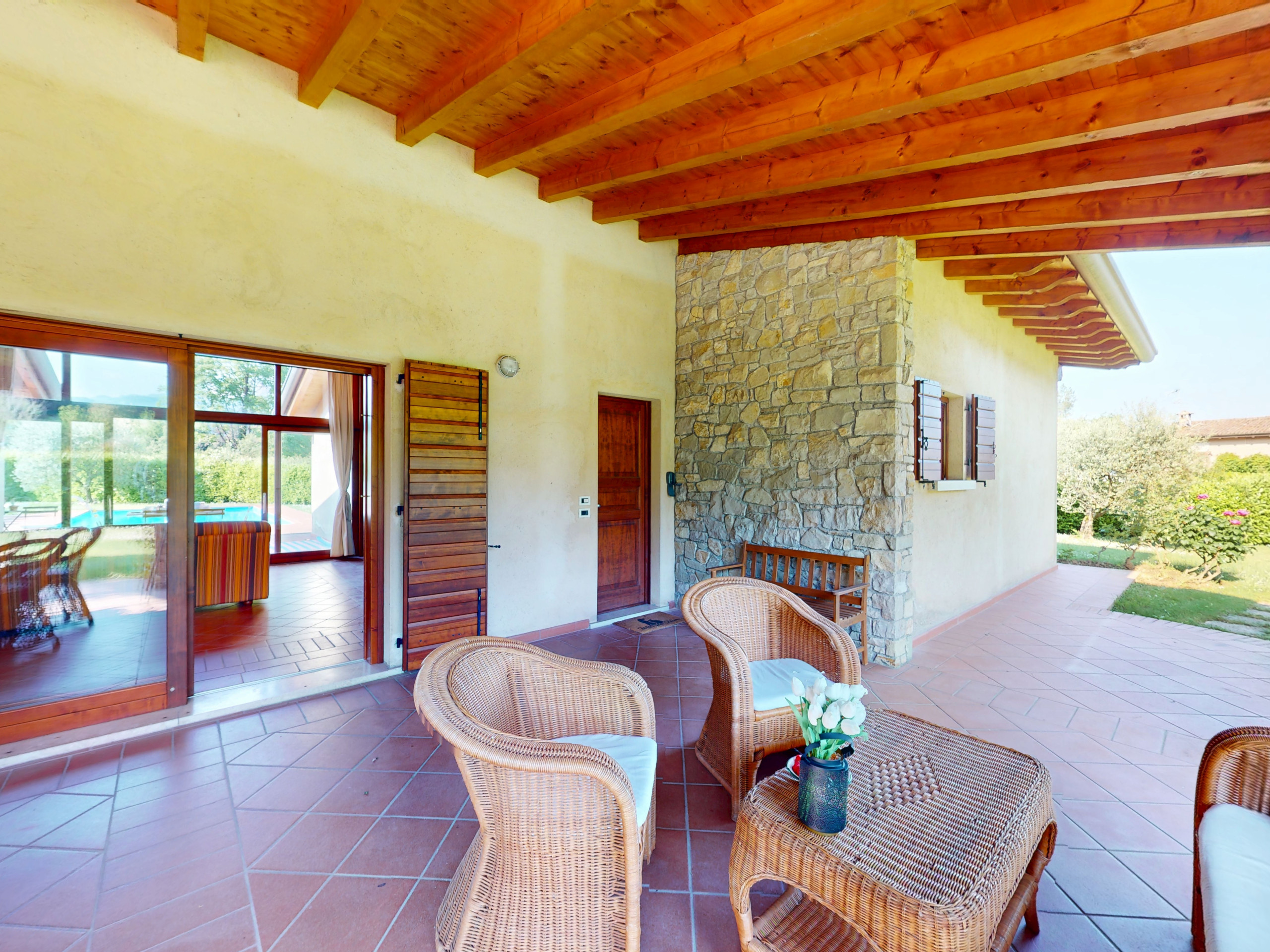 Il grande portico è un invito a rallentare: colazioni nel verde, aperitivi al tramonto, cene sotto le stelle. Intorno, un parco e una piscina privata per momenti di puro benessere.