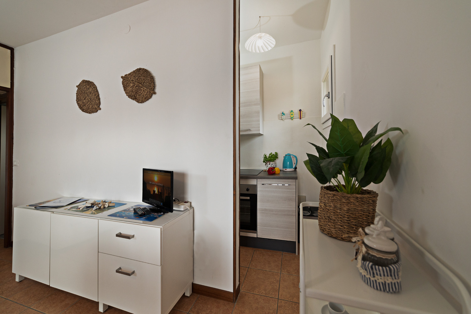Die teilweise renovierte Wohnung besteht aus einem hellen Wohnbereich mit kleiner Küche mit Induktionsherd, Kühlschrank und Gefrierschrank, Geschirrspüler, Ofen und einem Doppelbettsofa, das geeignet ist, einen Erwachsenen oder zwei Kinder zu beherbergen. Toaster, Wasserkocher, Klimaanlage, TV (ohne Satellit) und WLAN verfügbar. Elternschlafzimmer mit Kleiderschrank, Kinderzimmer mit Etagenbett. Badezimmer mit Duschkabine und Waschmaschine. Parkplatz des Wohnkomplexes verfügbar. Kleine Haustiere nach Anfrage und gegen Aufpreis erlaubt.