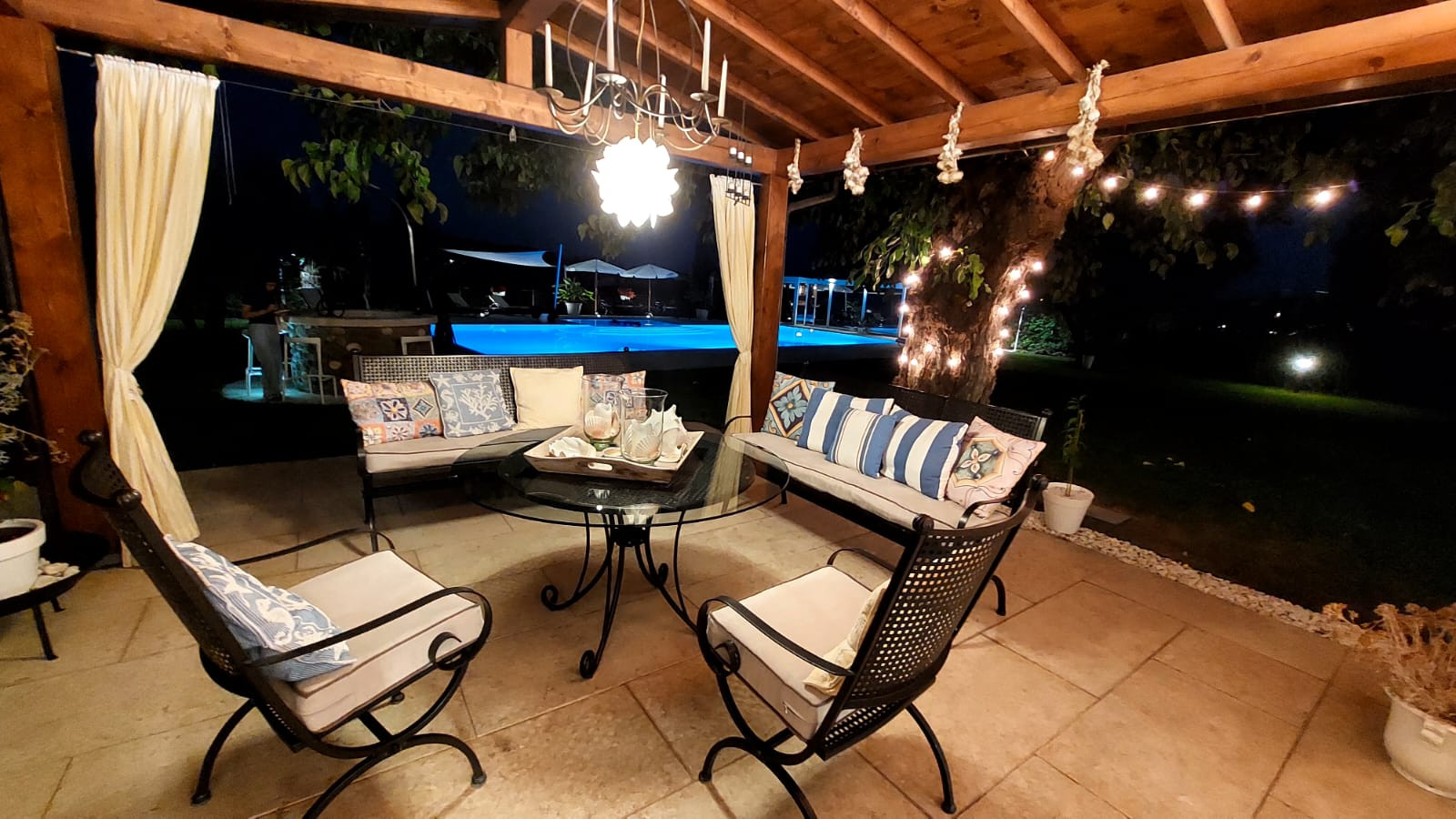 Der Garten, in jedem Detail sorgfältig gestaltet, ist eine Oase der Eleganz: stilvoll eingerichtet, enthält er einen Grill, den die Gäste nutzen können und zwischen einer Mahlzeit in der Wohnung, am Poolrand oder auf der panoramischen überdachten Terrasse wählen können.