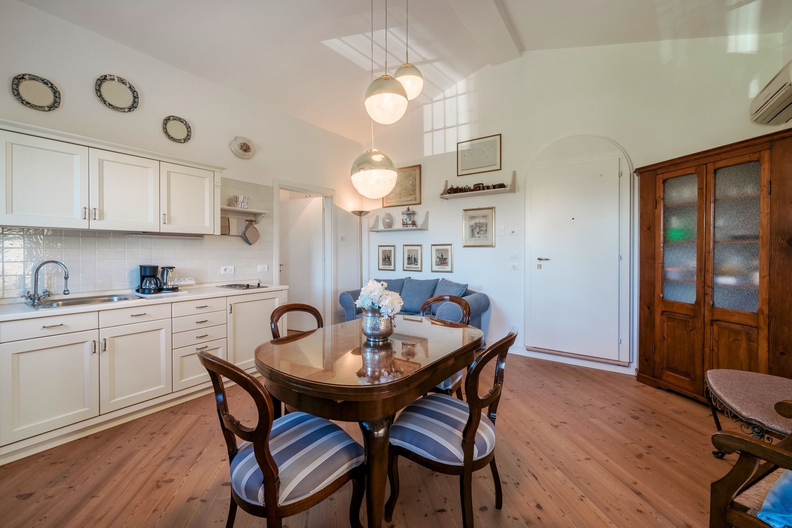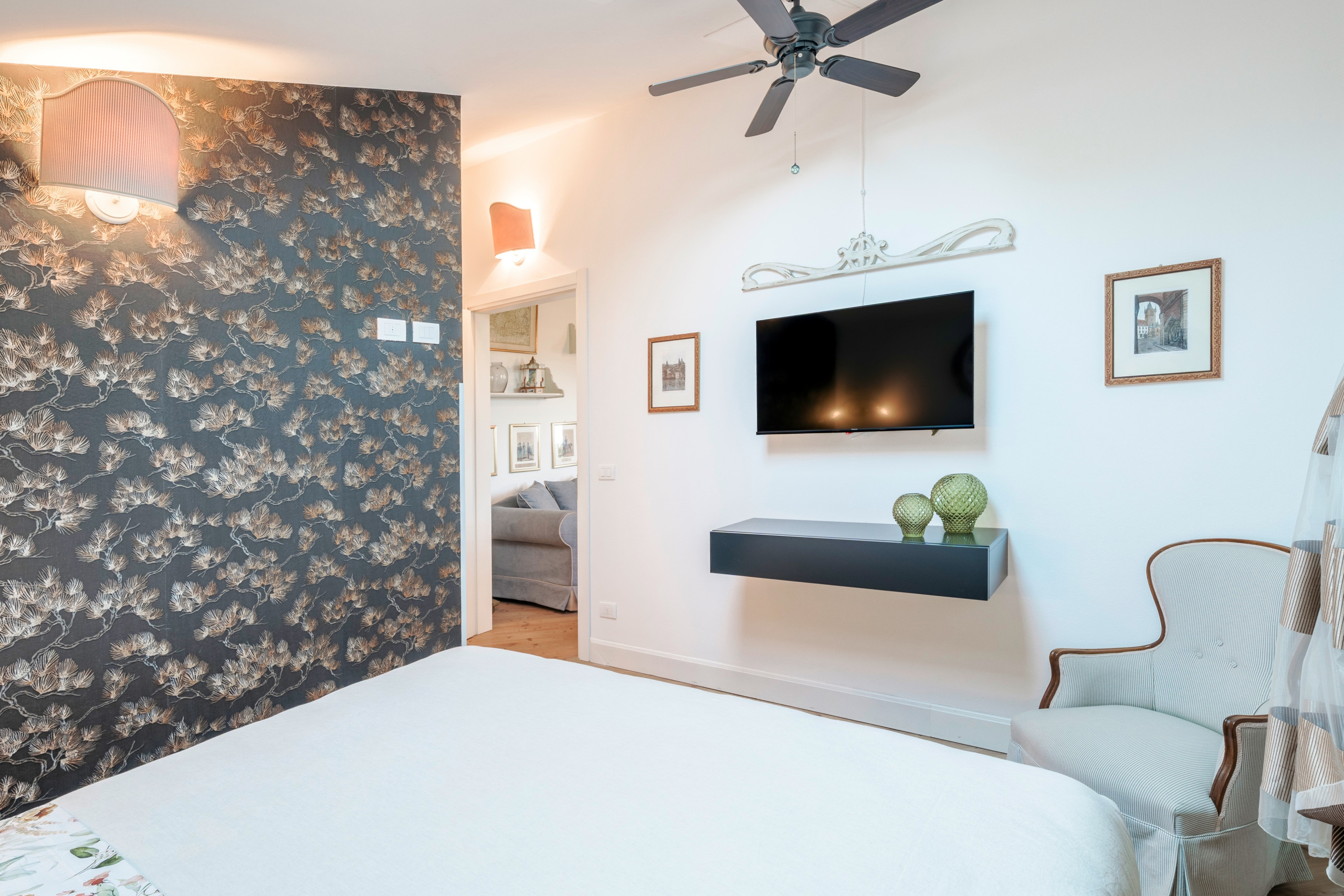 Die Gelso Luxury Family Suite ist eine raffinierte Dreizimmerwohnung von etwa 65 qm, die sich im ersten Stock einer historischen Villa befindet und darauf ausgelegt ist, 4 Gäste mit Charme zu empfangen. Die hellen und harmonischen Räume umfassen eine Küchenzeile mit Kühlschrank, kleinem Induktionsherd, Mikrowelle, Kaffeemaschine, Toaster und Wasserkocher. Das erste Schlafzimmer mit Doppelbett ist in jedem Detail sorgfältig gestaltet und verfügt über einen Fernseher und ein eigenes Badezimmer mit Dusche, WC und Waschbecken. Das zweite Schlafzimmer mit Doppelbett verfügt über einen Schreibtisch, einen Kleiderschrank und ein eigenes Badezimmer mit Dusche, WC und Waschbecken. Die beiden Schlafzimmer sind durch einen Durchgang mit Arbeitszimmer und Bibliothek voneinander getrennt. Die Dreizimmerwohnung verfügt über eine charmante überdachte Terrasse, die mit Tisch und Stühlen für wundervolle Mahlzeiten im Freien ausgestattet ist. Zusätzlich bietet sie Klimaanlage, WLAN, Satelliten-TV und einen reservierten Parkplatz auf dem Grundstück.