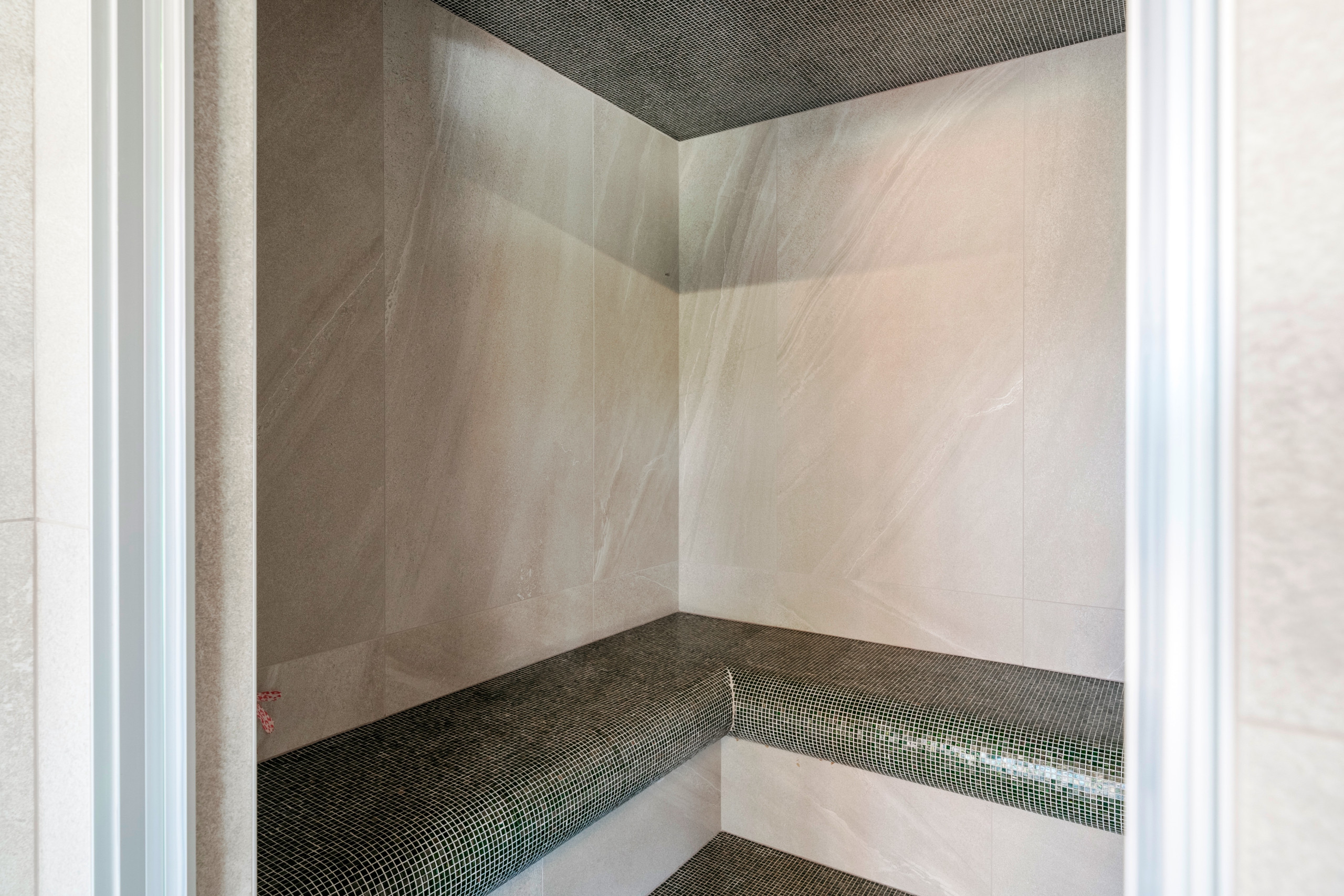 Das Herzstück der Residenz ist der prächtige 17 Meter lange Swimmingpool, der durch Whirlpool und eine Bartheke aufgewertet wird und ideal für Momente der Entspannung oder zum Frühstücken im Freien ist. Daneben befindet sich ein elegantes Badezimmer mit Dusche und Umkleidekabine, das zusätzliche Praktikabilität bietet.