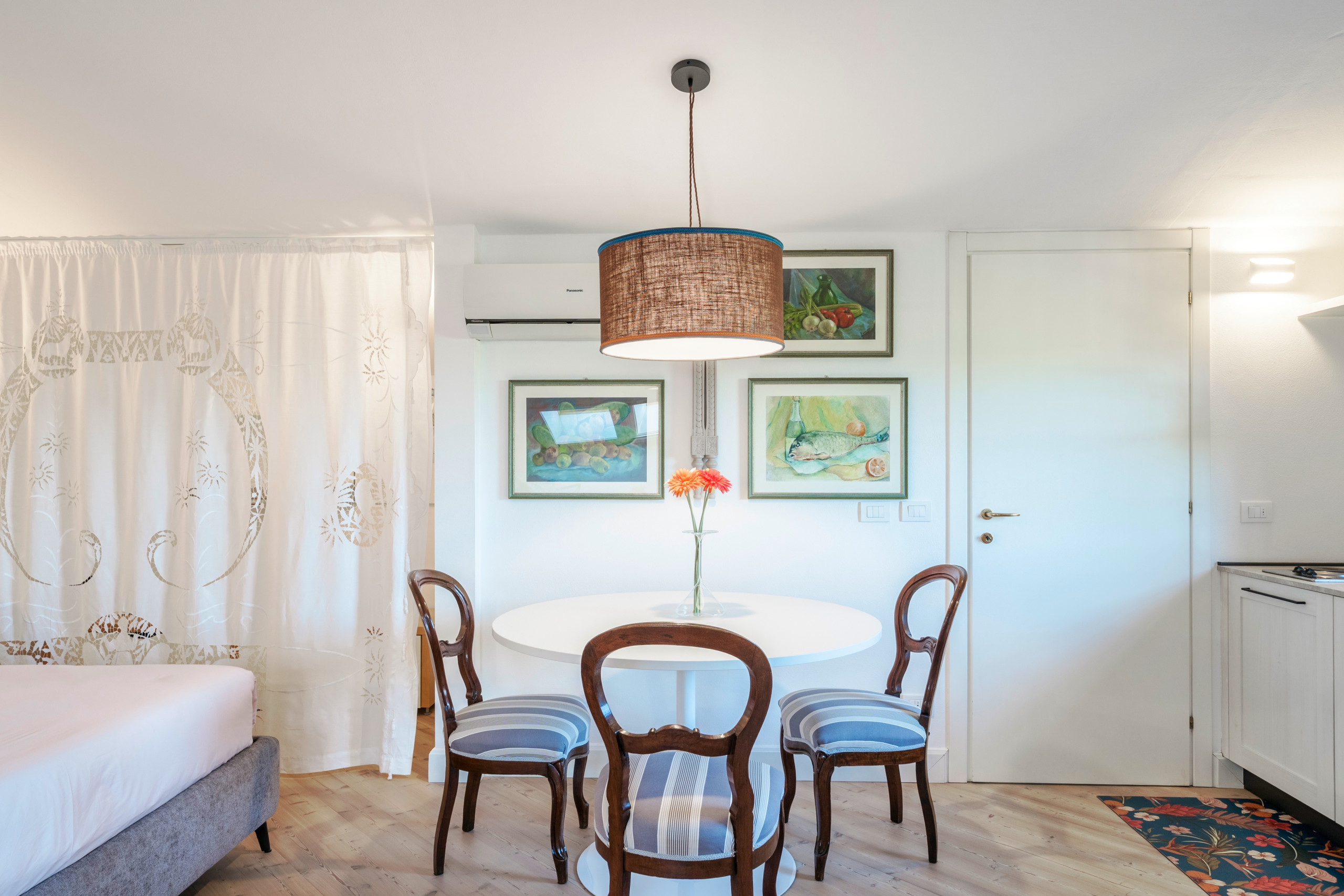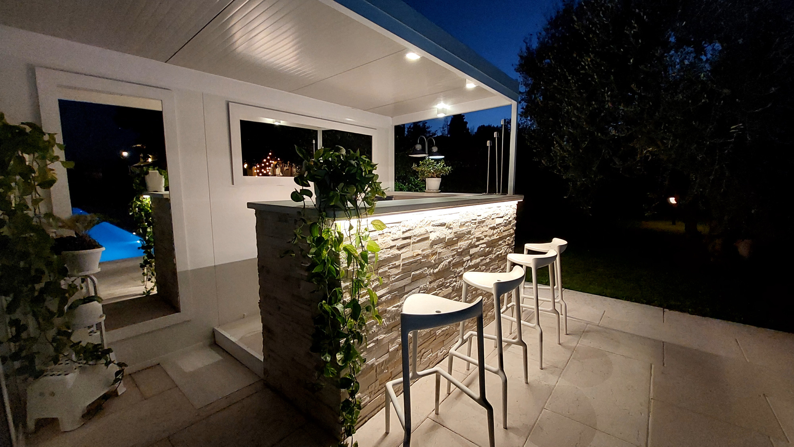 Der in jedem Detail gepflegte Garten ist eine Oase der Eleganz: stilvoll eingerichtet, enthält er einen Grill, den die Gäste nutzen können und zwischen Abendessen im Apartment, am Poolrand oder auf der panoramischen überdachten Terrasse wählen können.