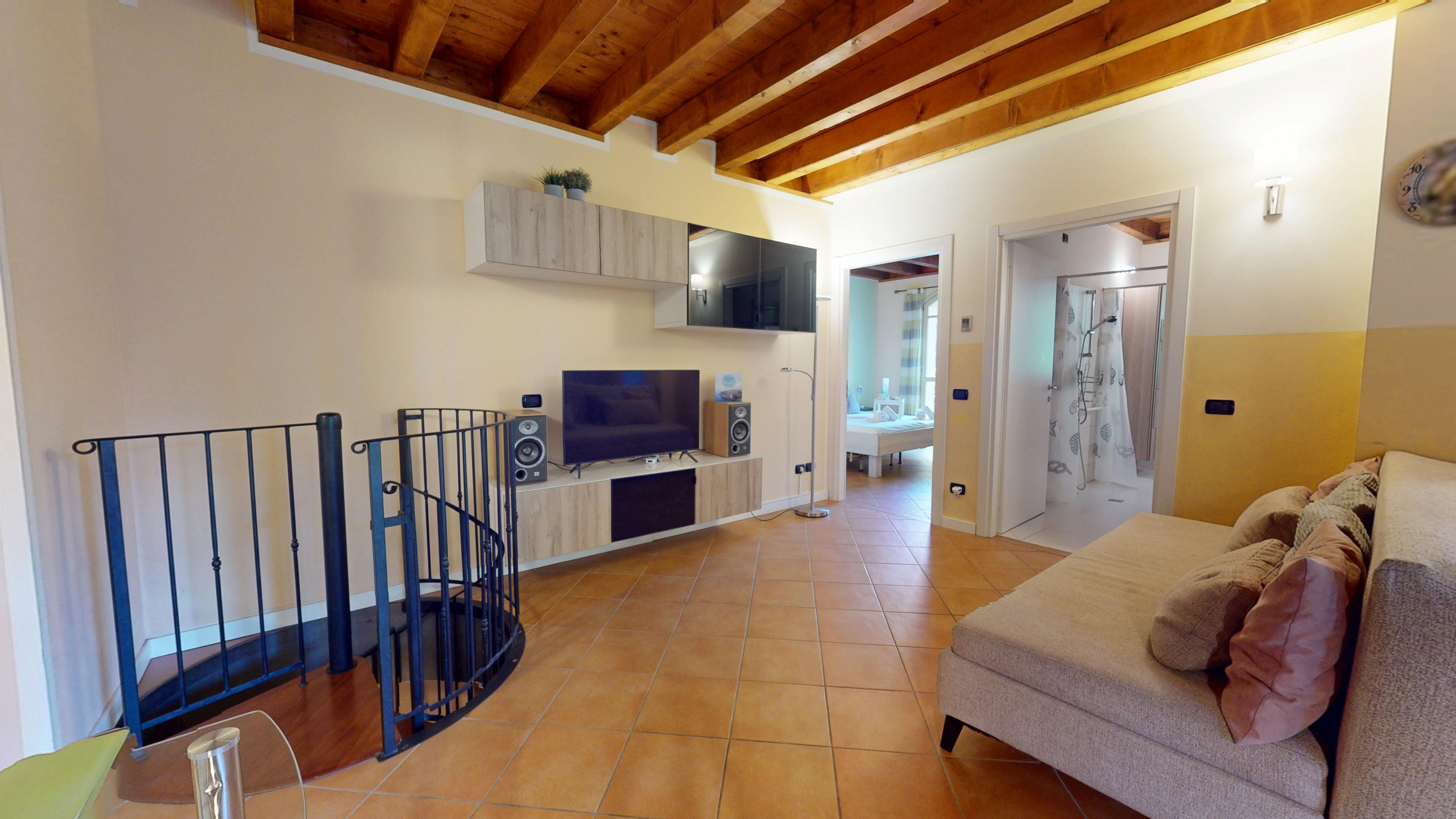 Die Lage ist einfach hervorragend: nur 500 Meter vom Gardasee entfernt und in der Nähe zahlreicher Einrichtungen, darunter ein Lidl-Supermarkt und eine Bushaltestelle. Die Unterkunft befindet sich in einer idealen Zone für Familien, mit einfachem Zugang zu Attraktionen wie Gardaland, Caneva World und Movieland, alle etwa 30 km entfernt.