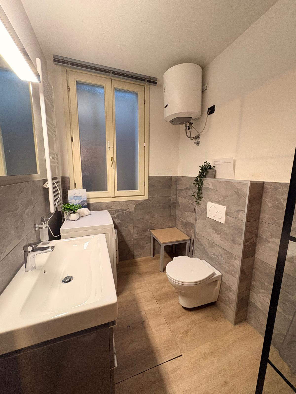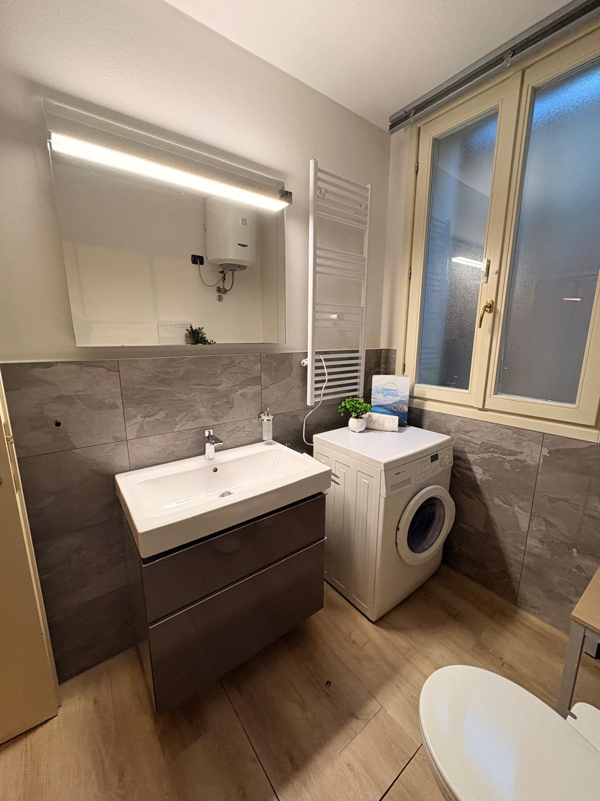 Die Gäste können zahlreiche Annehmlichkeiten genießen, darunter Klimaanlage, Wärmepumpenheizung, kostenloses WLAN und eine praktische private Garage. Die Wohnung verfügt außerdem über einen Außengarten mit Gartenmöbeln, der perfekt für Momente der Entspannung ist.