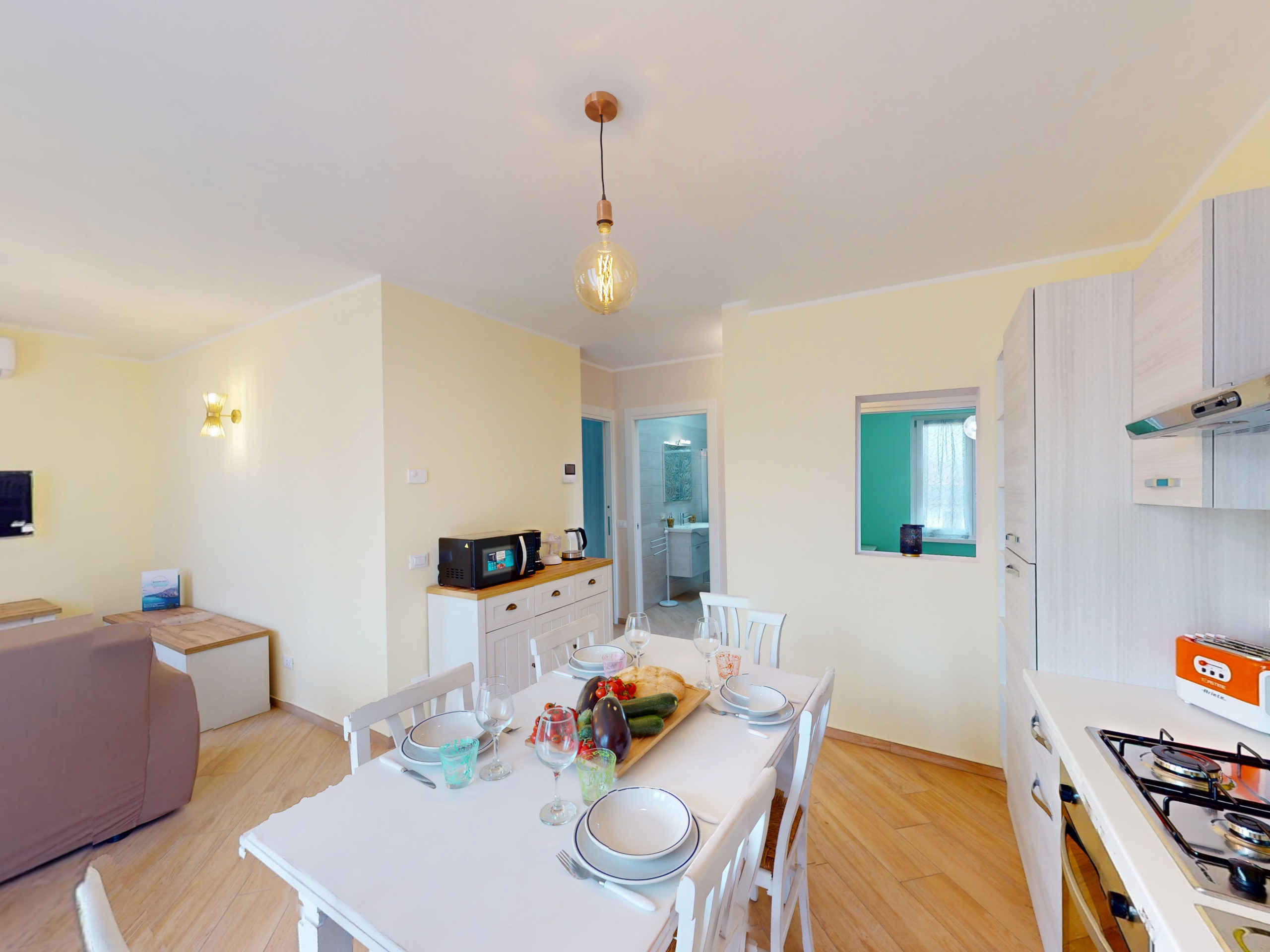 Der Balkon ist der perfekte Ort, um die Stille der umgebenden Natur zu genießen, ideal für ein Frühstück im Freien oder einen Aperitif bei Sonnenuntergang. Die Wohnung, geschmackvoll eingerichtet und darauf ausgelegt, maximale Entspannung zu gewährleisten, ist perfekt für Paare, Familien oder kleine Gruppen, die die Gegend erkunden oder einfach etwas Ruhe in einem natürlichen Umfeld genießen möchten.