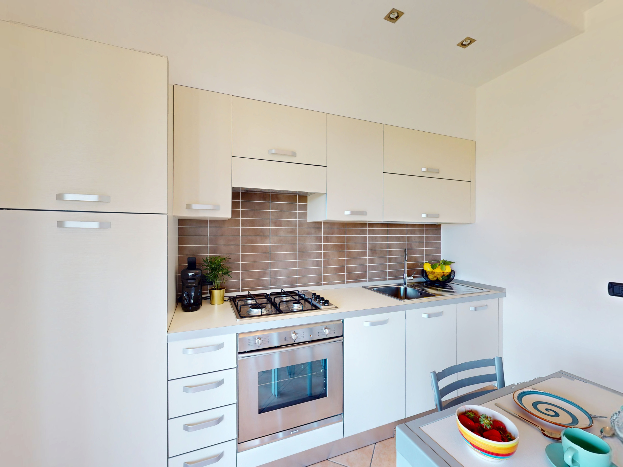 Geräumig, einladend und perfekt ausgestattet, öffnet sich die Wohnung zu einem hellen Wohnbereich.