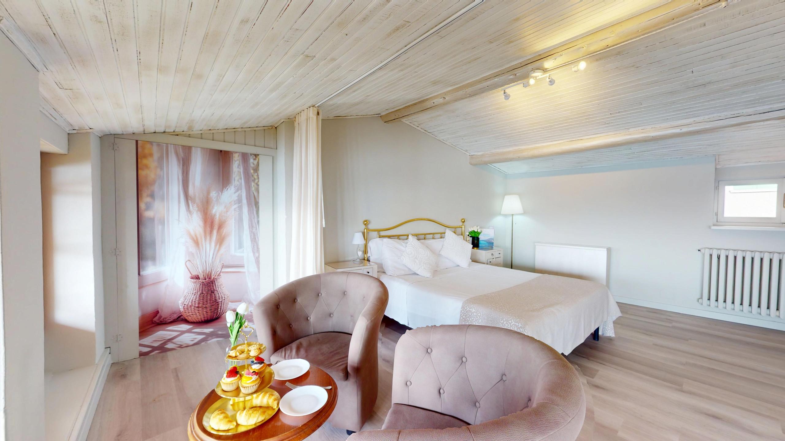 The view from the terrace really can’t be beat! The decor is basic but the rooms are spacious and comfortable and the sweeping views more than make up for it. The road up the hill to the property is narrow, but it’s worth the drive up to get to the view over the lake. The town of Salo was lively when we visited in July with lots of cafes and restaurants along the waterfront. Would definitely go back!