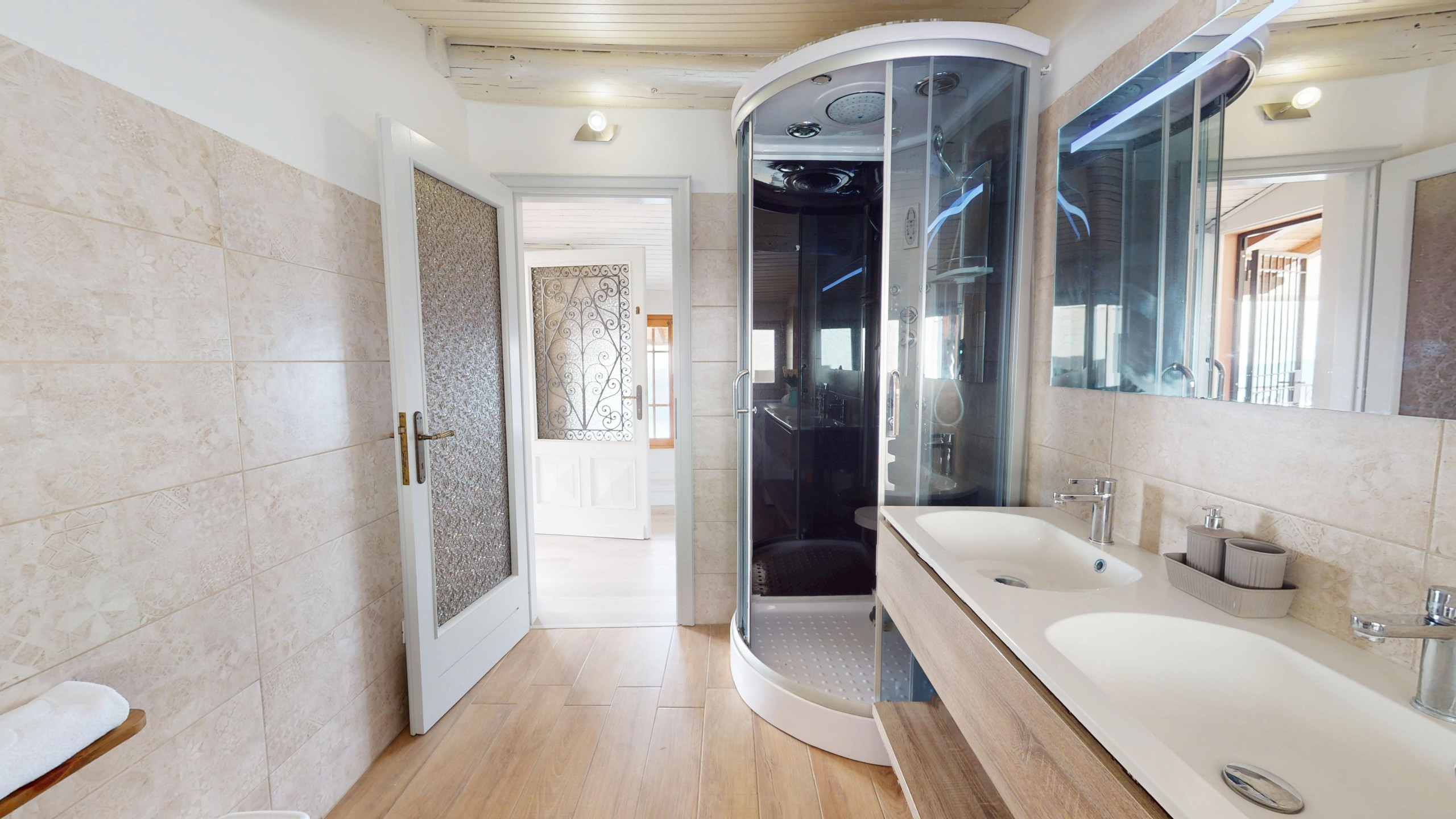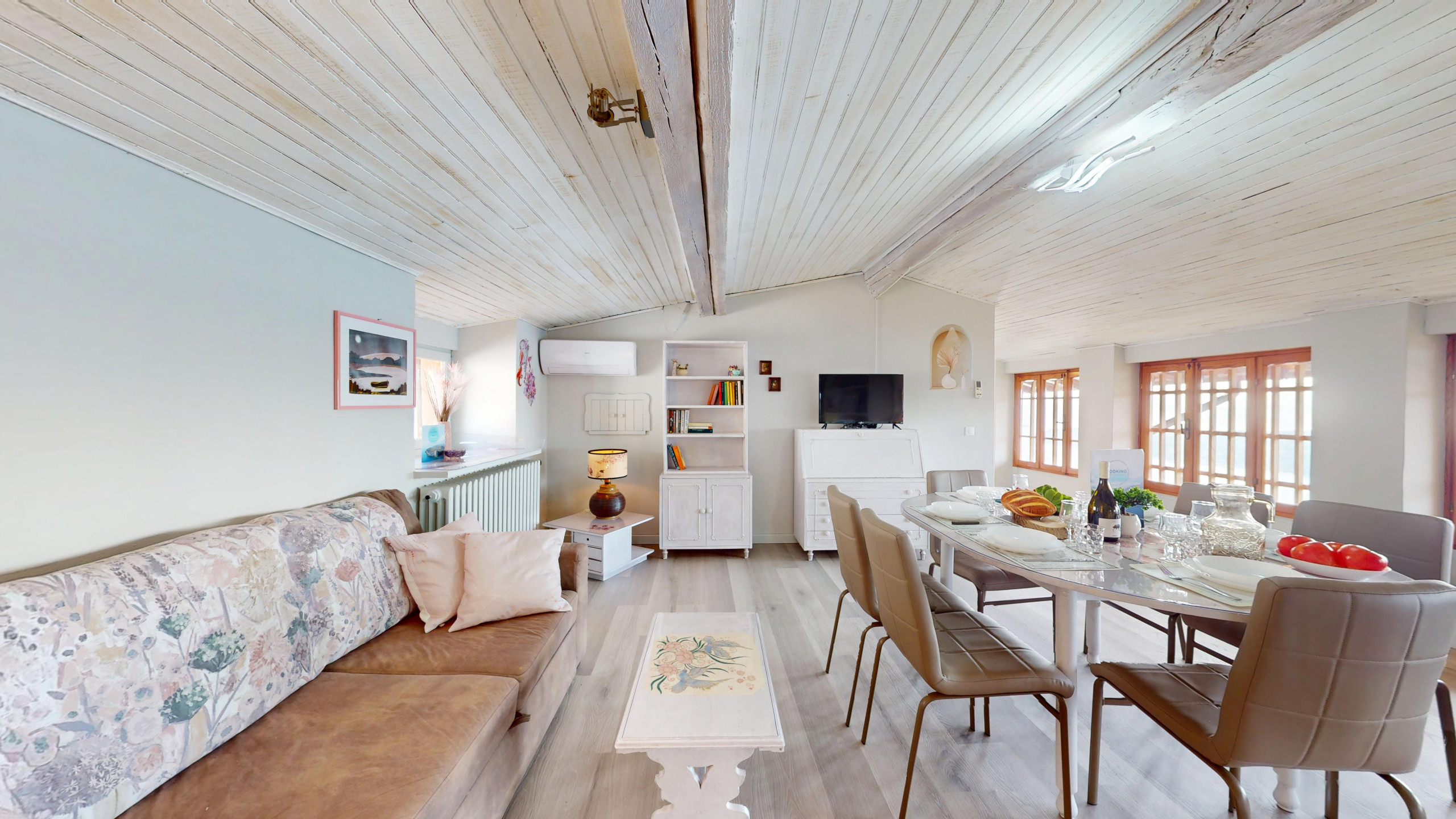 Die voll ausgestattete Küche ist ein echter Pluspunkt, ausgestattet mit allen modernen Annehmlichkeiten: Kühlschrank, Gefrierschrank, Waschmaschine, Kaffeemaschine, Ofen, Geschirrspüler und eine Reihe von Haushaltsgeräten, die Ihren Aufenthalt praktisch und angenehm machen werden. Der Küchenbereich im amerikanischen Stil fördert die Sozialisierung und das gemeinsame Essen.