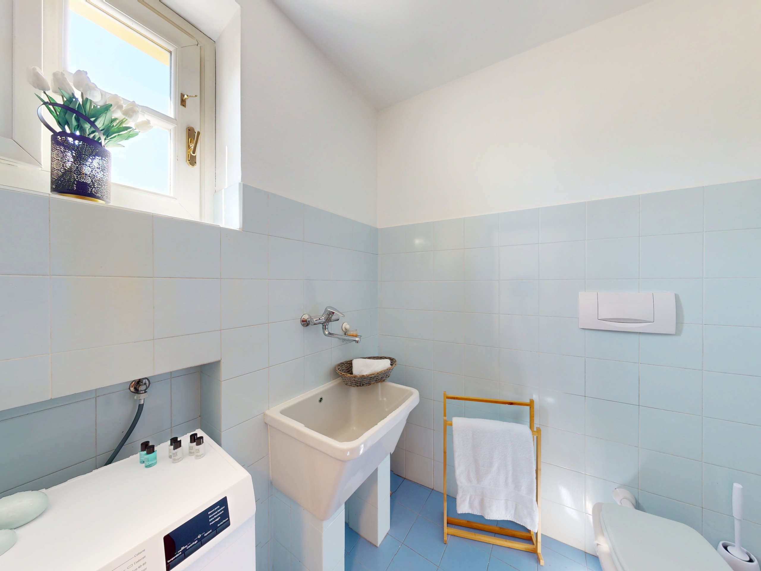 Auf dieser Etage befindet sich auch ein praktisches Badezimmer mit Waschmaschine.