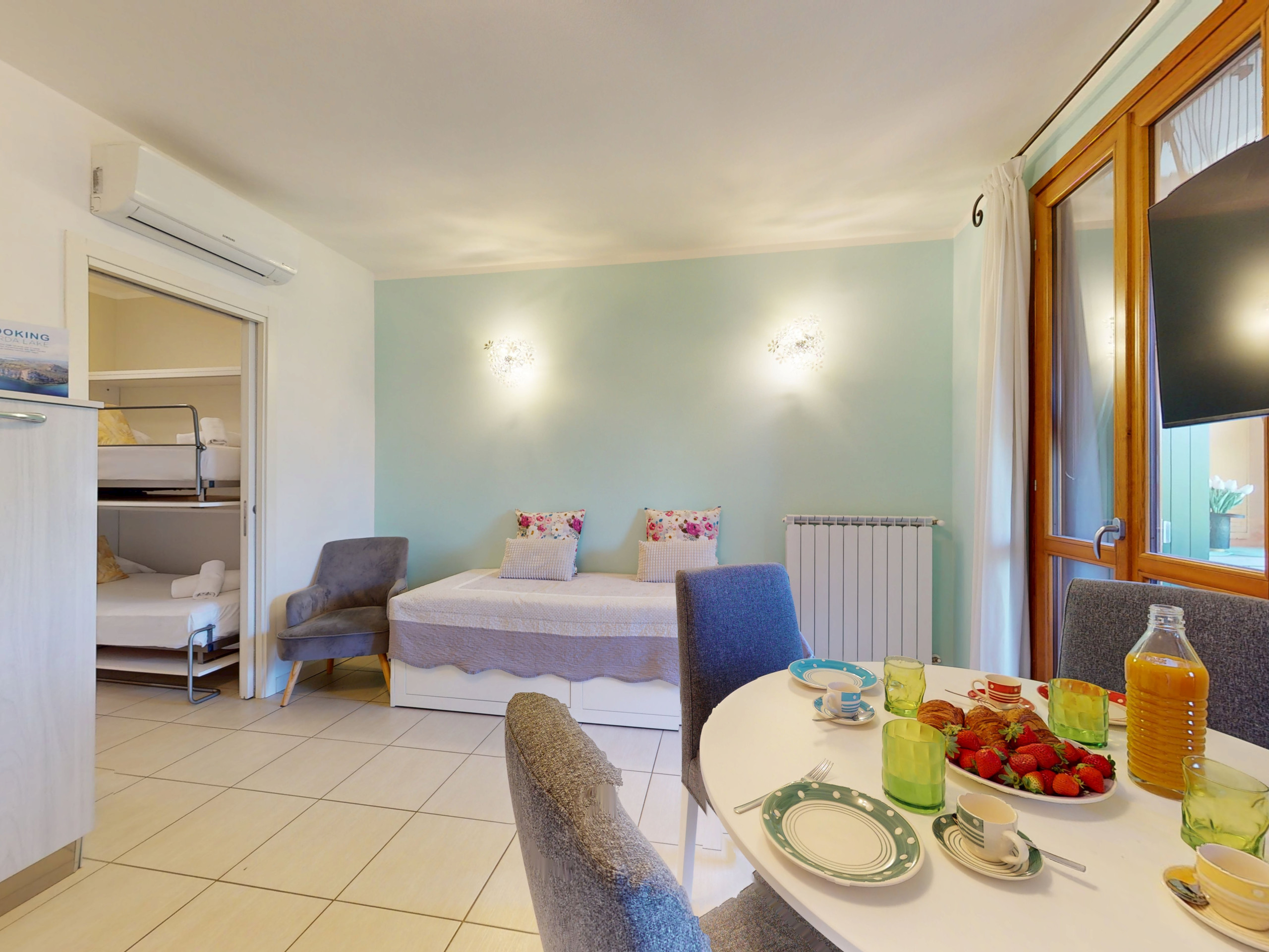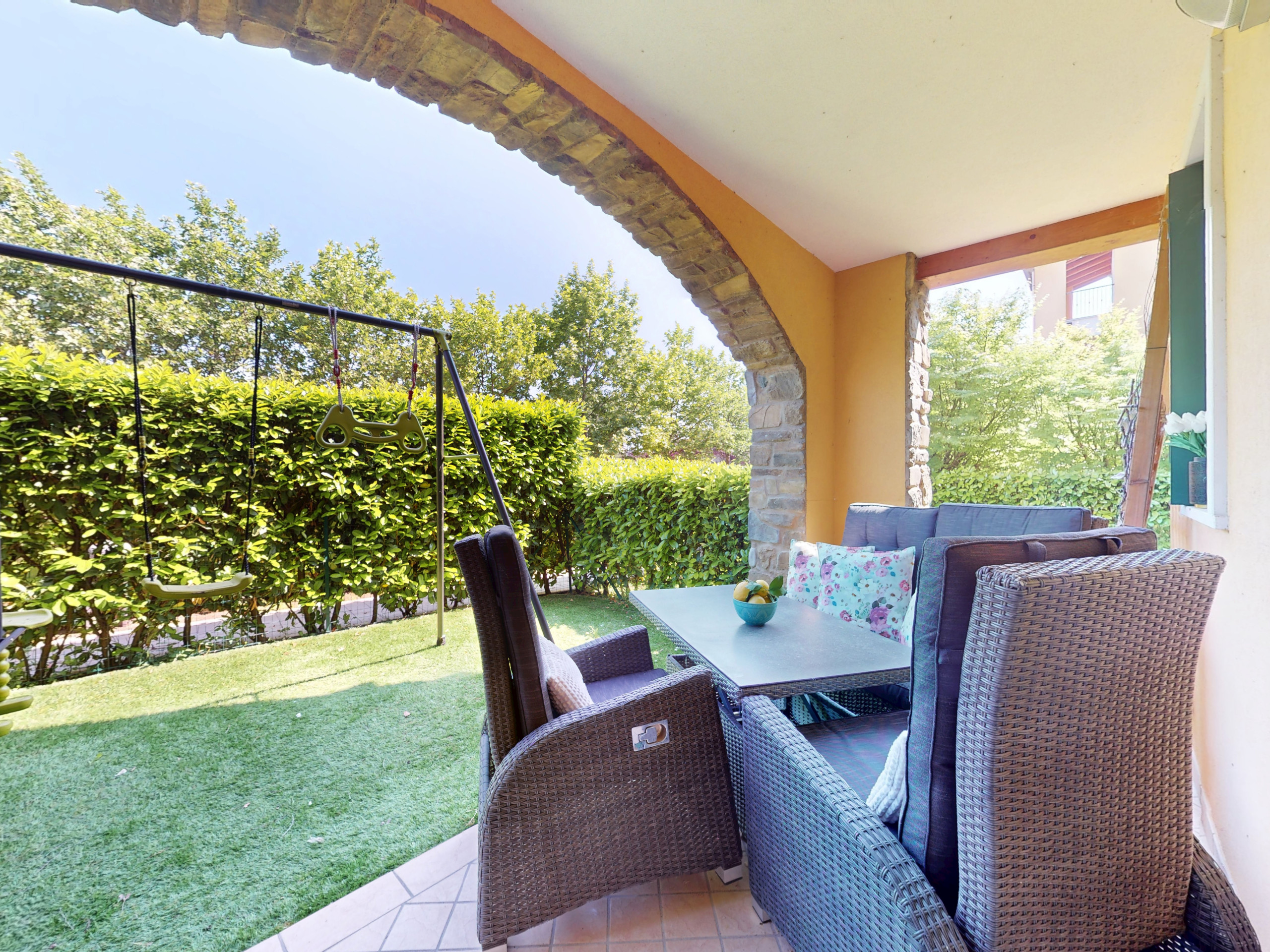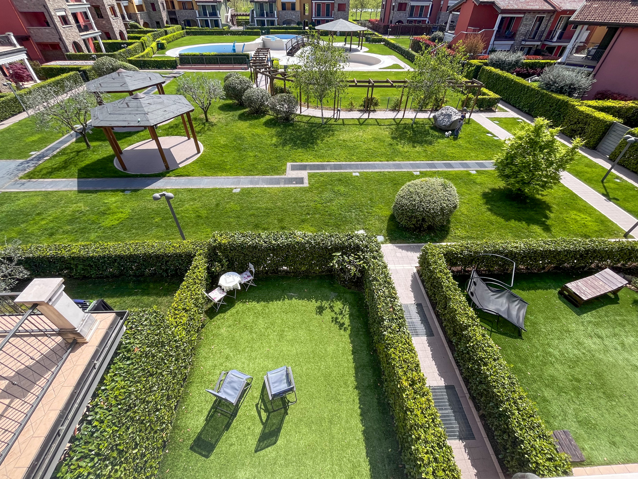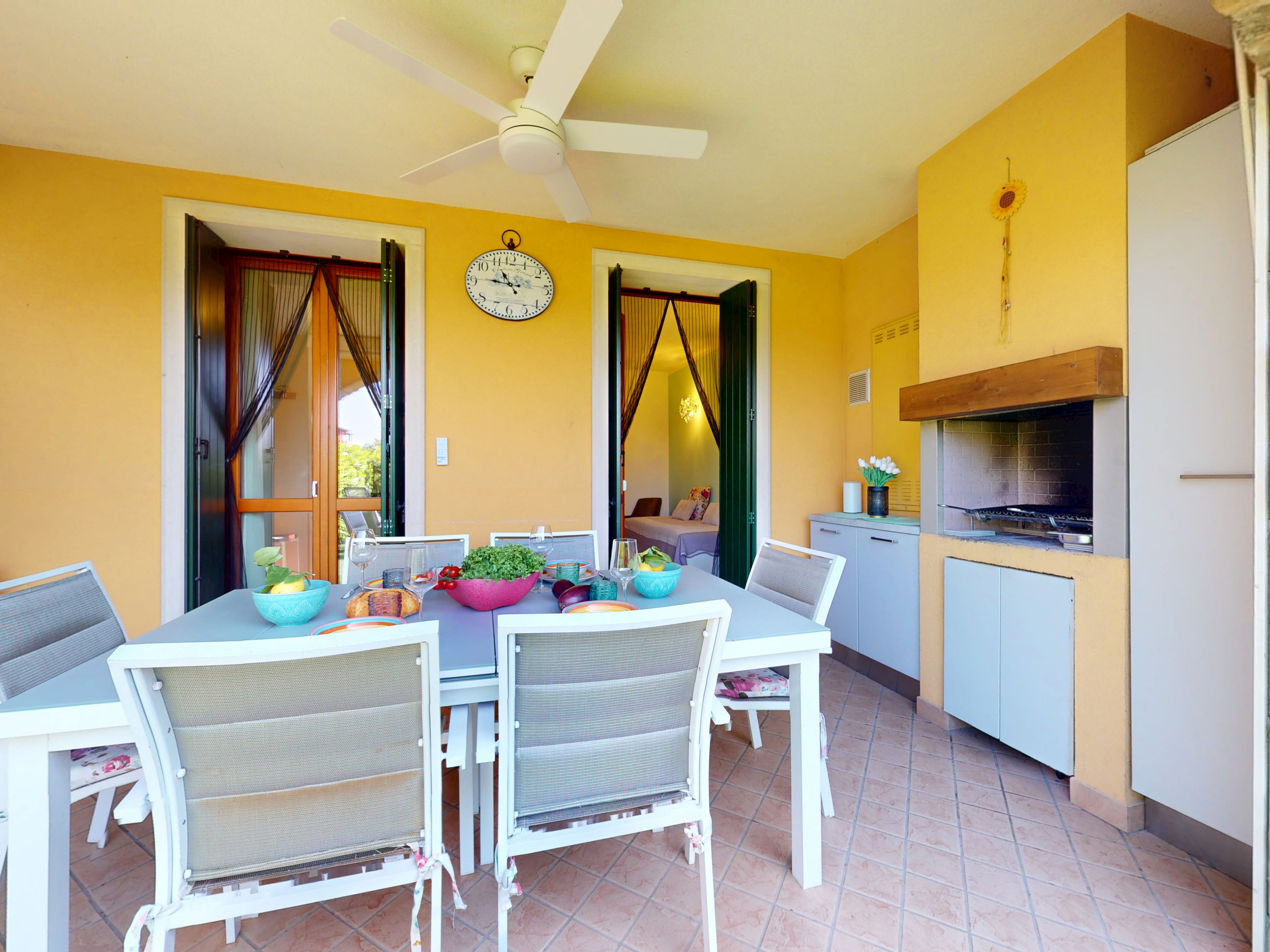 Die Wohnung mit zwei Terrassen und Barbecue-Kamin im Residence mit Schwimmbad befindet sich etwa 350 Meter vom See entfernt und weniger als einen Kilometer von der bezaubernden Stadt Sirmione.