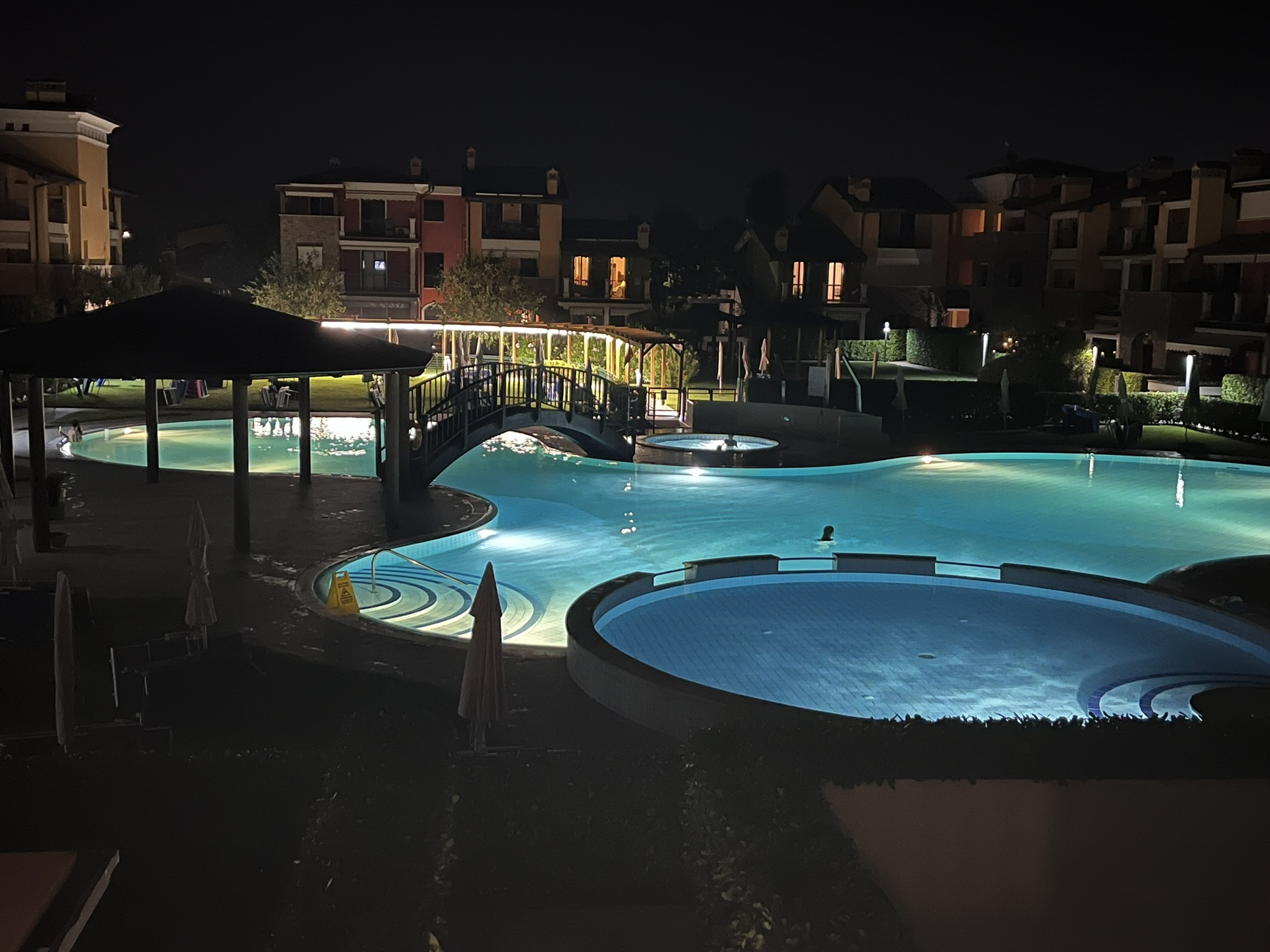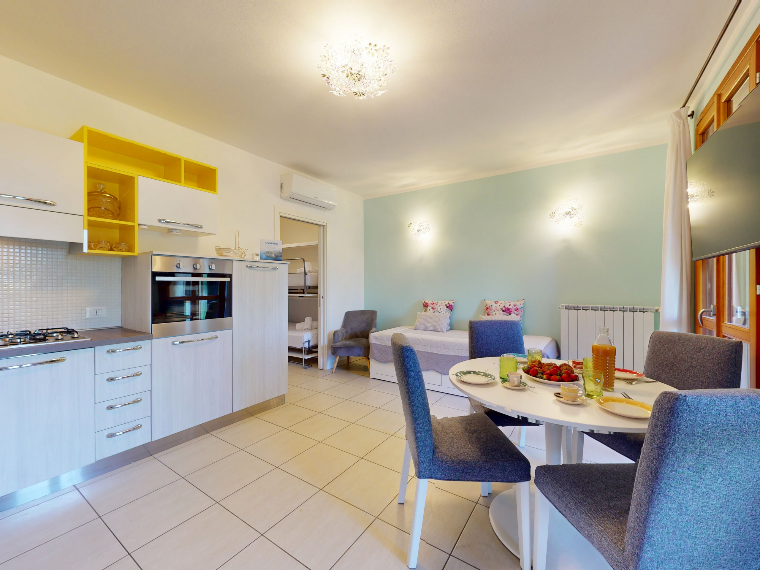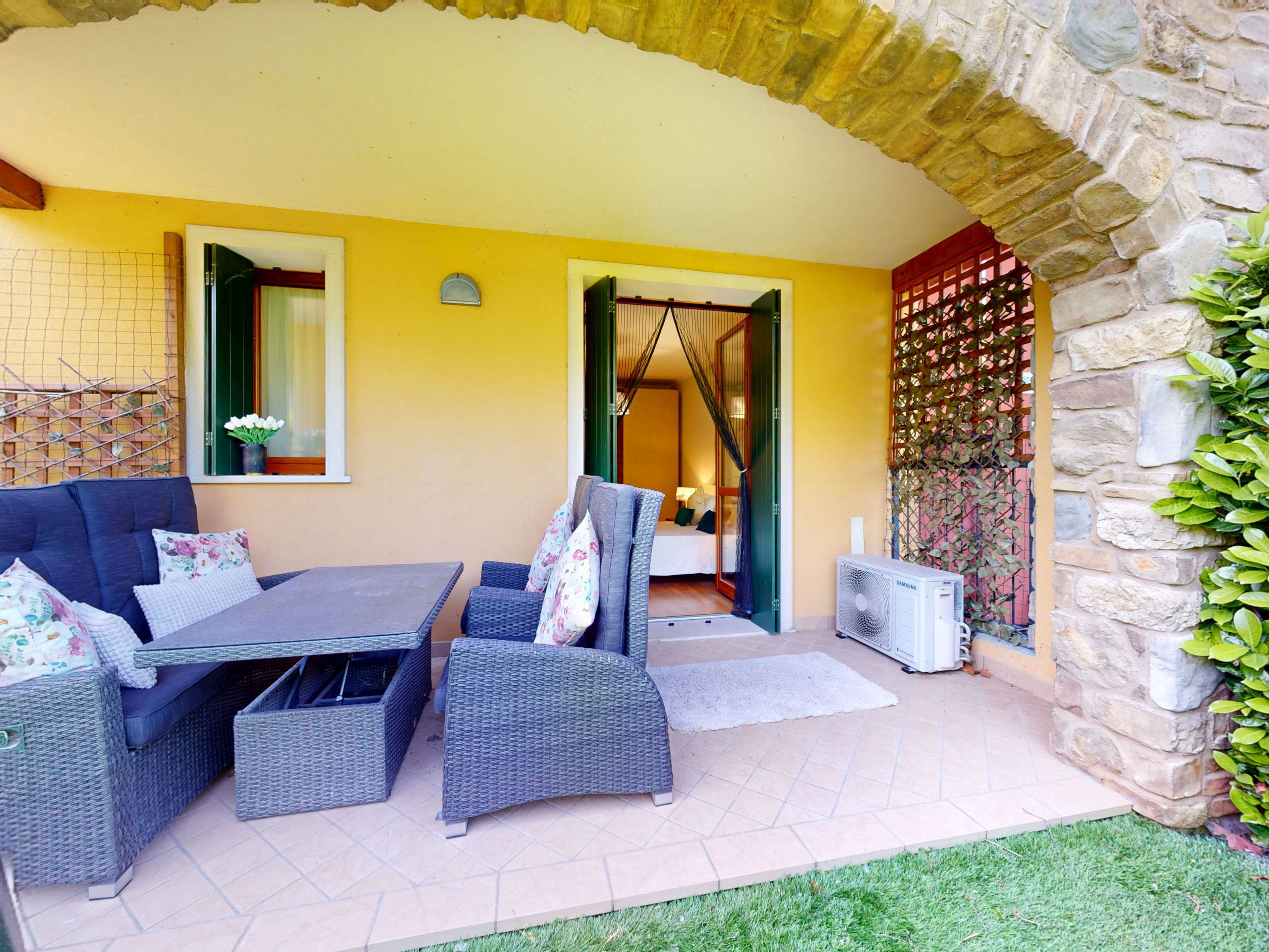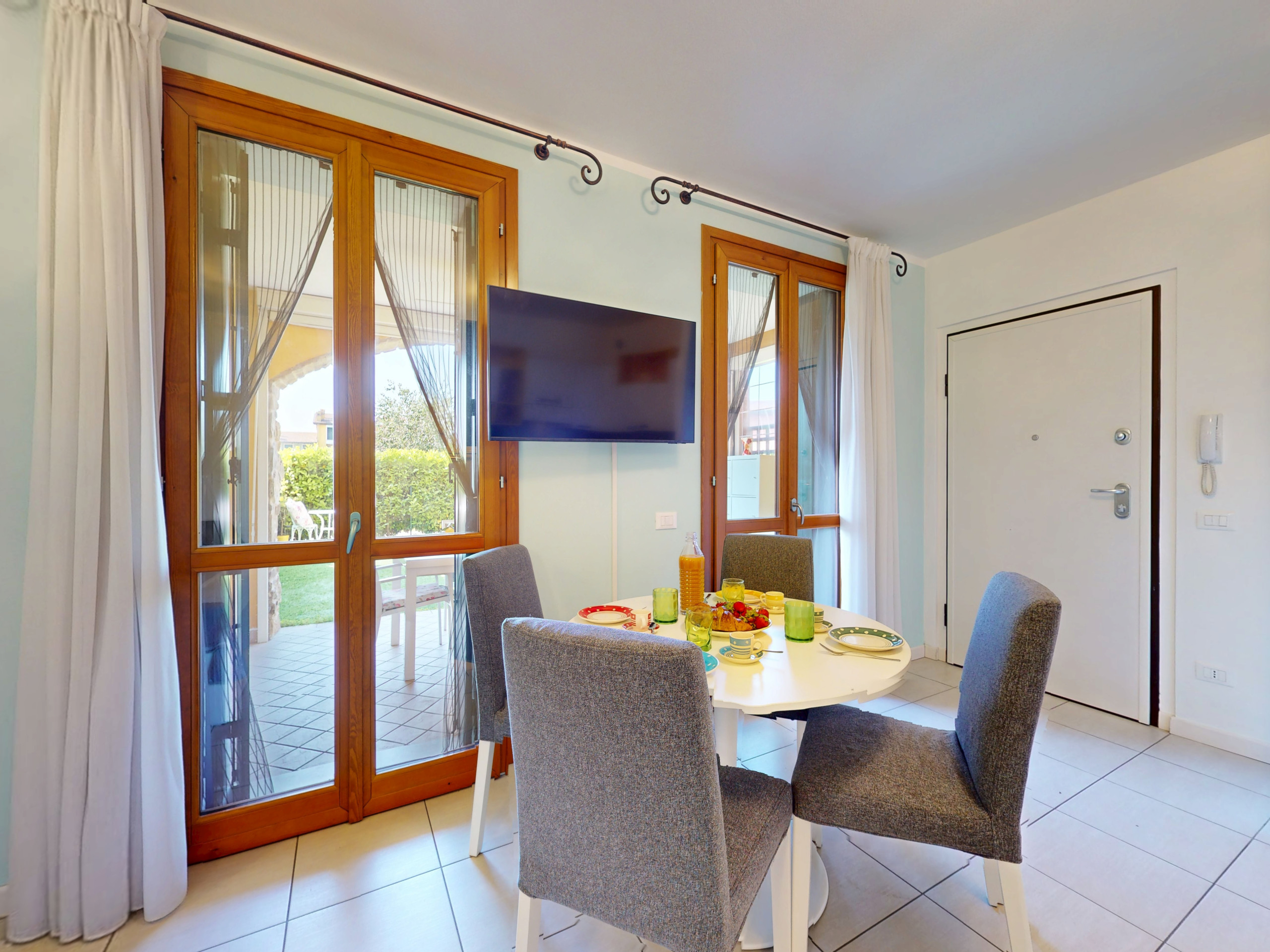 Die Wohnung liegt in einer sehr ruhigen Residence. Es sind überwiegend die italienischen Eigentümer die hier Urlaub machen, dadurch ist es sehr ruhig. Mit Hund ideal, da ein kleiner Garten vorne und hinten raus ist. Der Rasen ist ein Kunstrasen.