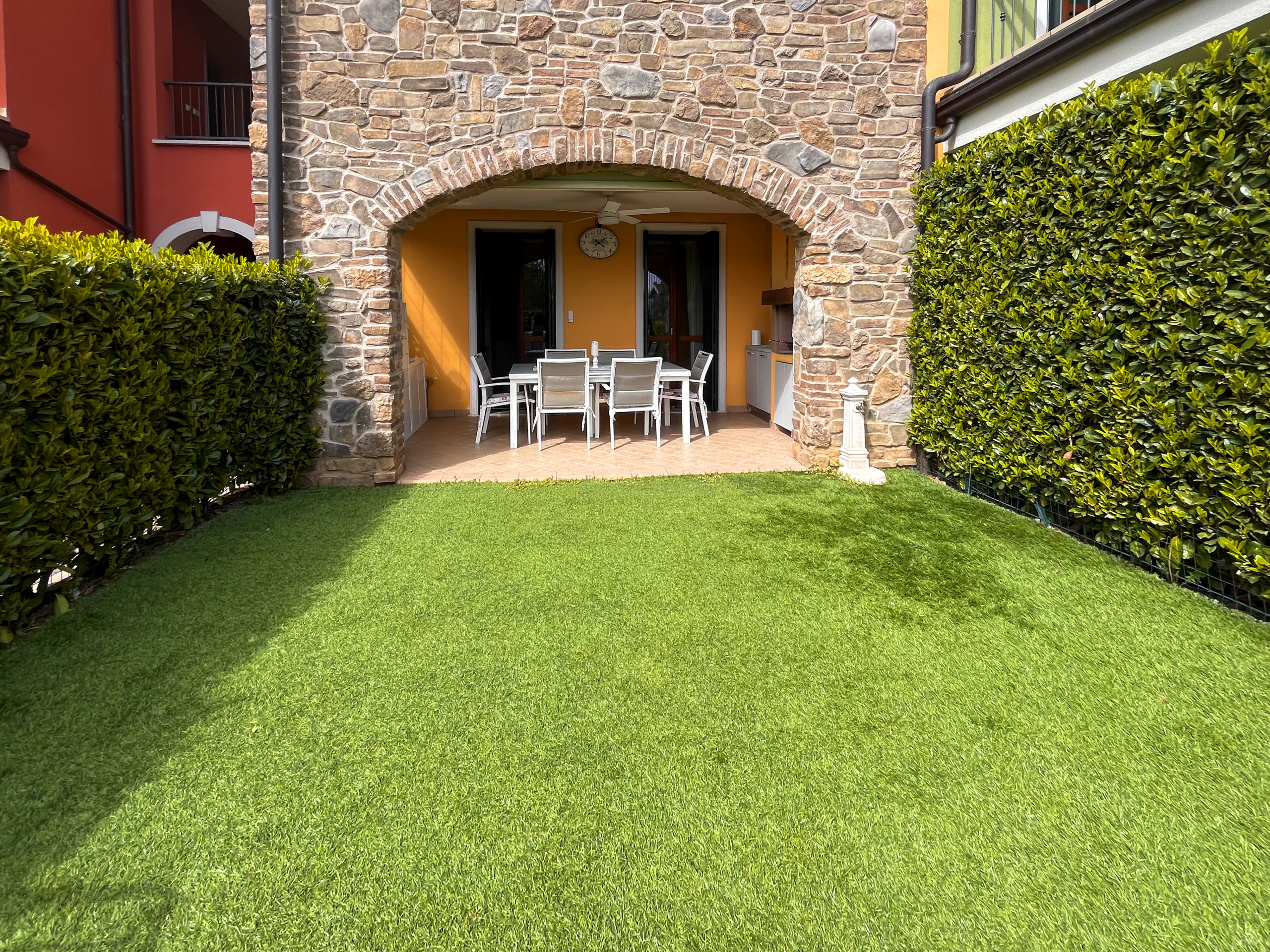 Die auf drei Seiten freistehende Wohnung verfügt über zwei Terrassen und einen Grillkamin in einer Wohnanlage mit Pool, sie befindet sich nur 400 Meter vom See und weniger als einen Kilometer von der bezaubernden Stadt Sirmione entfernt.