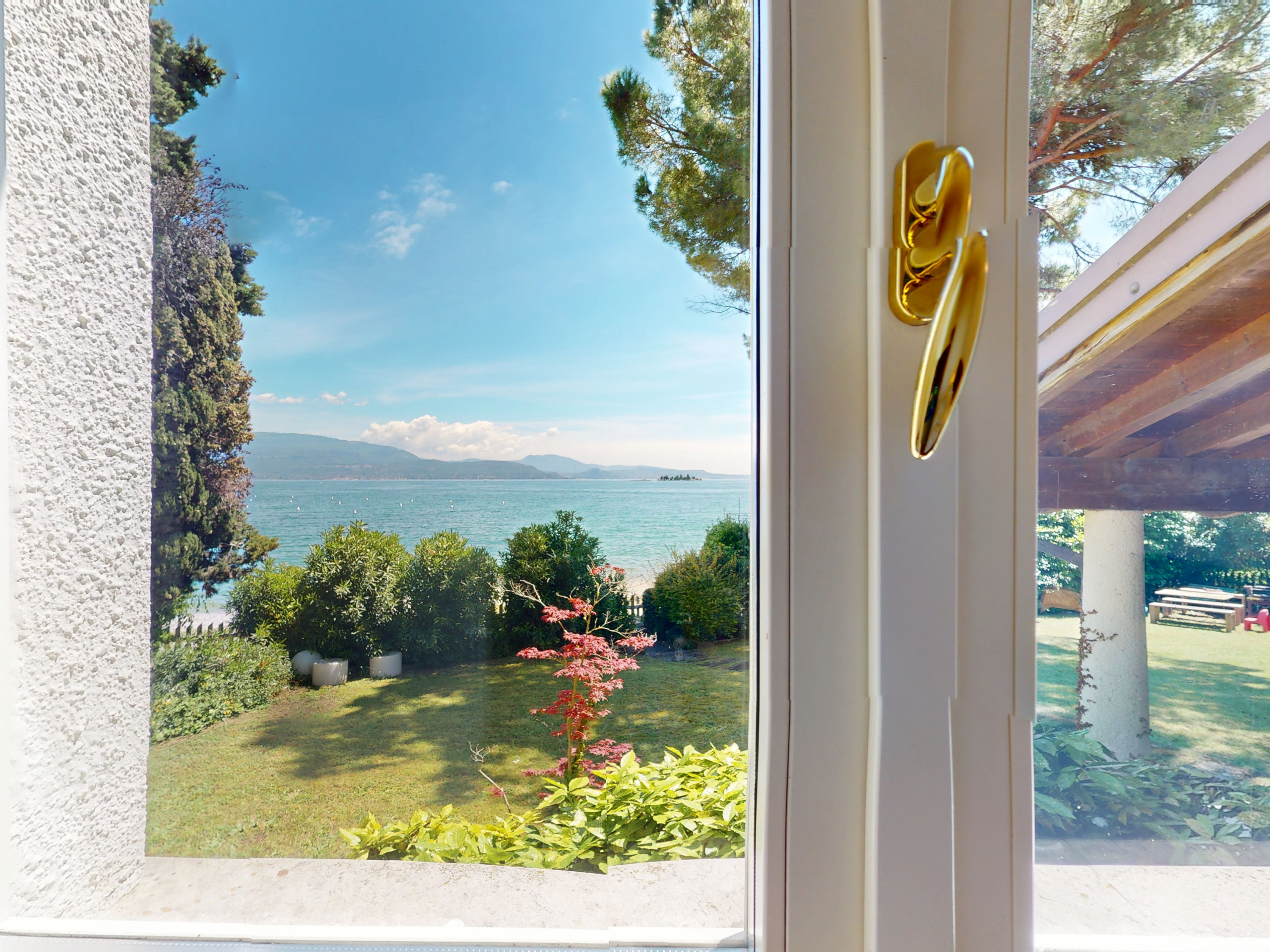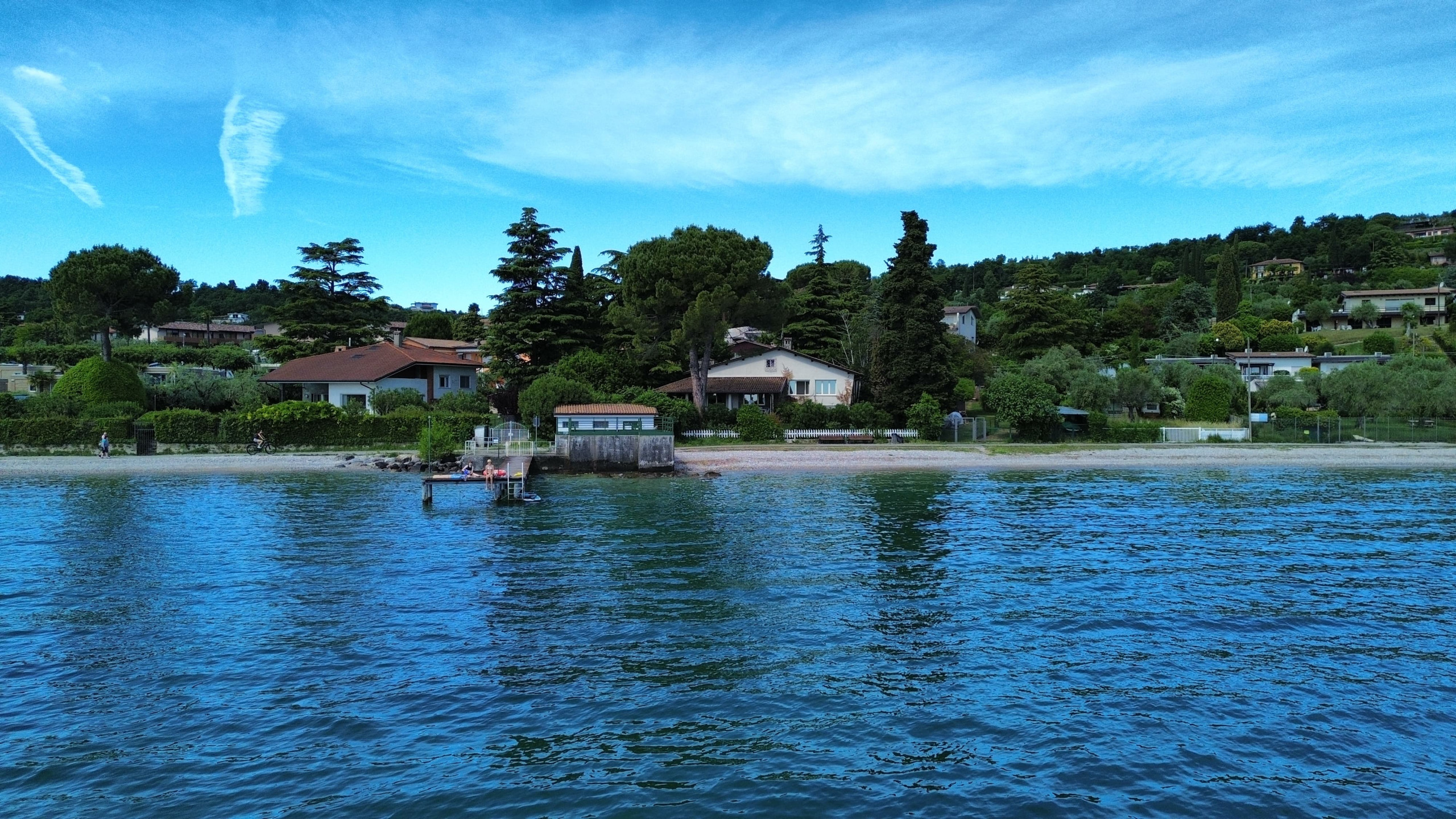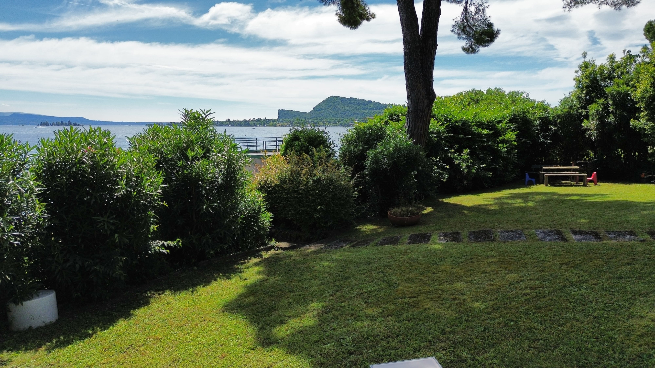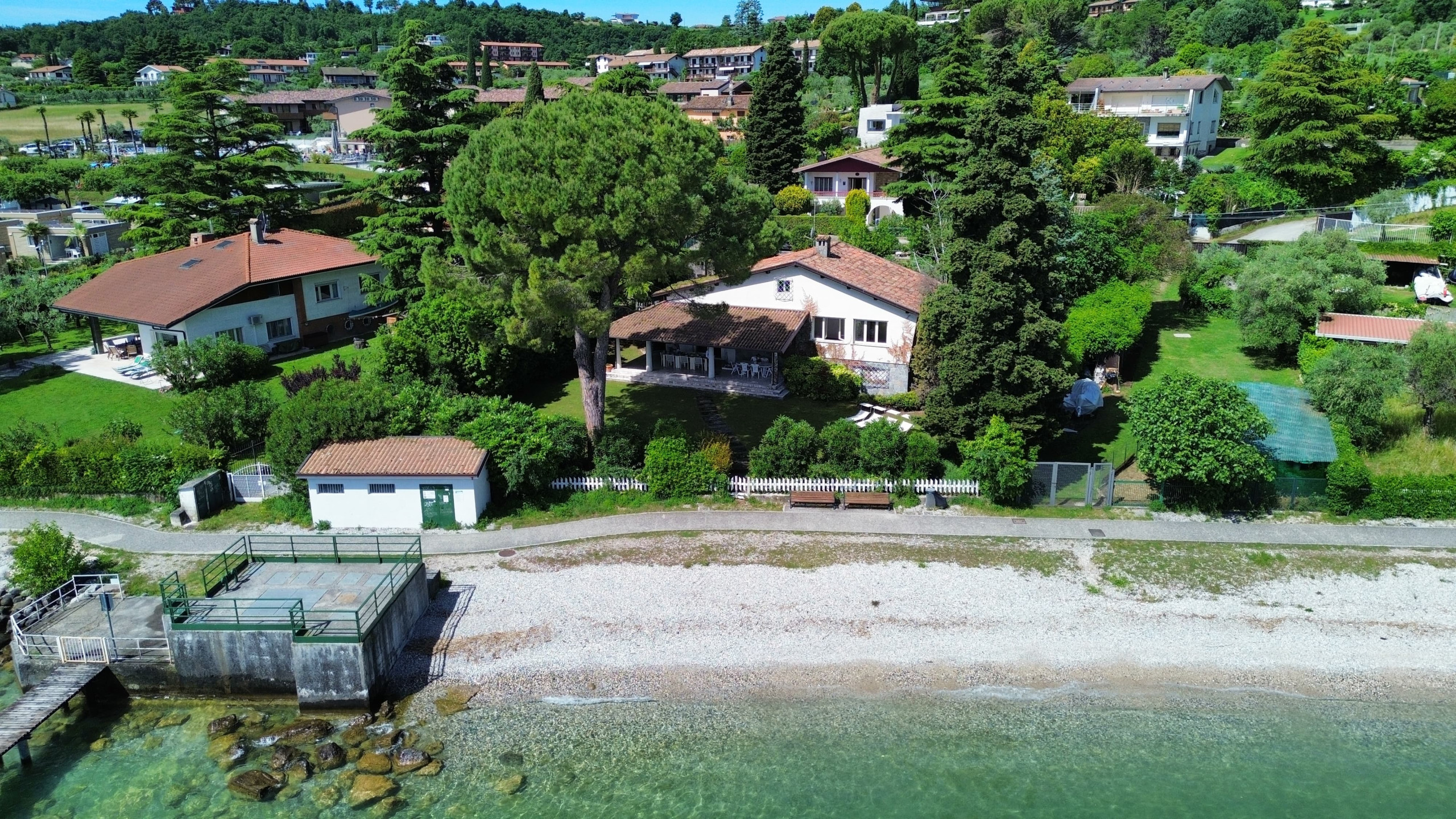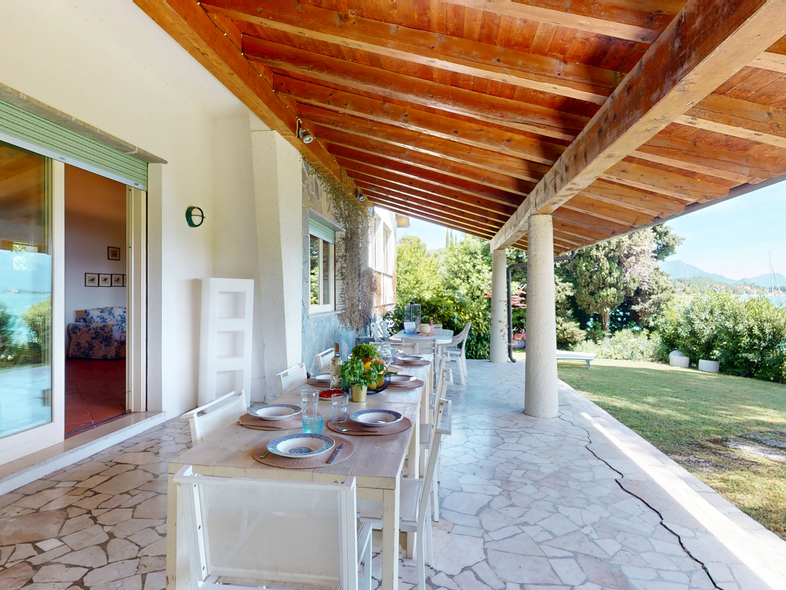 Das Herzstück des Hauses ist die große Außenterrasse: möbliert, geräumig und mit direktem Zugang zum Strand. Ein magischer Ort, um morgens das Frühstück zu genießen, bei Sonnenuntergang zu entspannen oder unter den Sternen zu dinieren, eingetaucht in die natürliche Schönheit der prestigeträchtigsten Zone des Gardasees.