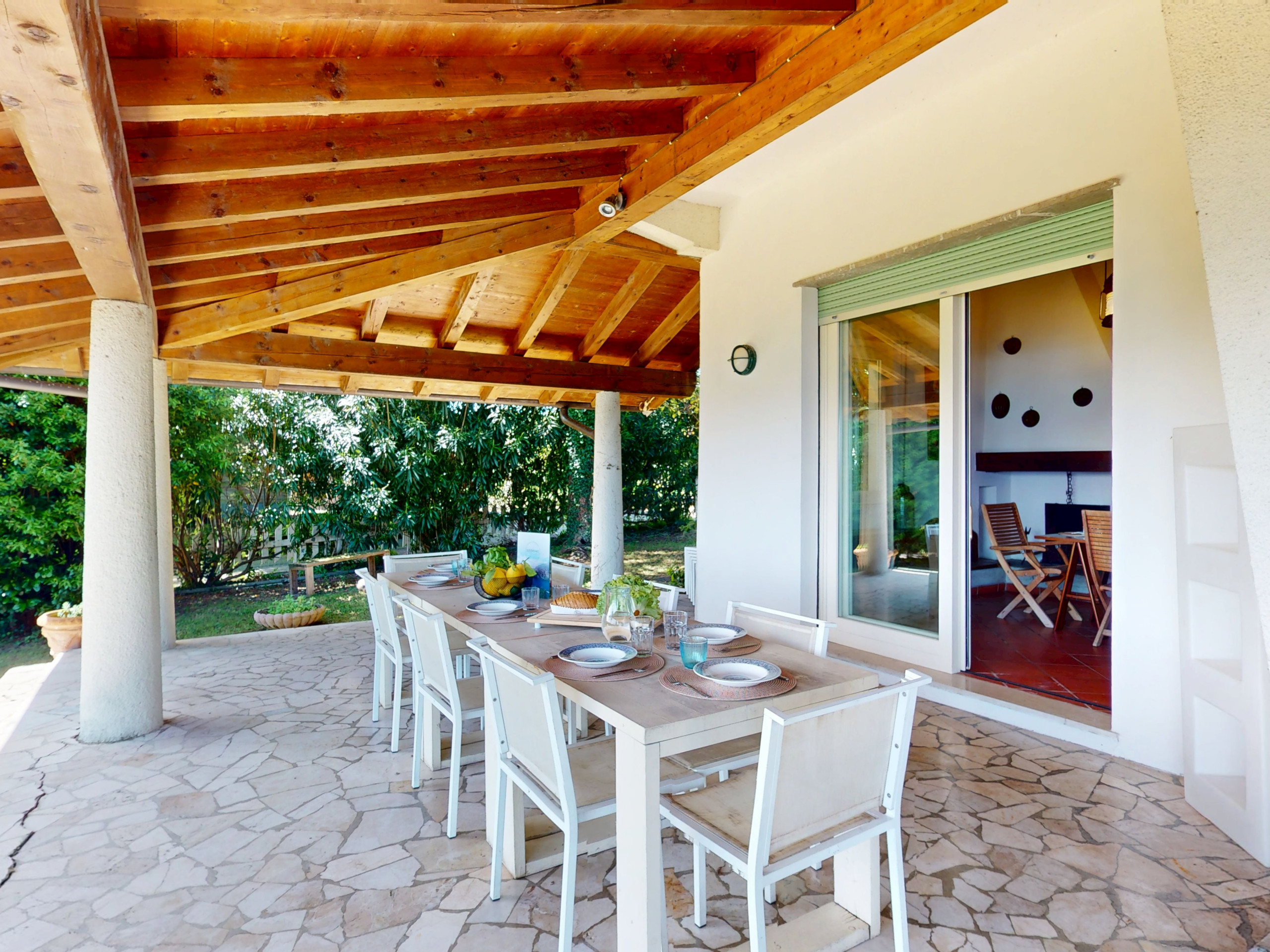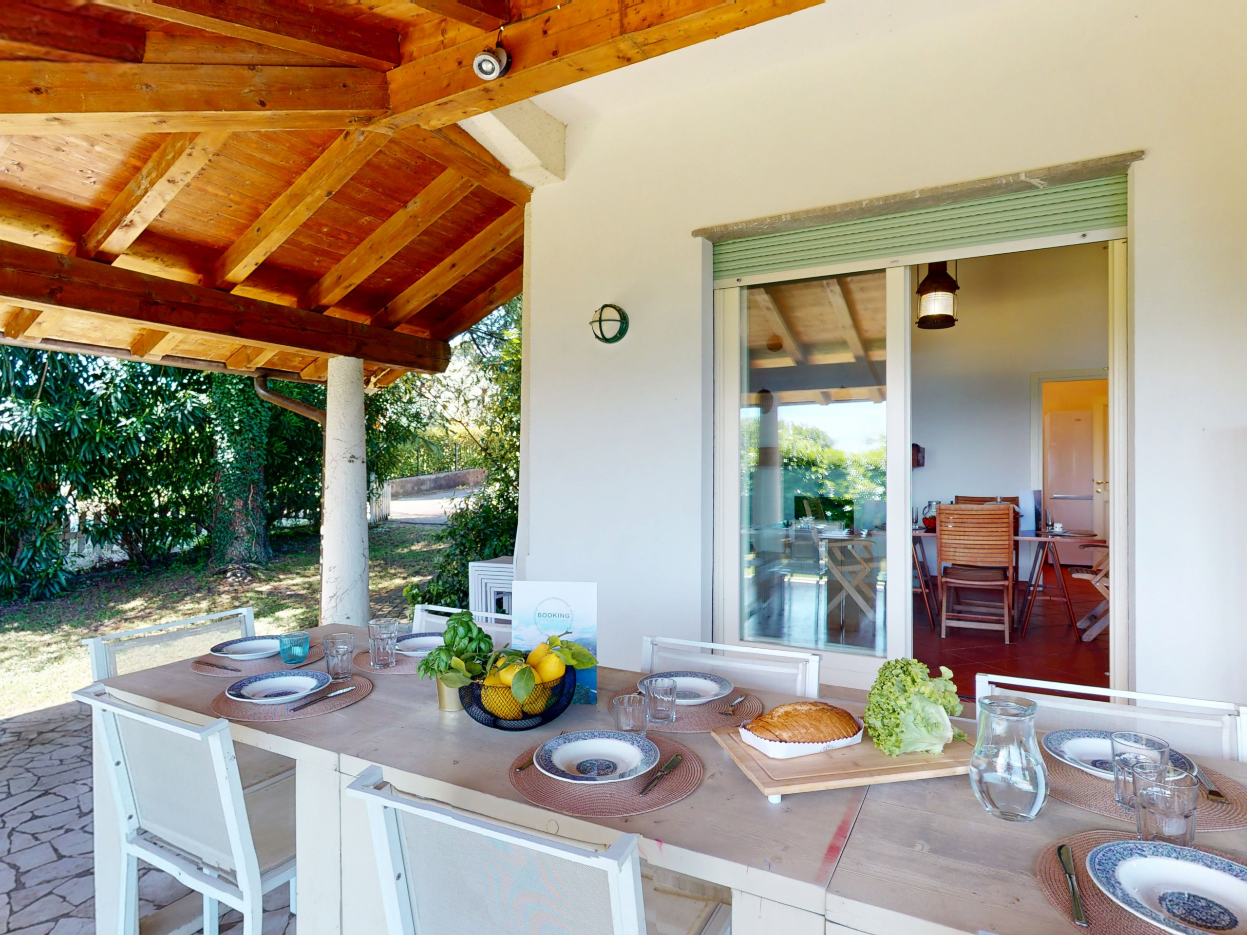 Der private Garten umgibt die Villa und eine große Veranda mit Küche ist ideal für Mittagessen, Sommerabendessen in Gesellschaft und in völliger Privatsphäre, eingebettet in Grün und mit Blick auf den Pool.