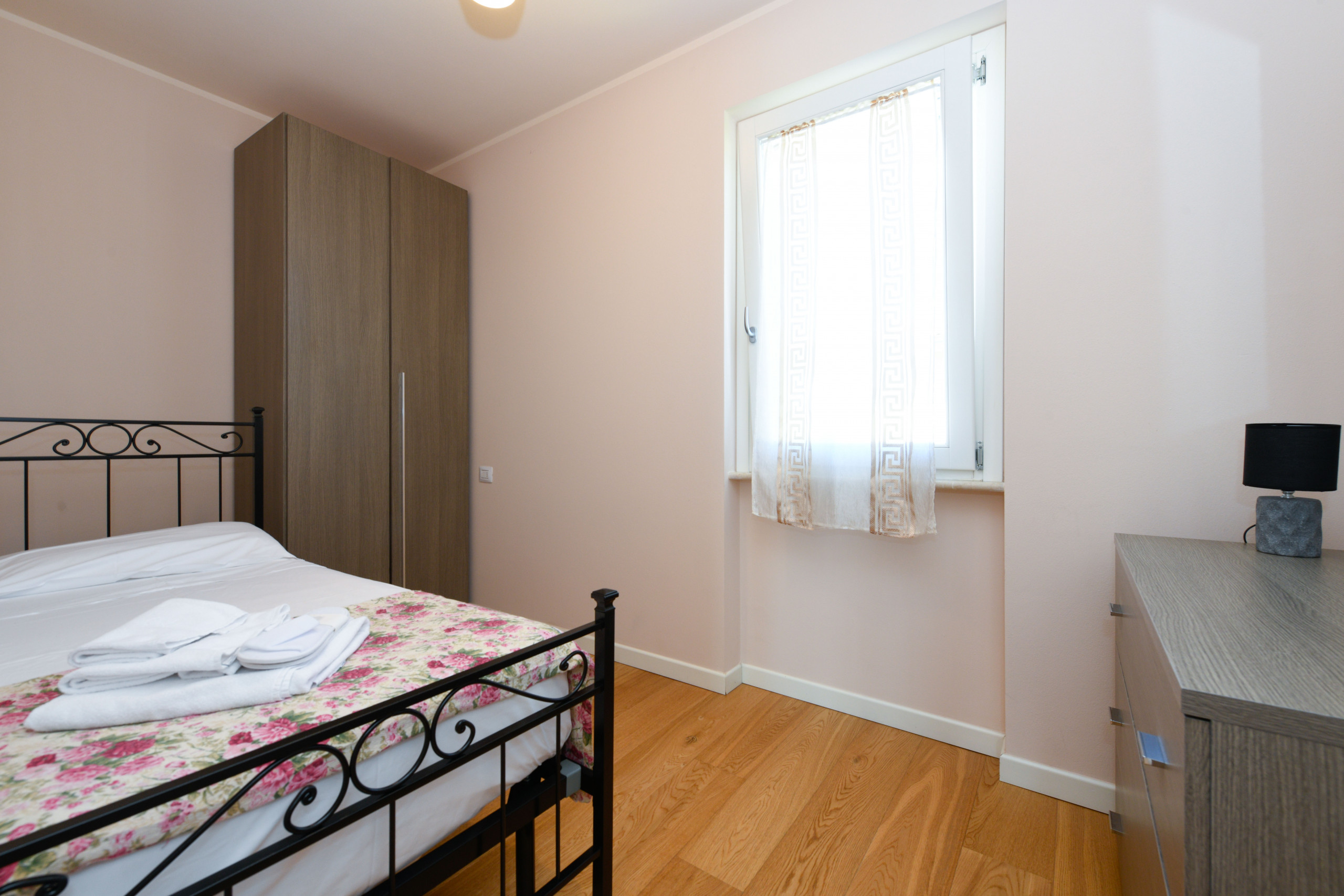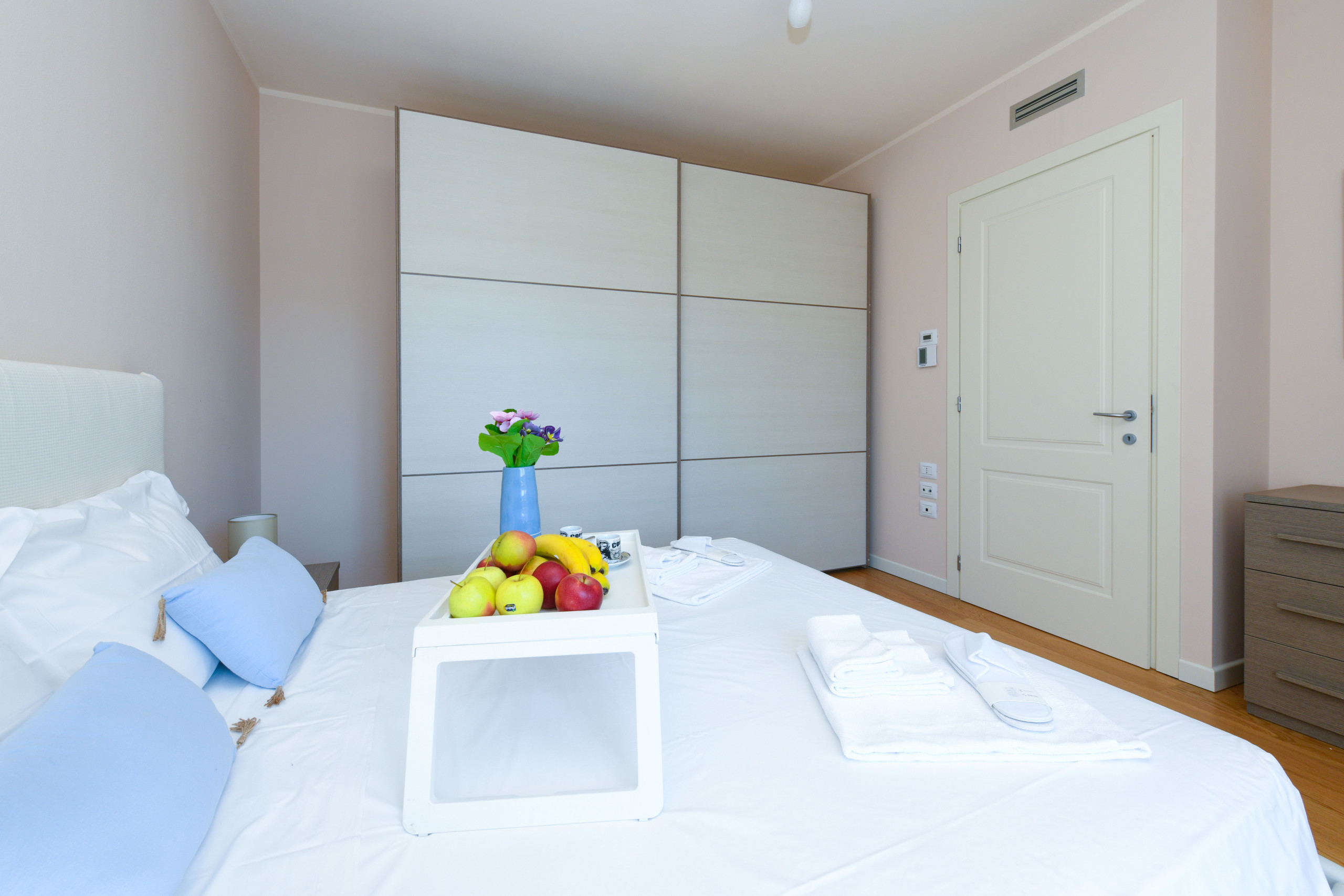 Inmitten der wunderschönen Kulisse von Manerba del Garda, direkt über dem Hafen von Dusano, befindet sich Villa Flora. Beim Betreten gelangt man in einen hellen Wohnbereich, von dem aus man einen vollständigen Blick auf den See genießt. Die großen Fenster, die hellen Farben der Ausstattung und Möbel sowie die Ausrichtung des Hauses unterstreichen noch mehr die Nuancen von Blau und Grün, die Himmel und See den Gästen dieses Anwesens schenken. Der Wohnbereich ist in einen Sitzbereich und einen Lesebereich unterteilt, von dem aus man den Essbereich und die offene Küche mit Seeblick von überall her erreicht. Im Schlafbereich befinden sich links der Hauptbadezimmer und eine Garderobe, die einzigen Räume ohne Seeblick, sowie ein Doppelzimmer mit Balkon, auf der rechten Seite des Flurs hingegen ein Doppelzimmer und das Hauptschlafzimmer mit eigenem Bad und Ankleidezimmer. Das Objekt ist mit Bildschirmen ausgestattet.