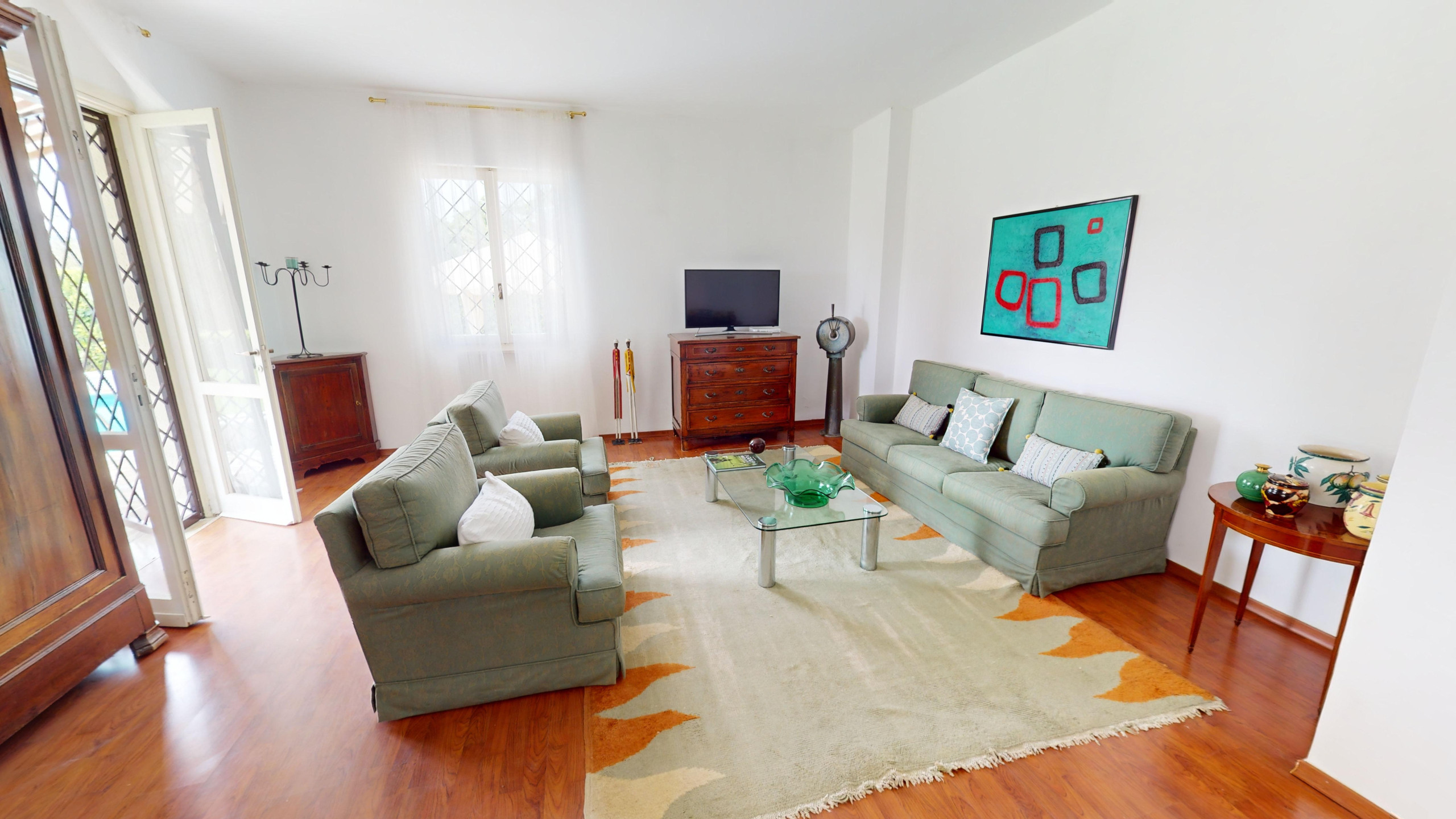 Die Villa ist nicht beheizt. Das Objekt ist mit Bildschirmen ausgestattet.