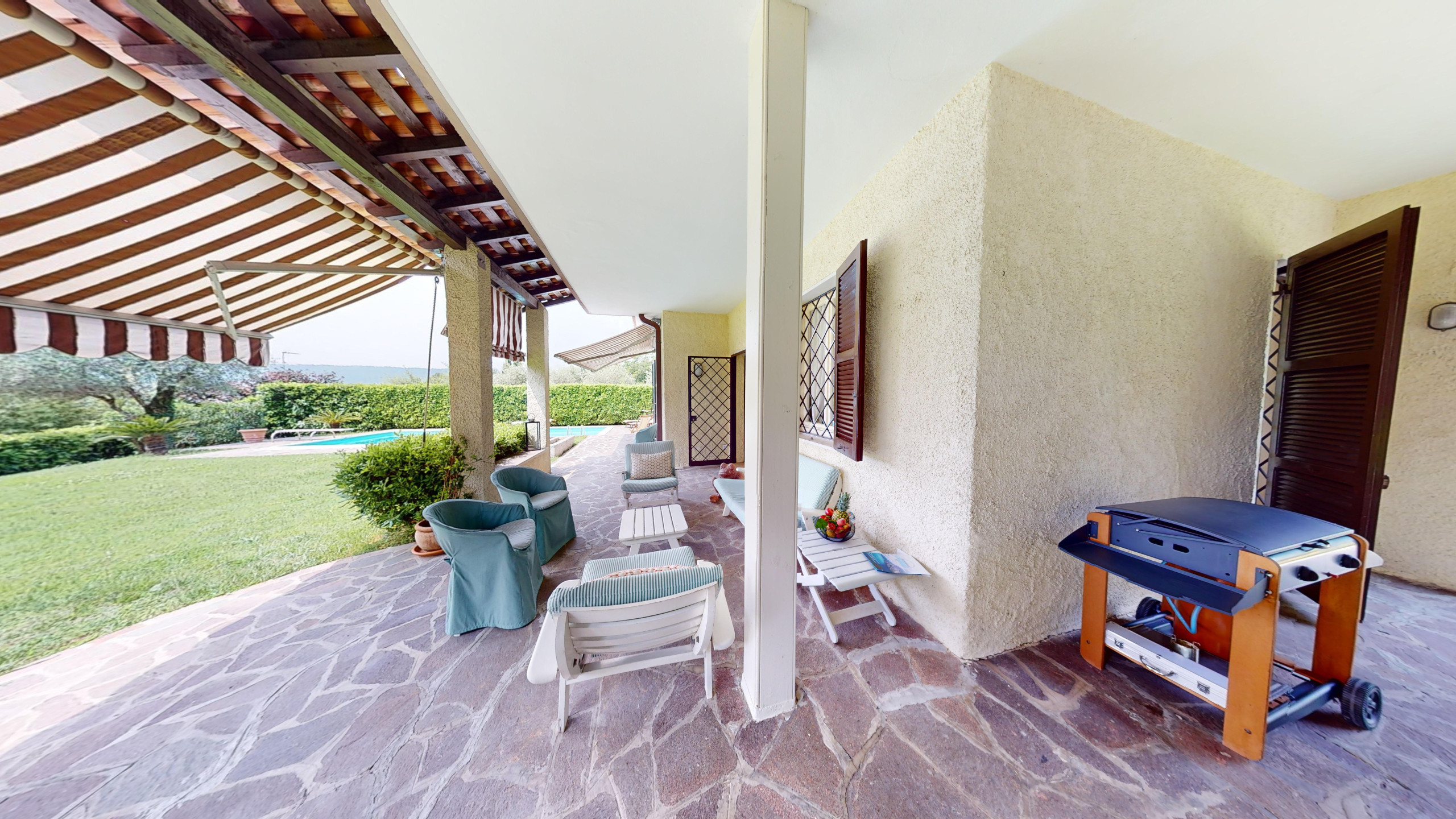 Bellissima villa con un giardino meraviglioso. Ottima vista e completa di tanti accessori. Piatti ,posate,bicchieri,calici,macchina caffè (senza cialde,le devi comprare) tostiera, padelle e tutto il resto. Letti comodi. Bellissima piscina. Barbecue e veranda. Tutto davvero molto bello.