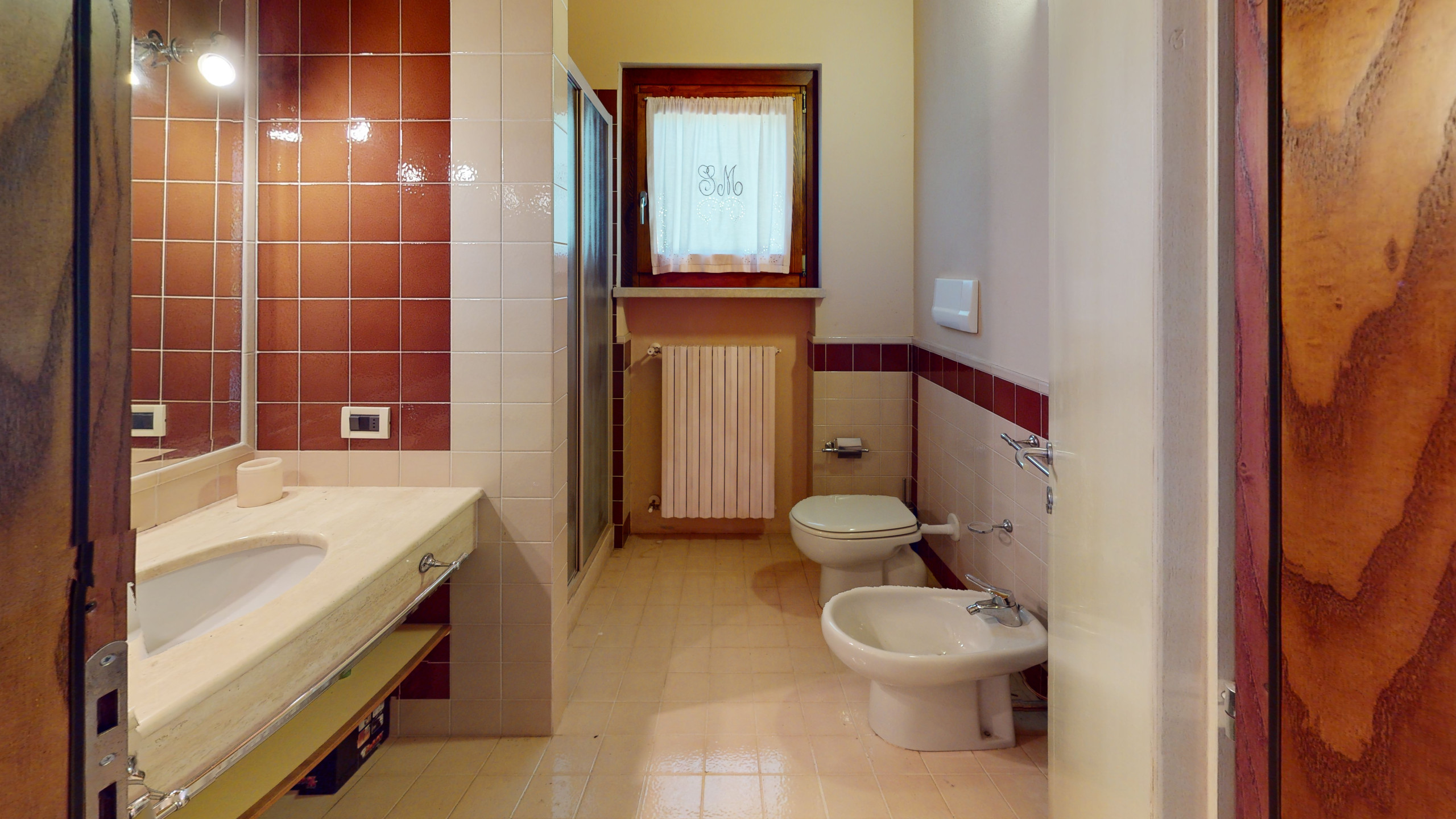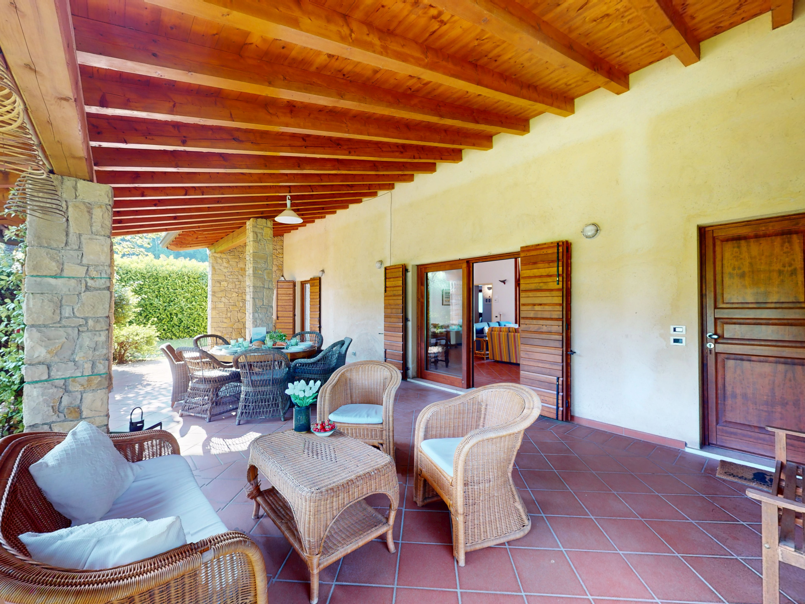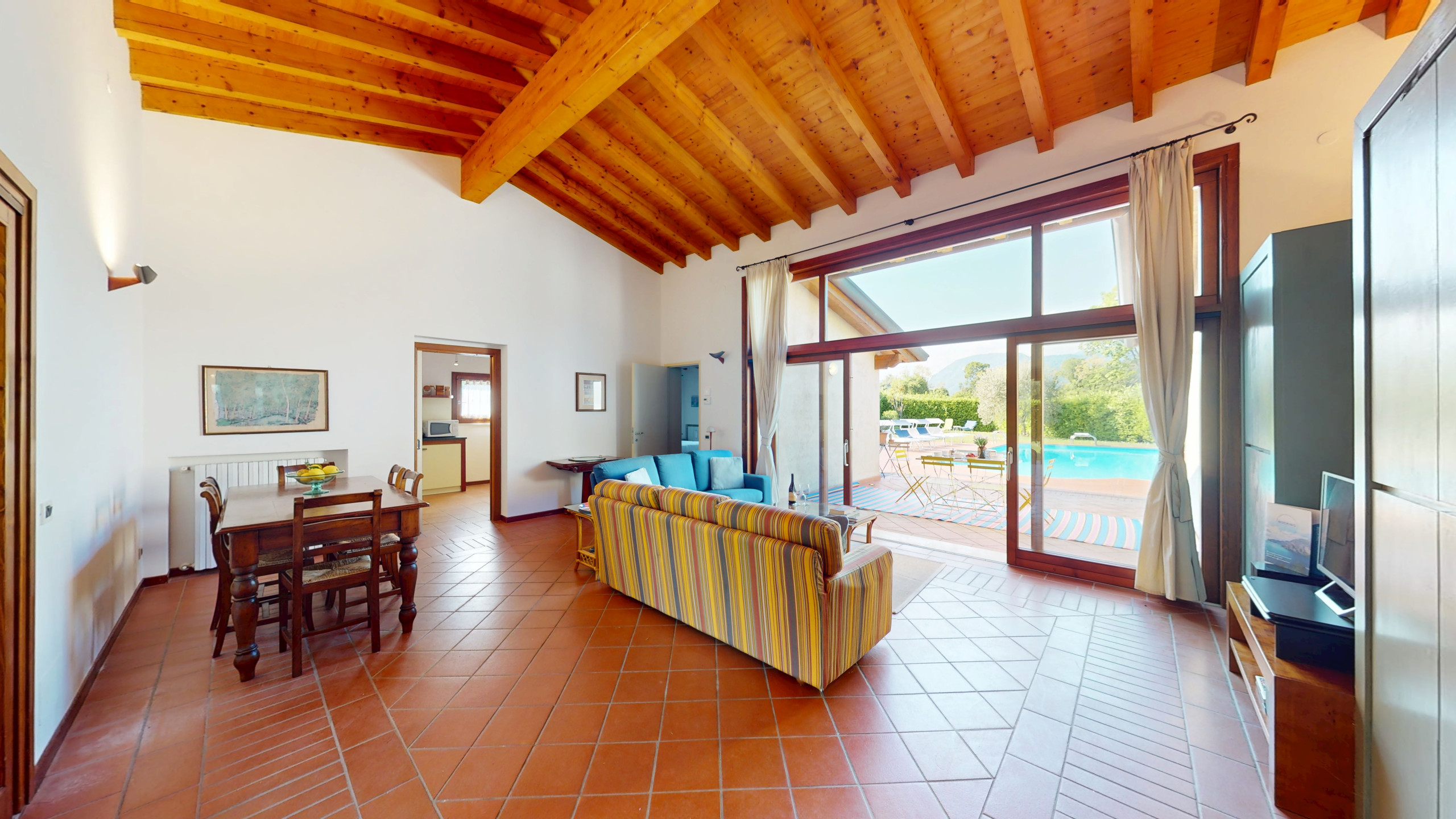 Das Haus erstreckt sich über eine Ebene und öffnet sich zu großen und hellen Räumen, die mit hohen Decken und freiliegenden Holzbalken geschmückt sind, die von der authentischsten italienischen Architekturtradition zeugen.
