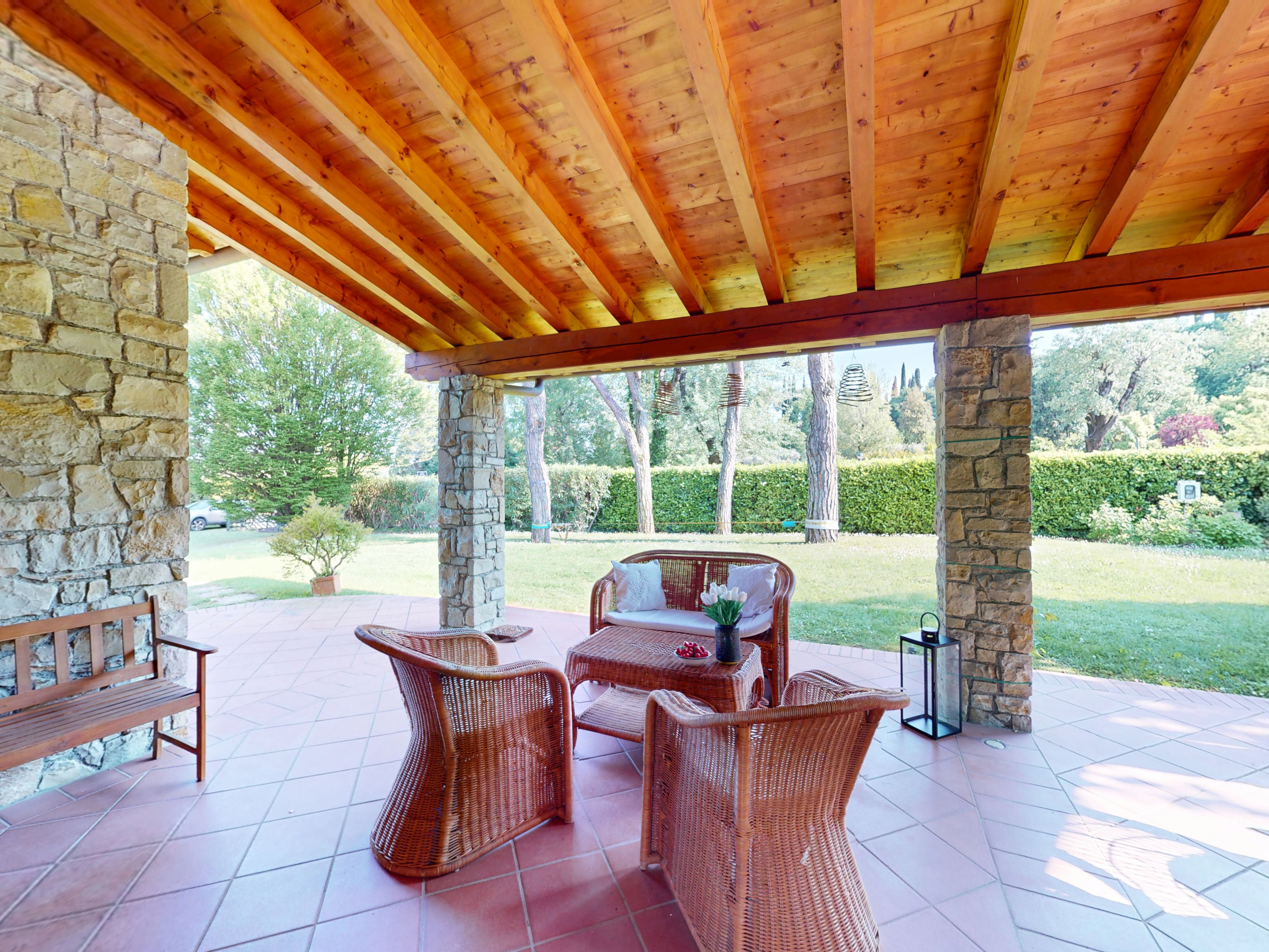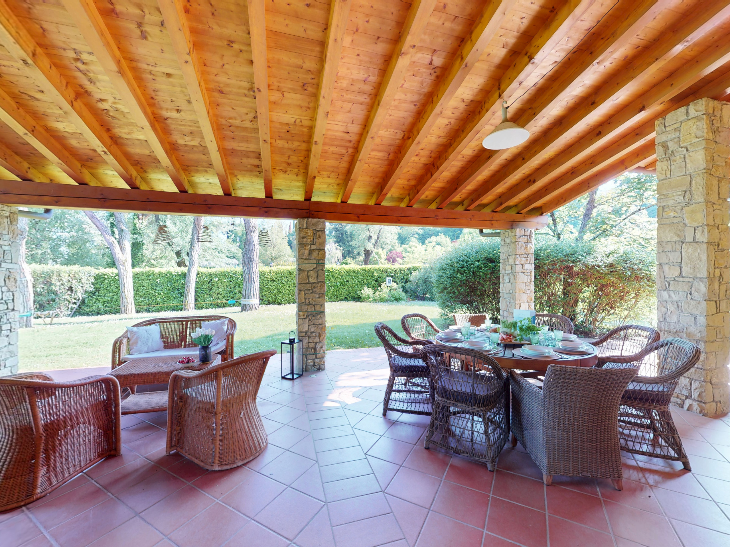 Die große Veranda lädt zur Entschleunigung ein: Frühstück im Grünen, Aperitifs bei Sonnenuntergang, Abendessen unter dem Sternenhimmel. Umgeben von einem Park und einem privaten Pool erwarten Sie Momente des puren Wohlbefindens.