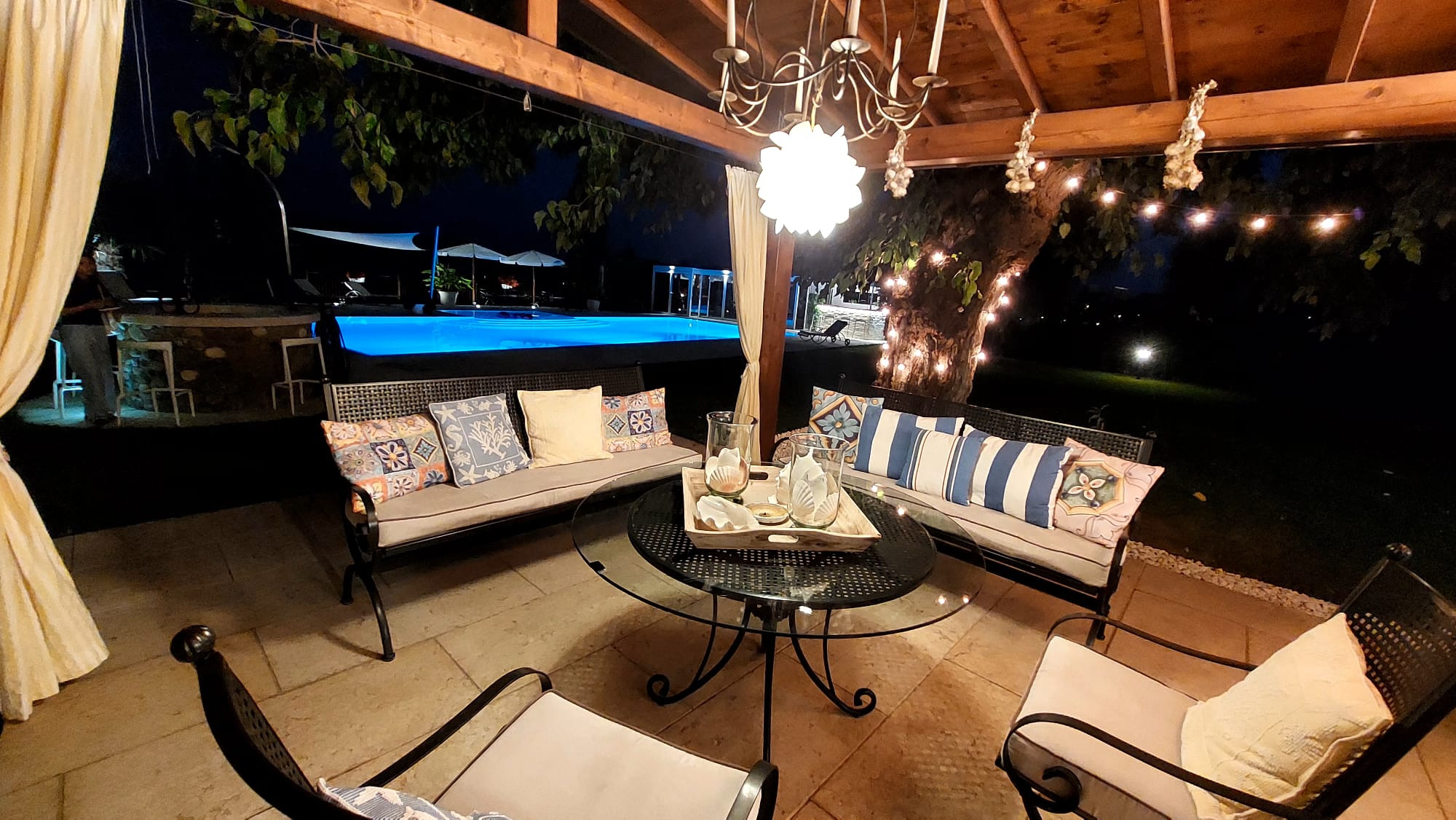 The heart of the residence is the splendid 17-metre-long swimming pool, enhanced with a hydromassage area and a bar zone, ideal for moments of relaxation or preparing breakfast outdoors. Nearby, a refined bathroom with shower and changing room offers additional convenience.