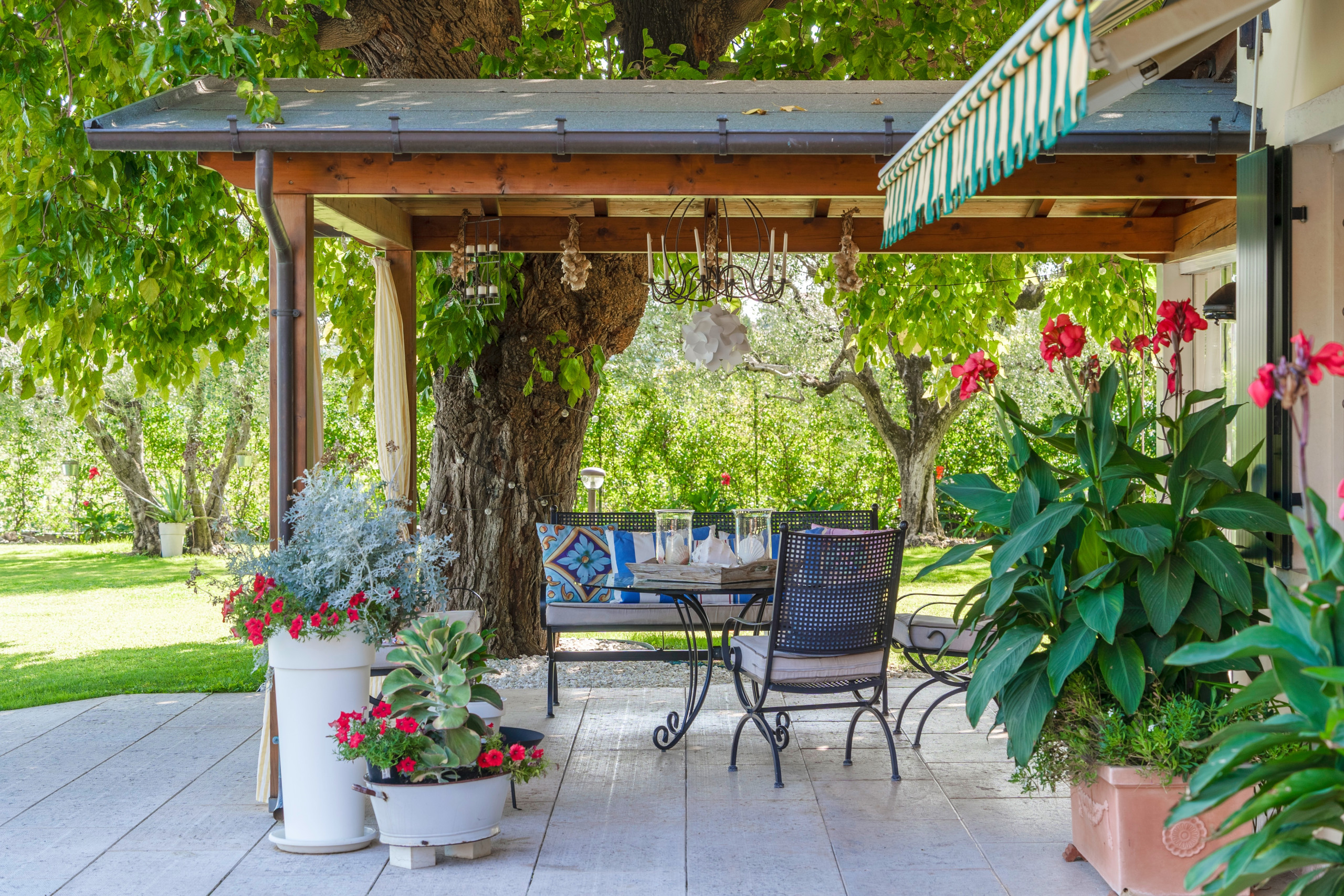 The garden, meticulously maintained, is an oasis of elegance: stylishly furnished, it includes a barbecue available to guests, who can choose to dine in the apartment, by the pool, or on the panoramic covered terrace.