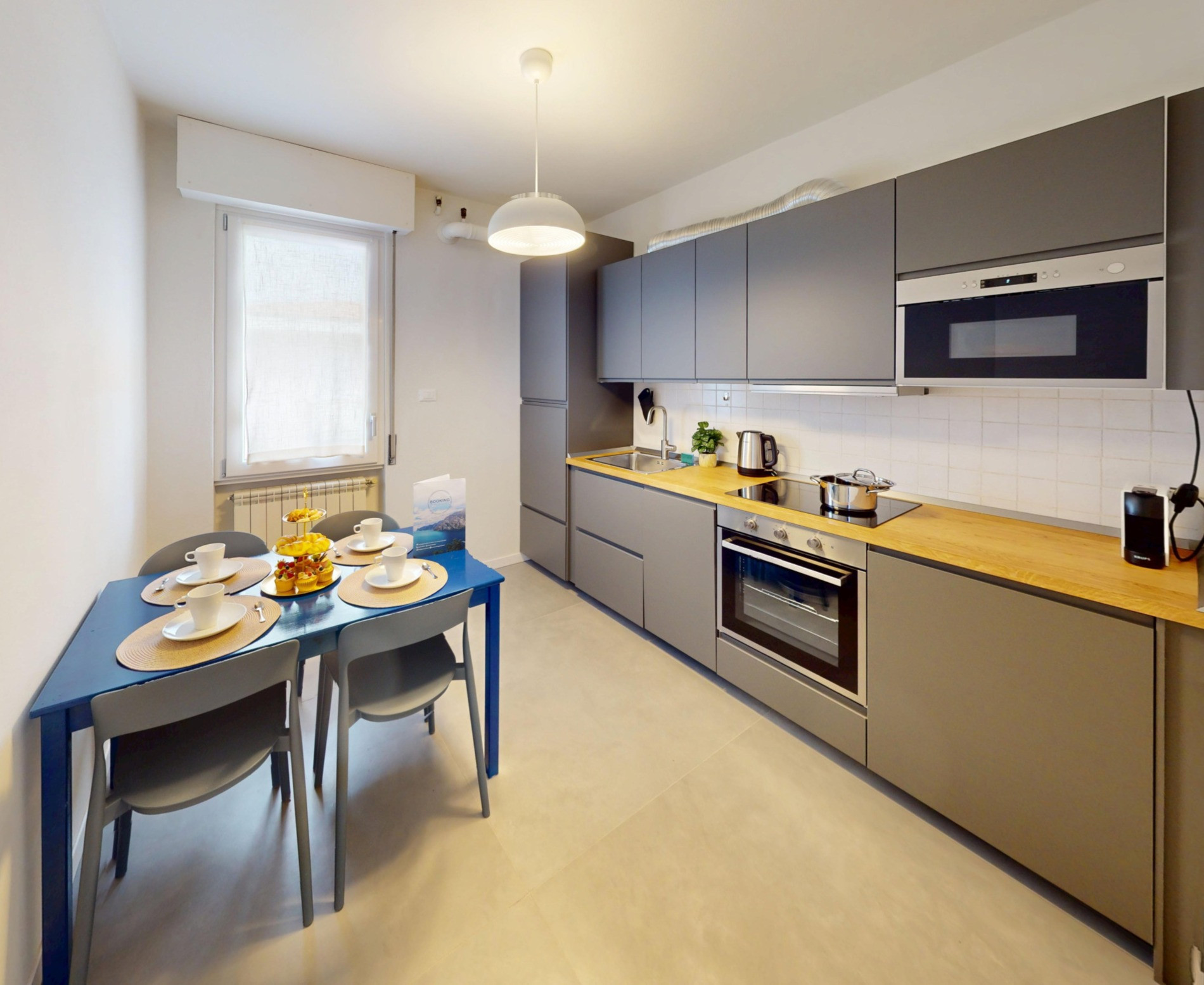 The fully equipped kitchen is a real strong point of the apartment. Equipped with all modern comforts, it includes a refrigerator, freezer, dishwasher, oven, coffee machine, toaster, kettle and a rich set of crockery and kitchen utensils. Ideal for preparing tasty meals during the stay.