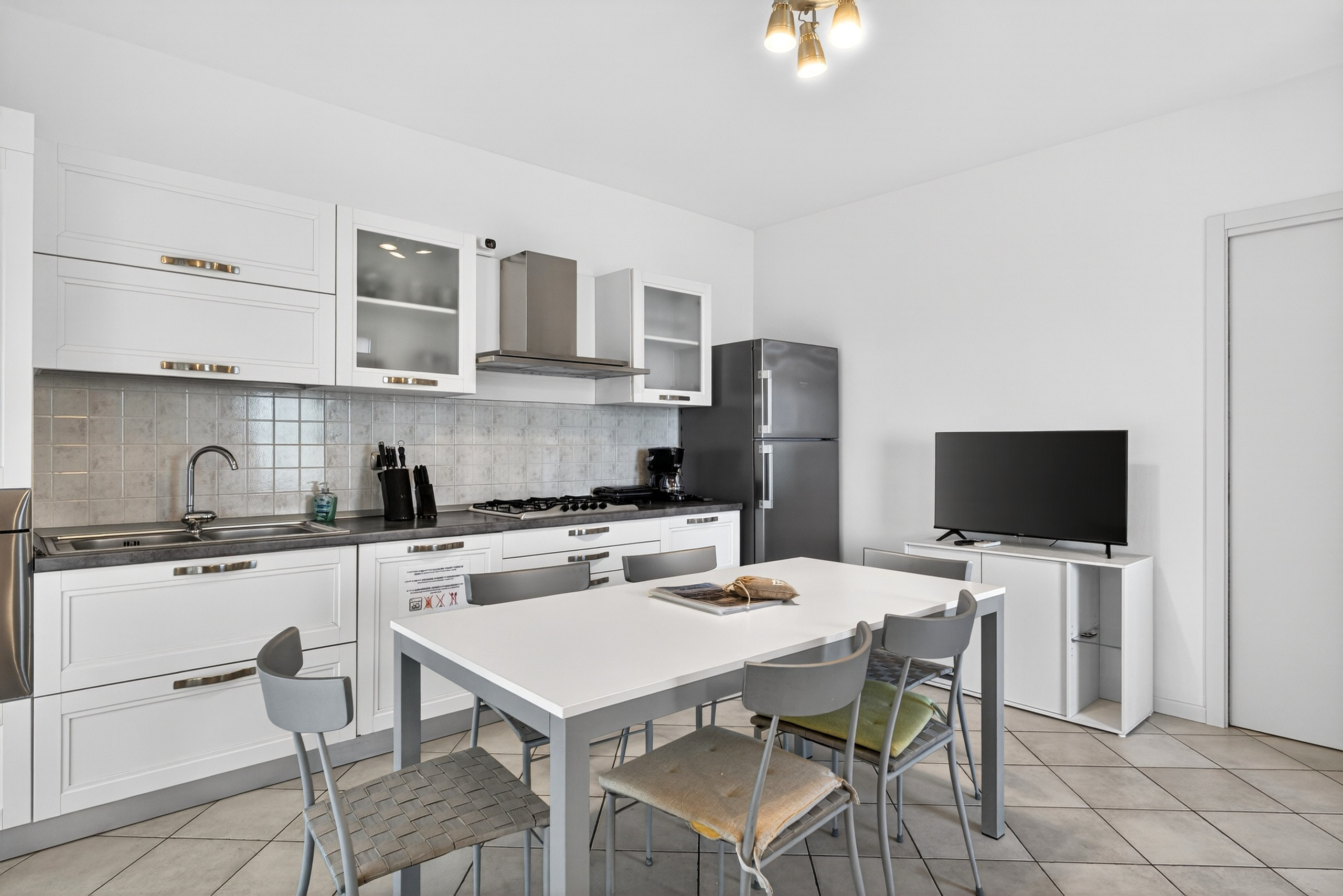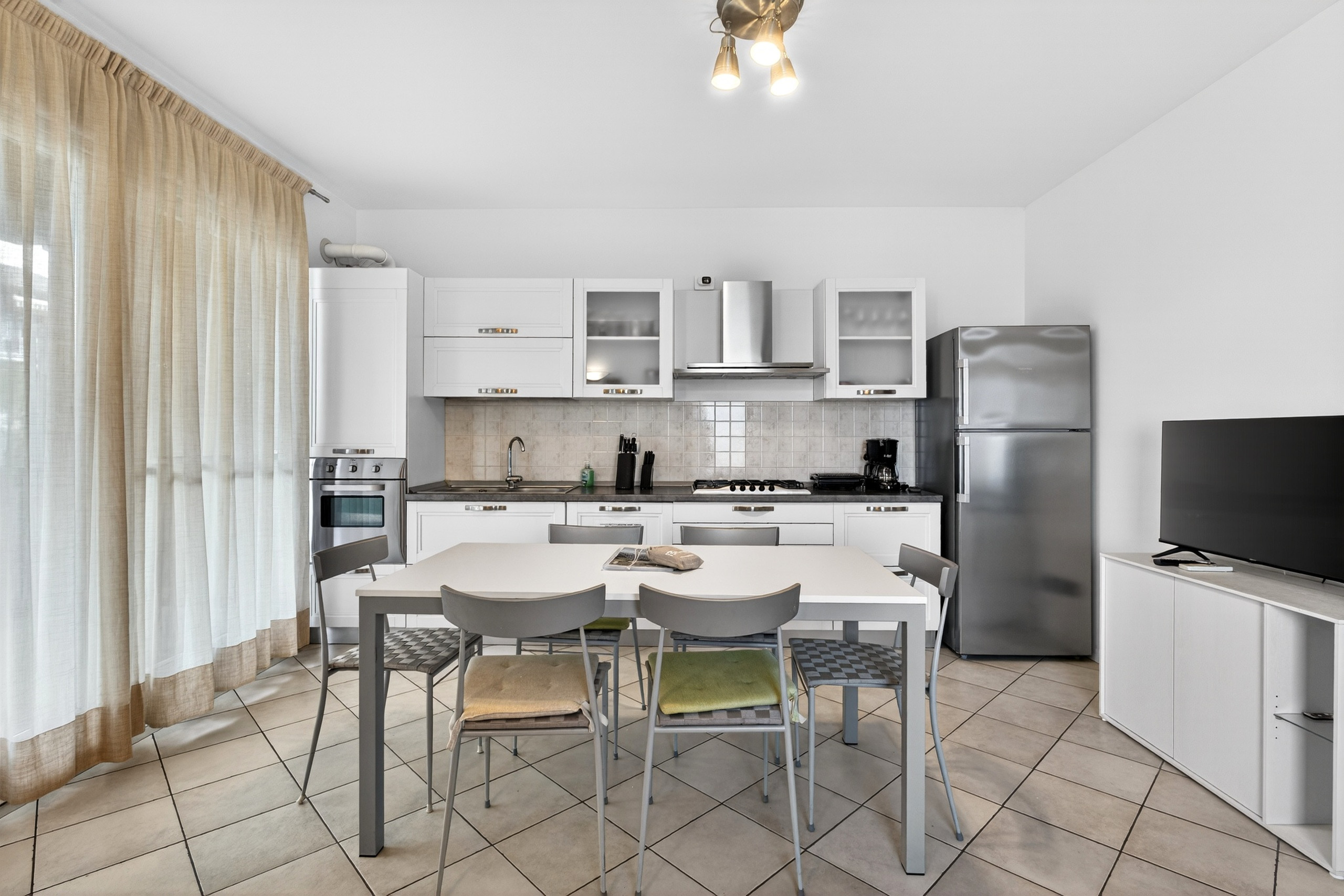 Quiet three-room apartment located in Lazise, a few steps from the town centre, beach and lakefront, all within walking distance, in a residential complex with swimming pool and external changing room/bathroom (opening period guaranteed from 15/05 to 30/09).