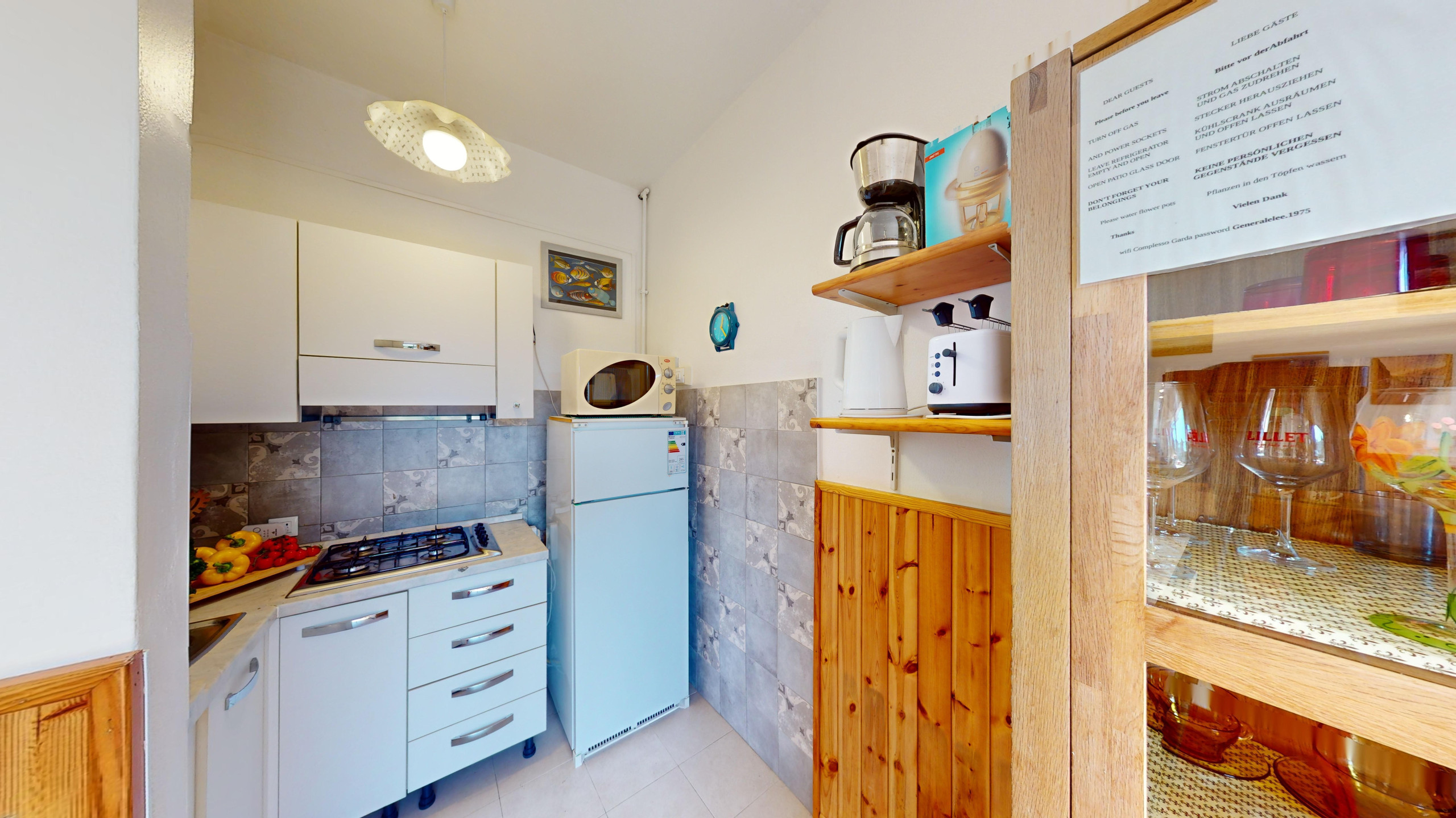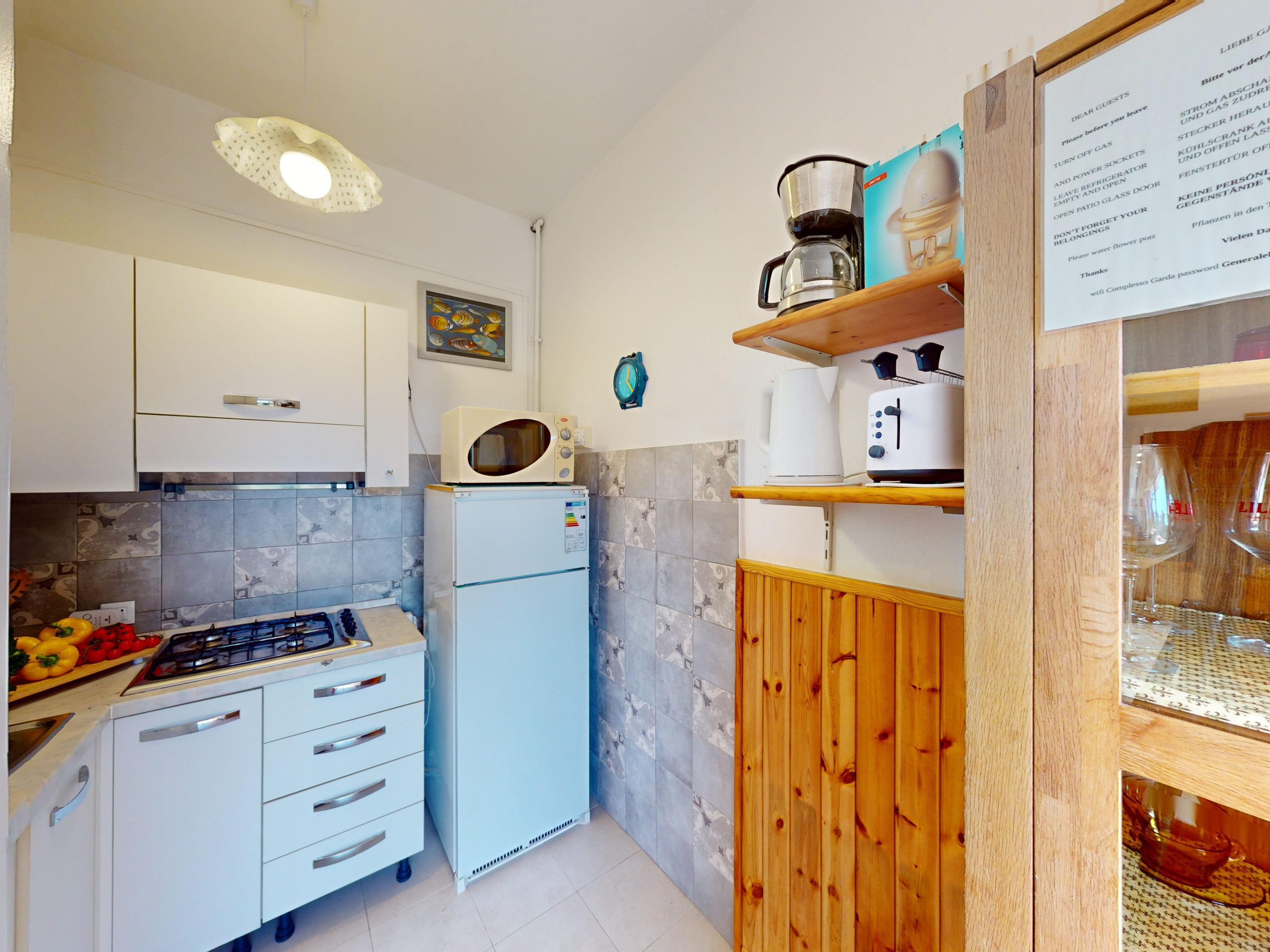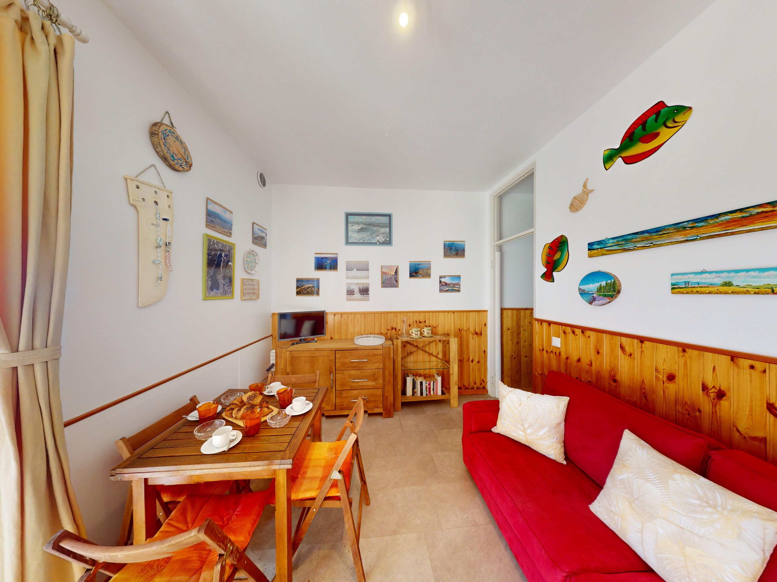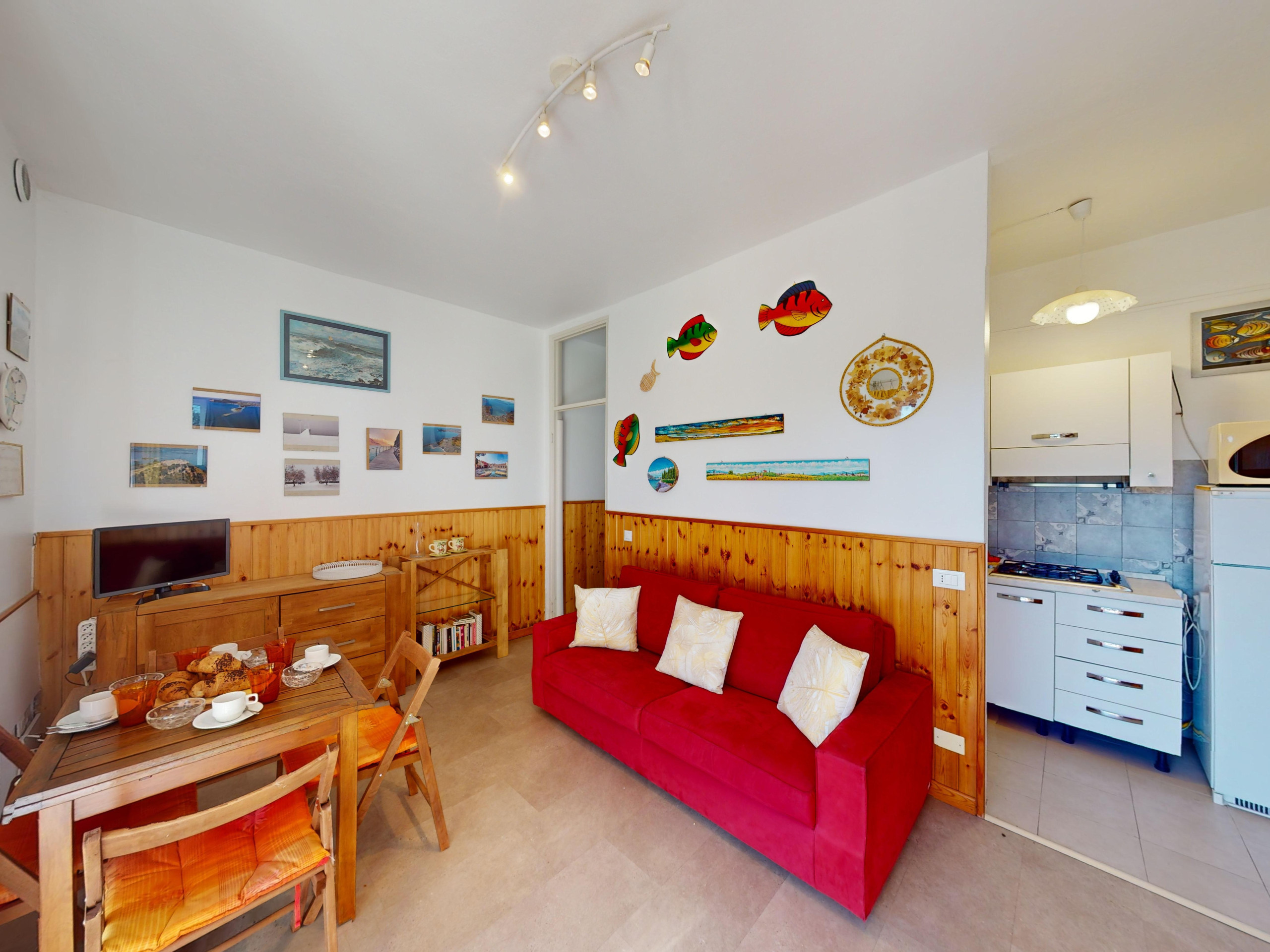 This welcoming apartment for four people offers everything necessary for a pure relaxation stay: a bright living area with a sofa bed, ideal for enjoying comfort at any time of the day, and an equipped balcony where you can enjoy the breeze while admiring the view.