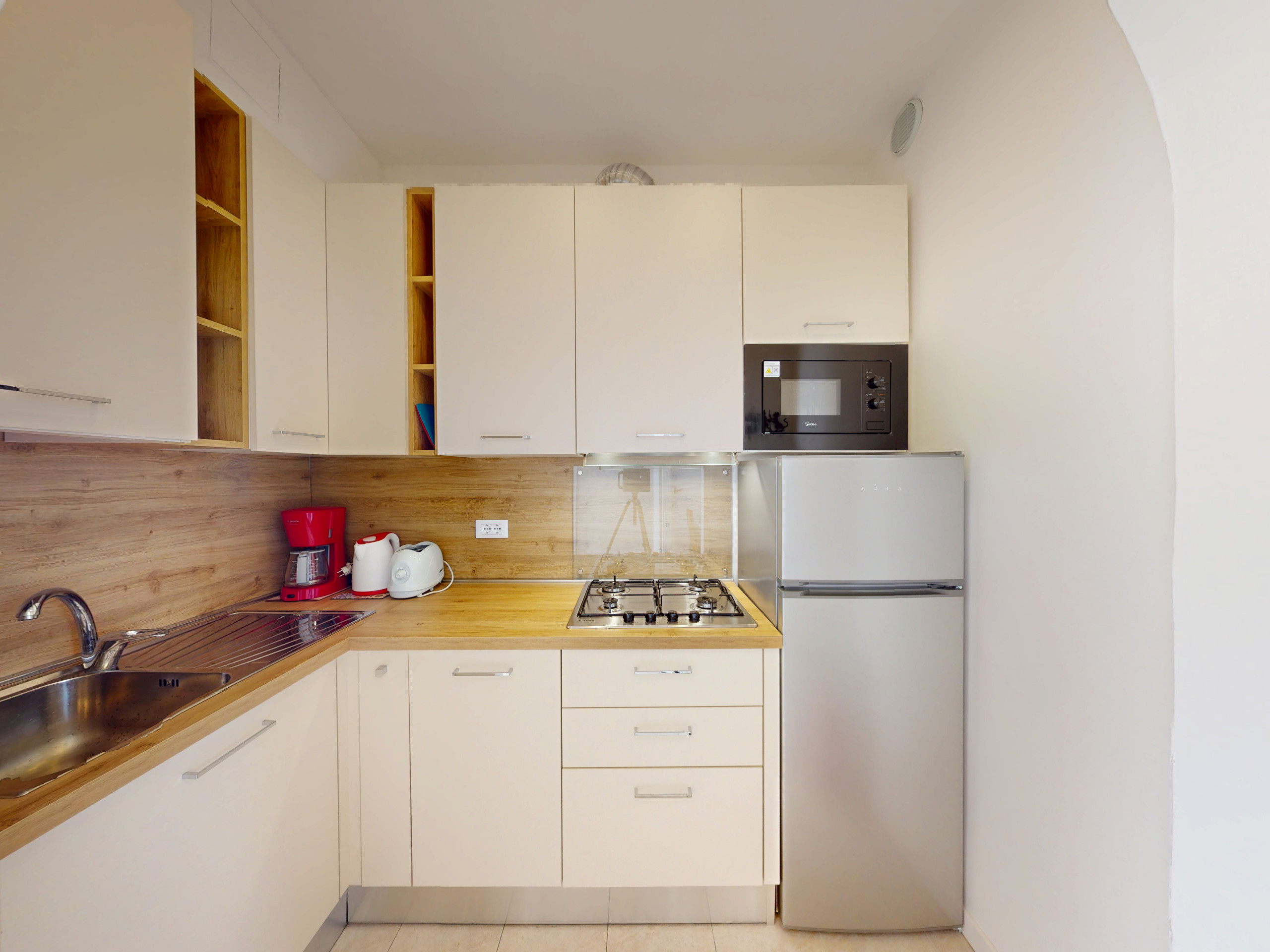 Es sollten auf jeden Fall Dinge wie Salz, Pfeffer, Kaffee und Öl vorhanden sein. Dies ist heutzutage weltweit Standard. An dem kleinen Bad kann man leider nichts ändern, aber für genügend Toilettenpapier oder den ein oder anderen besser platzierten Badehaken könnte man Sorgen.
