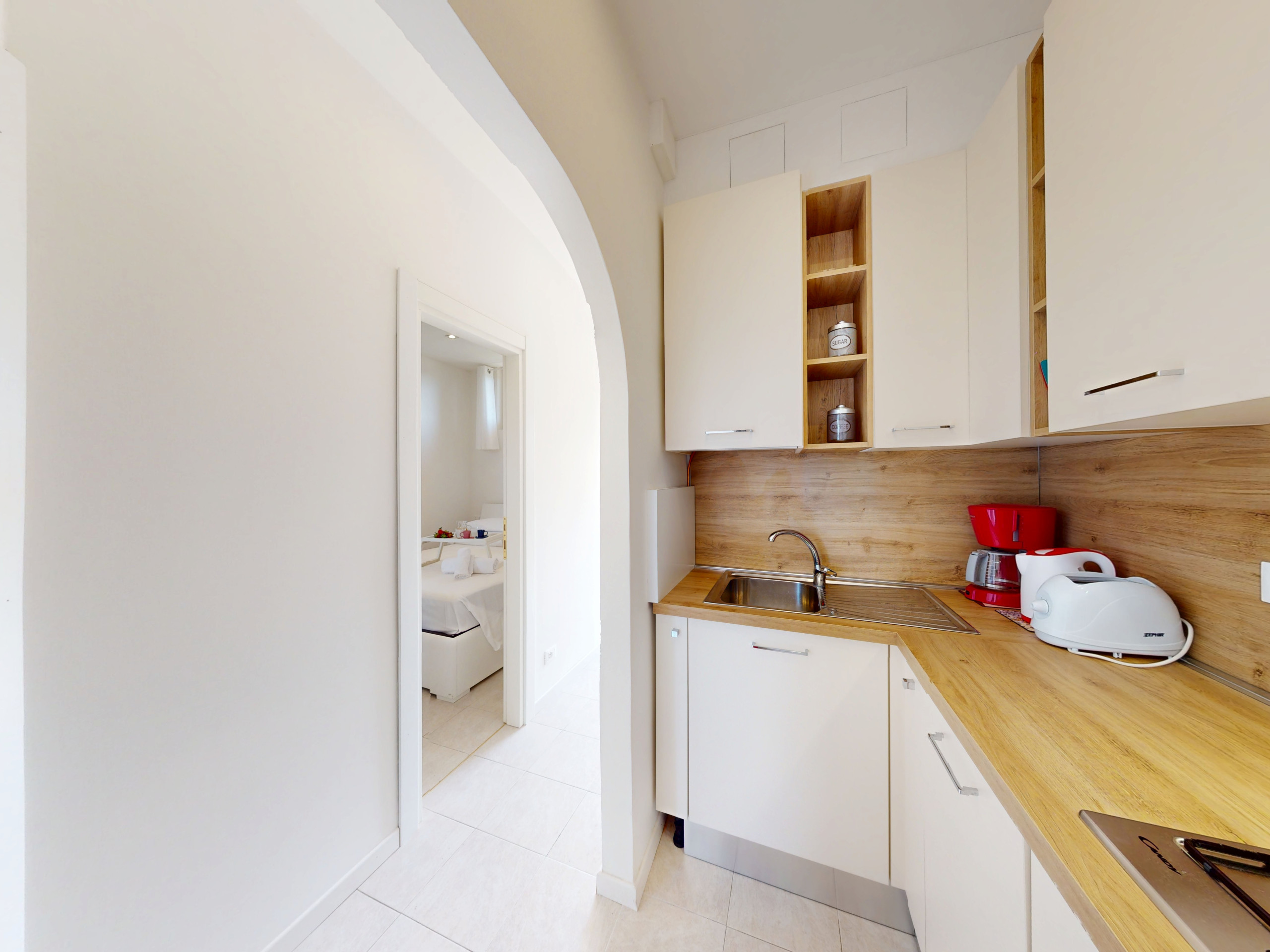 The separate kitchen is fully equipped, perfect for those who love to prepare fresh and tasty dishes completely independently, while the double bedroom, intimate and well-maintained, is perfect for resting and regenerating. The small shower bathroom is functional and every corner of the apartment is designed to offer you the maximum comfort.